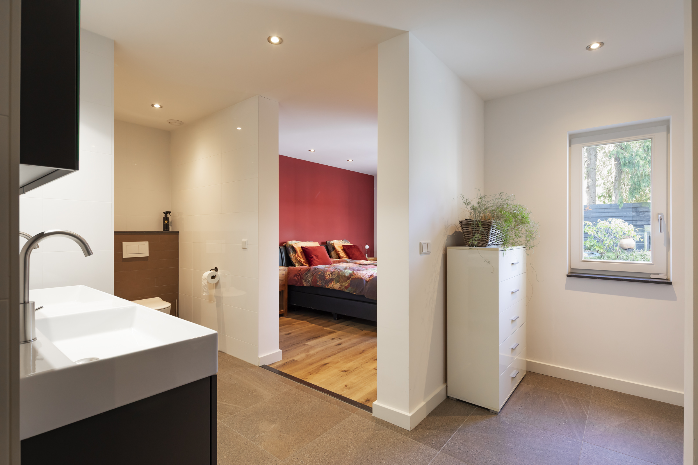 Renovated in 2021, the ground floor flows from a light filled living room with a glass front and garden views, into a spacious kitchen with a striking island, composite surfaces, and high quality appliances. Multiple garden doors open to the southwest facing landscaped garden, framed by an inviting veranda for year round enjoyment. A separate ground floor wing features a bedroom and bathroom suite with direct garden connection, while upstairs, three further bedrooms and a second bathroom enhance flexibility.