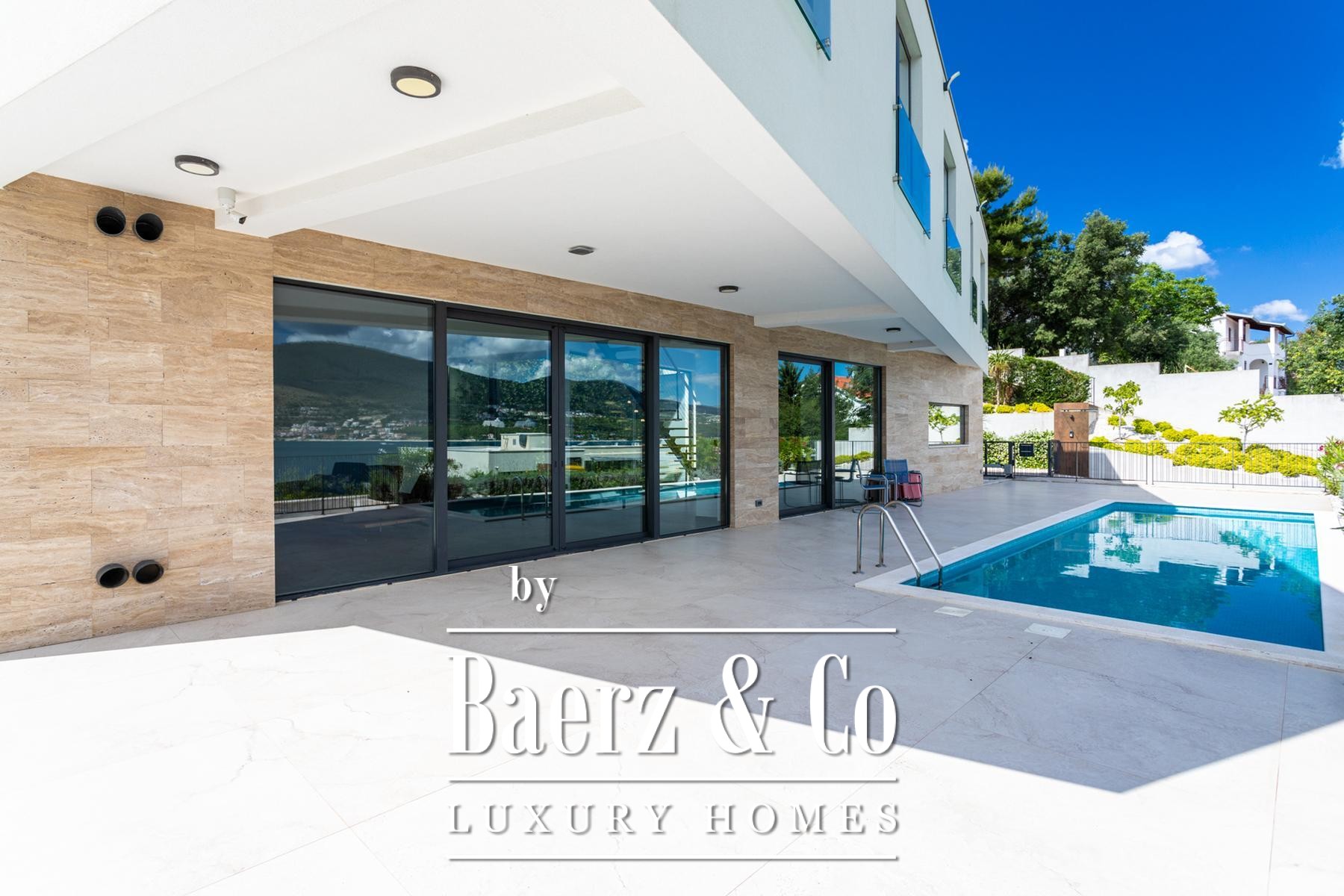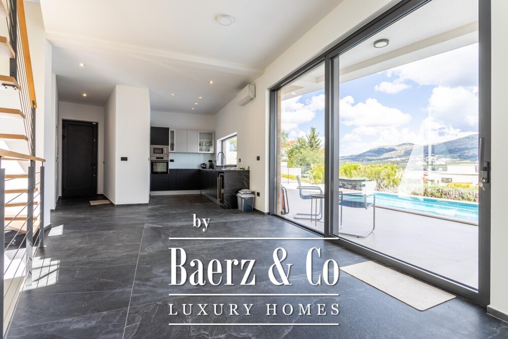 Villa Okrug Croatia stands as a contemporary retreat, set just one row back from the Adriatic shoreline. This three-level villa offers a living area of 326 m² on a 728 m² plot, combining clean architectural lines with unobstructed sea views and access to the tranquil waters that define the island of Čiovo. The focus keyword villa Okrug Croatia speaks to the unique balance of privacy and connection to the Adriatic lifestyle.