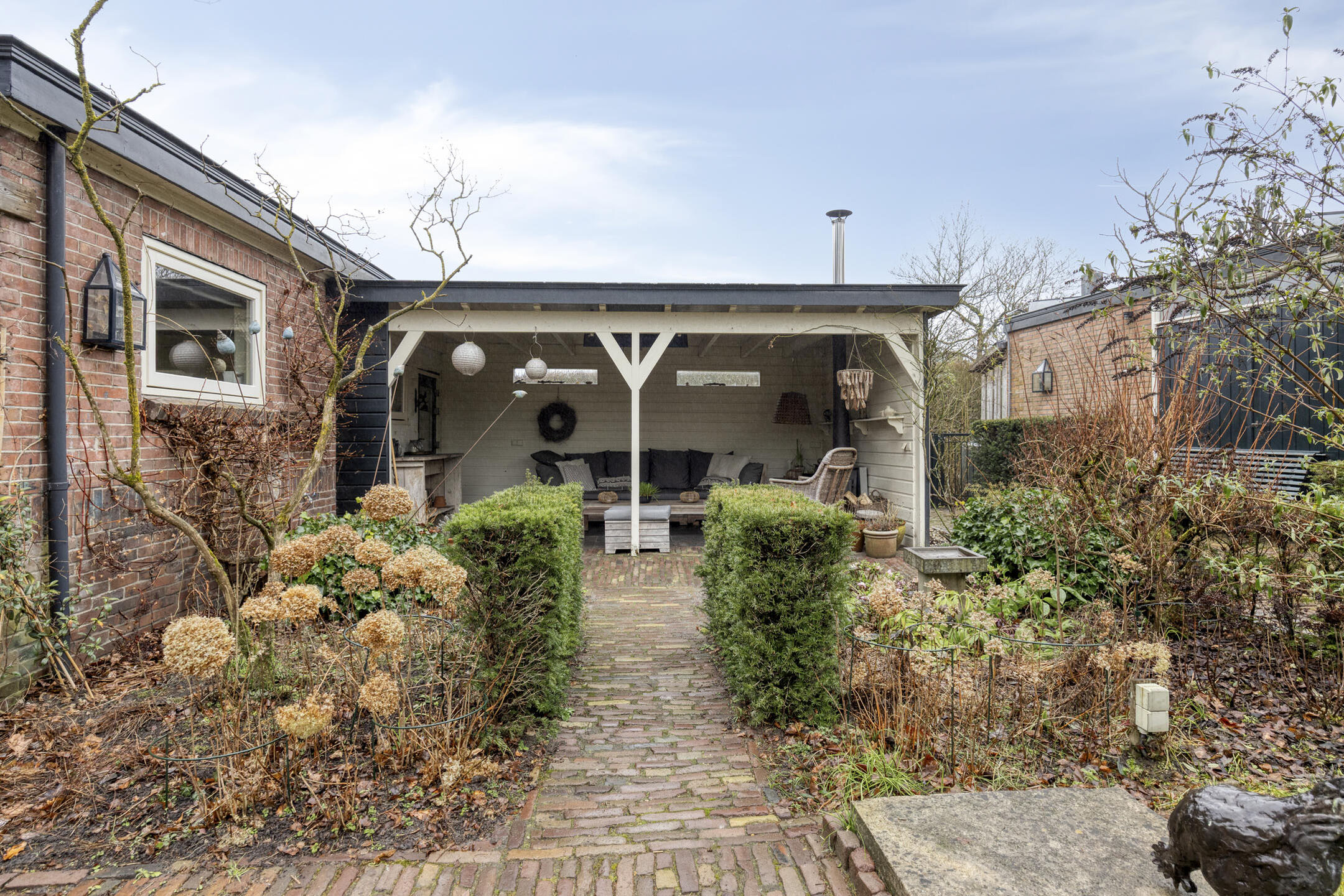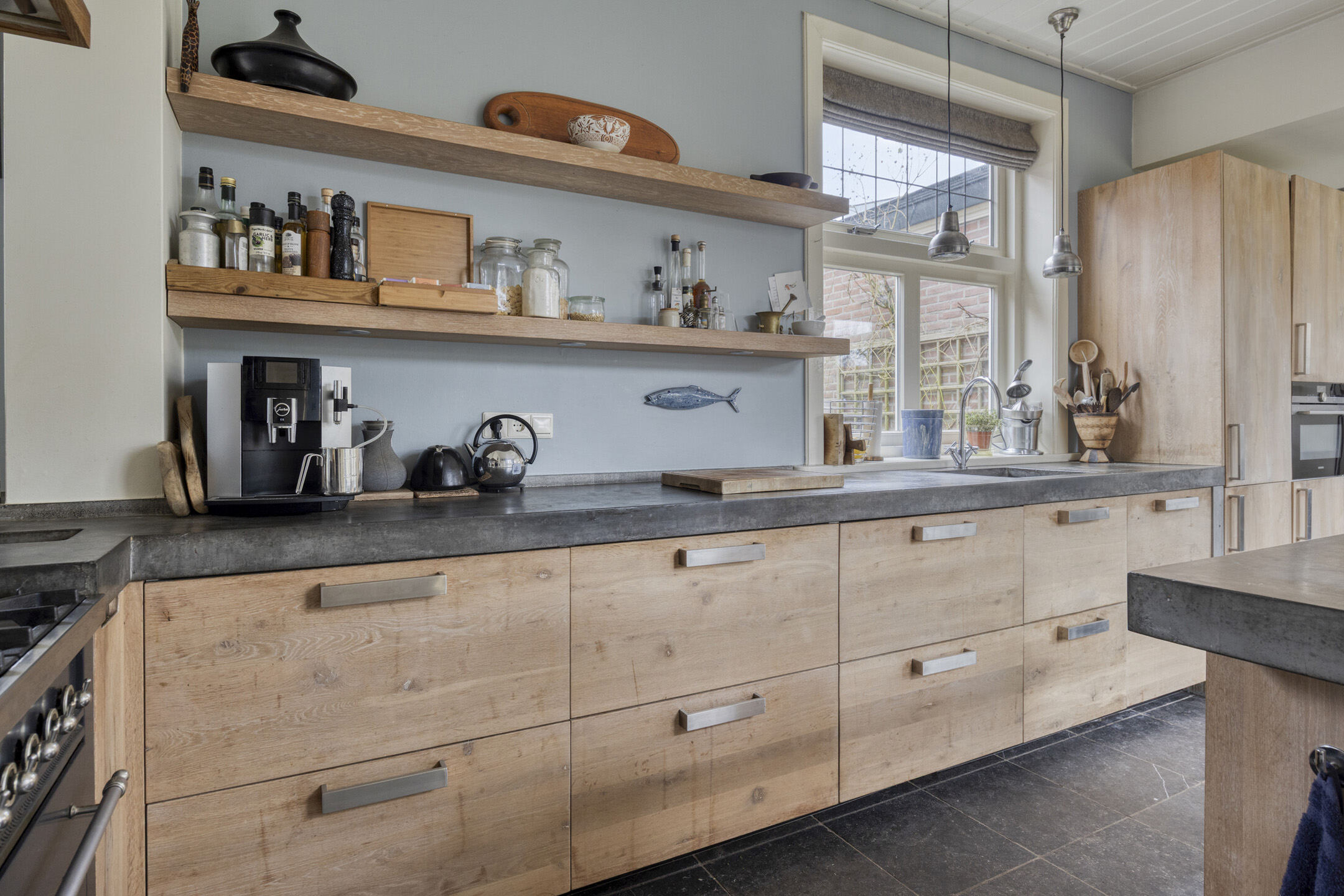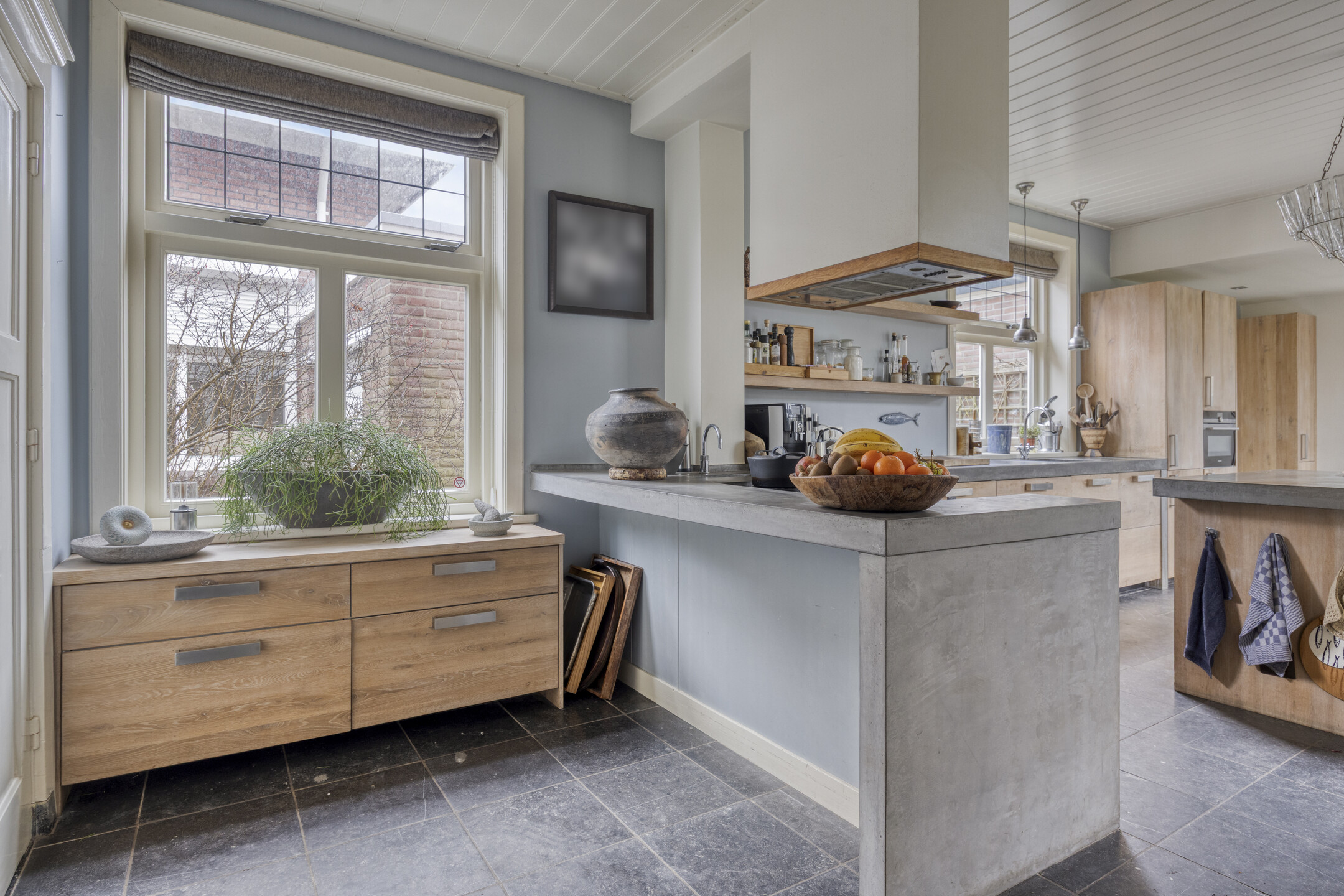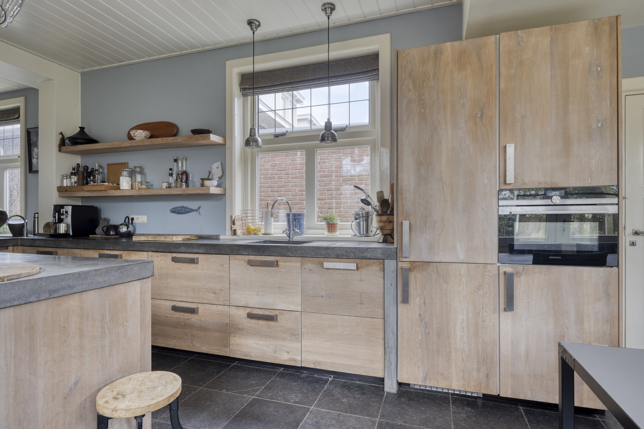 Vanuit de hal bereik je de ruime, sfeervolle keuken, met openslaande deuren naar de tuin. De keuken is uitgerust met diverse inbouwapparatuur, waaronder een 6-pits gasfornuis met oven, afzuigkap, combi- oven, koelkast, vriezer, vaatwasser en een Quooker. Vanuit de keuken bereik je de ruime kelder (met stahoogte) en een praktische bijkeuken met extra aanrechtblad, spoelbak en aansluitingen voor wasmachine en droger. Vanuit de bijkeuken betreedt u het heerlijk overdekte terras met gezellige houtkachel en terrasverwarming. De mooi aangelegde tuin biedt volop groen, privacy en meerdere terrassen om op elk moment van de dag van de zon te genieten.