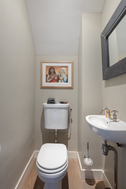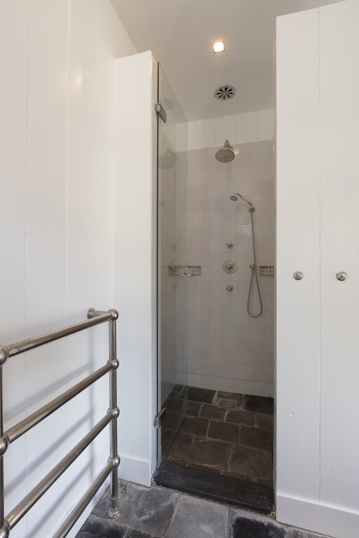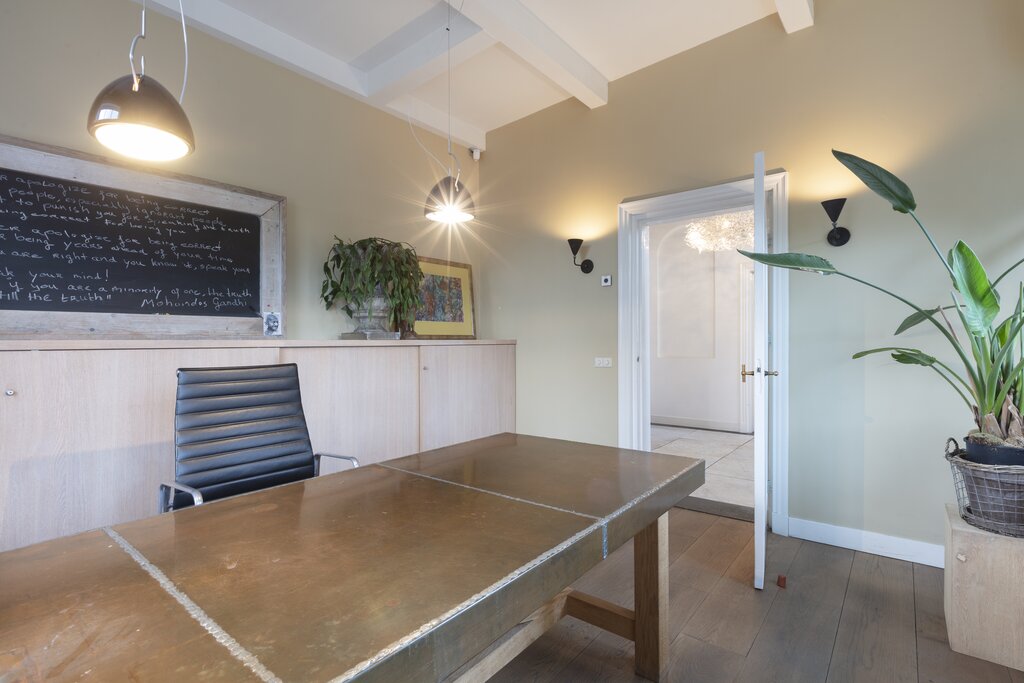 Layout: Ground floor: Stately entrance, spacious hall with marble floor, two 'rooms' on either side of the hall, are now his & her's offices, TV room/ small living room with fireplace, en-suite connected to the intermediate room (access to the wine cellar) and toilet, very generous - cozy - kitchen with the highest quality equipment. You can even fit the biggest dining table in this part of the house. A lovely 2nd living room on the garden side, is directly connected to the kitchen by double doors. Spacious back hall and 2nd toilet. Second stair case to the 1st floor.