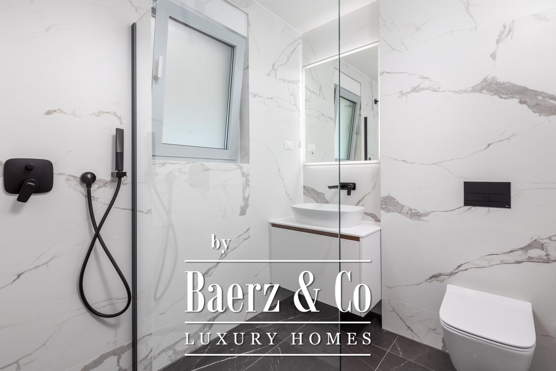 The architecture, marked by finely executed modern lines and the use of luxurious materials, reflects a new standard of refinement. Each detail from the Villeroy & Boch sanitary ware to the three-layer IZO glass in the brown aluminum carpentry speaks to quiet quality. Floor-to-ceiling heights of 260 cm, smart apartment management, and anti-burglary doors enhance security and comfort, while floor heating brings a subtle tactile warmth throughout.