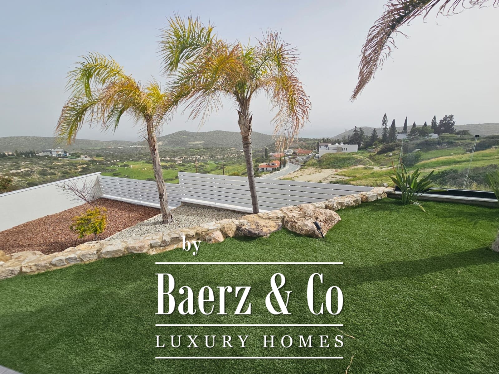 Outdoors, the landscaped garden frames a private swimming pool and BBQ area, complemented by a poolside shower and toilet. Eight parking spaces, ample storage, a security door, and a dedicated service room complete the offering. This villa defines high-end living for those drawn to the unique panorama and tranquility of Parekklisia.