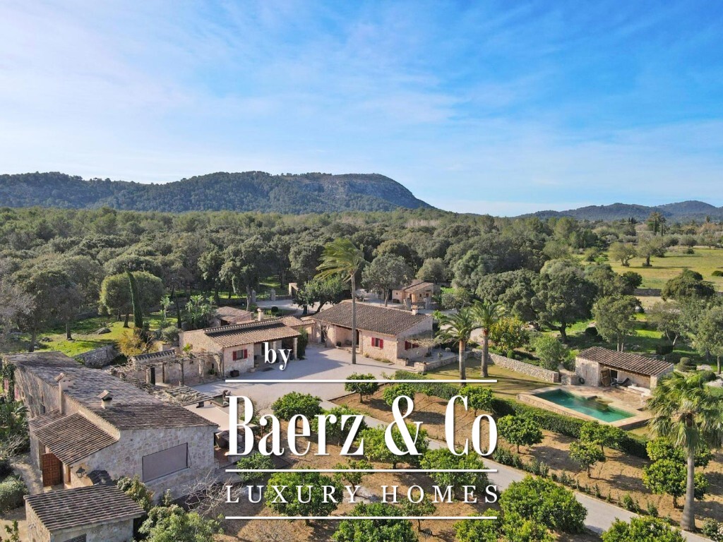 Estate for sale in Pollença presents an extraordinary retreat across 172,483 m² of tranquil Majorcan countryside, offering complete privacy and sweeping mountain views. The property’s main living area unfolds over 1,307 m², encompassing three independent bungalows joined by porches, terraces, and landscaped gardens. These guest houses, constructed approximately two decades ago, are meticulously maintained and connected by inviting outdoor spaces.