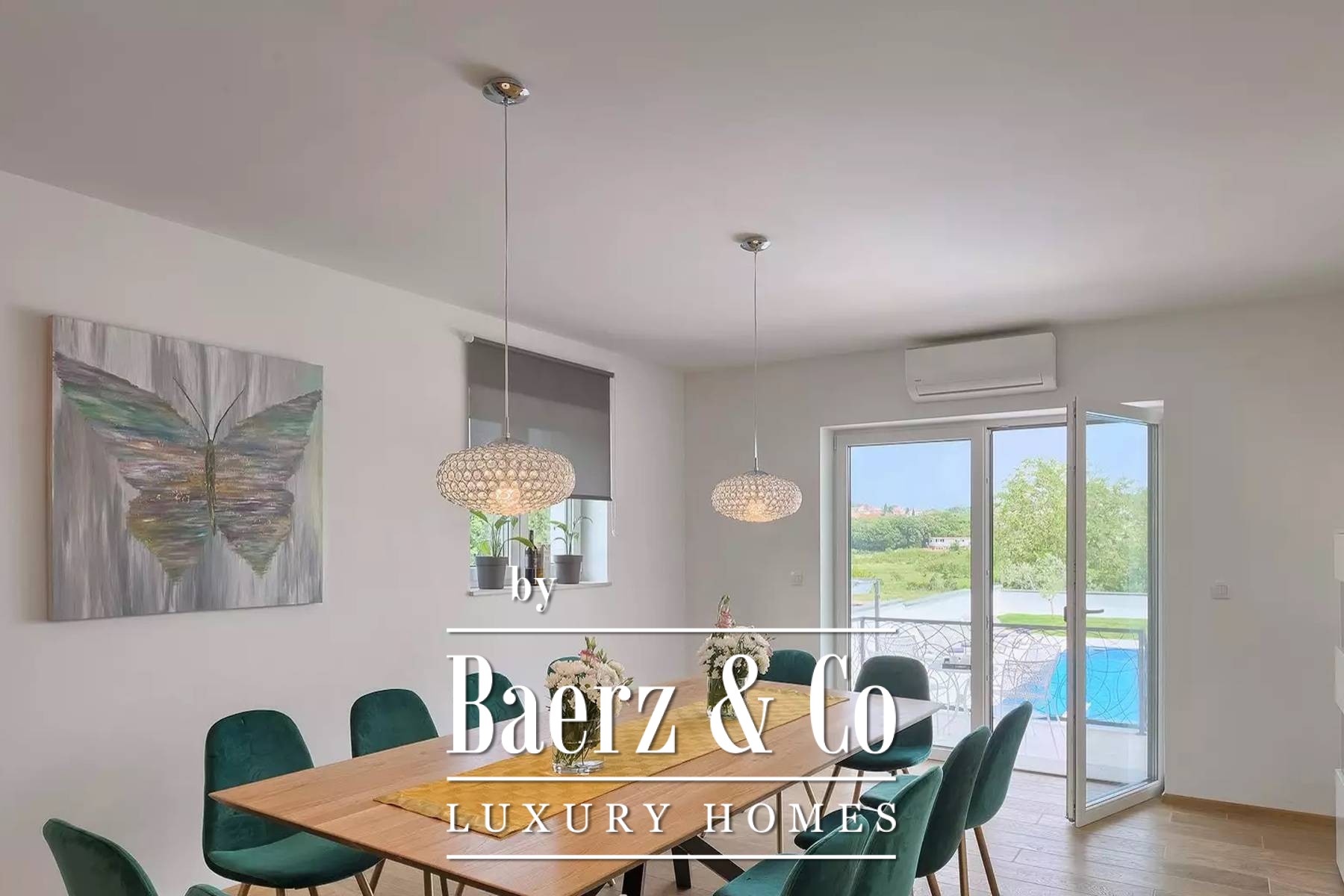 Villa Štinjan Pula presents a statement of self-sustainable, modern living in one of Croatia’s most peaceful coastal locations. This villa in Štinjan offers 570 m² of living space distributed over three well-planned floors, nestled on a 1,758 m² landscaped plot. Designed for both leisure and function, the villa’s architecture flows from a voluminous basement ripe for conversion into a gym, wellness area, or playroom, to generous daily living spaces anchored by light and connection to the outdoors.