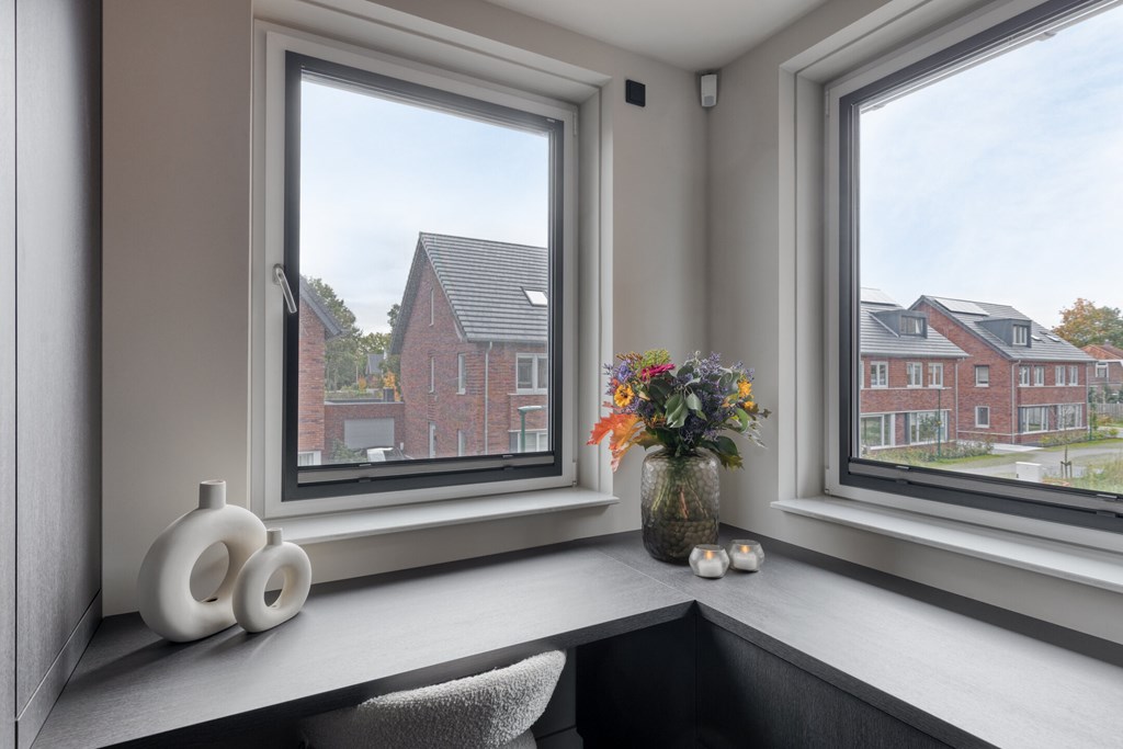 Surrounding the home is a neat, green garden, largely laid out with lawn and partially paved. Thanks to its ideal orientation, you can enjoy the sun all day long; from early morning until the evening sun on the terrace. The garden offers plenty of privacy and space for a lounge or dining area. At the front, there is a driveway with space for two cars and a charging point, while attractive outdoor lighting creates a pleasant atmosphere, even in the evening.