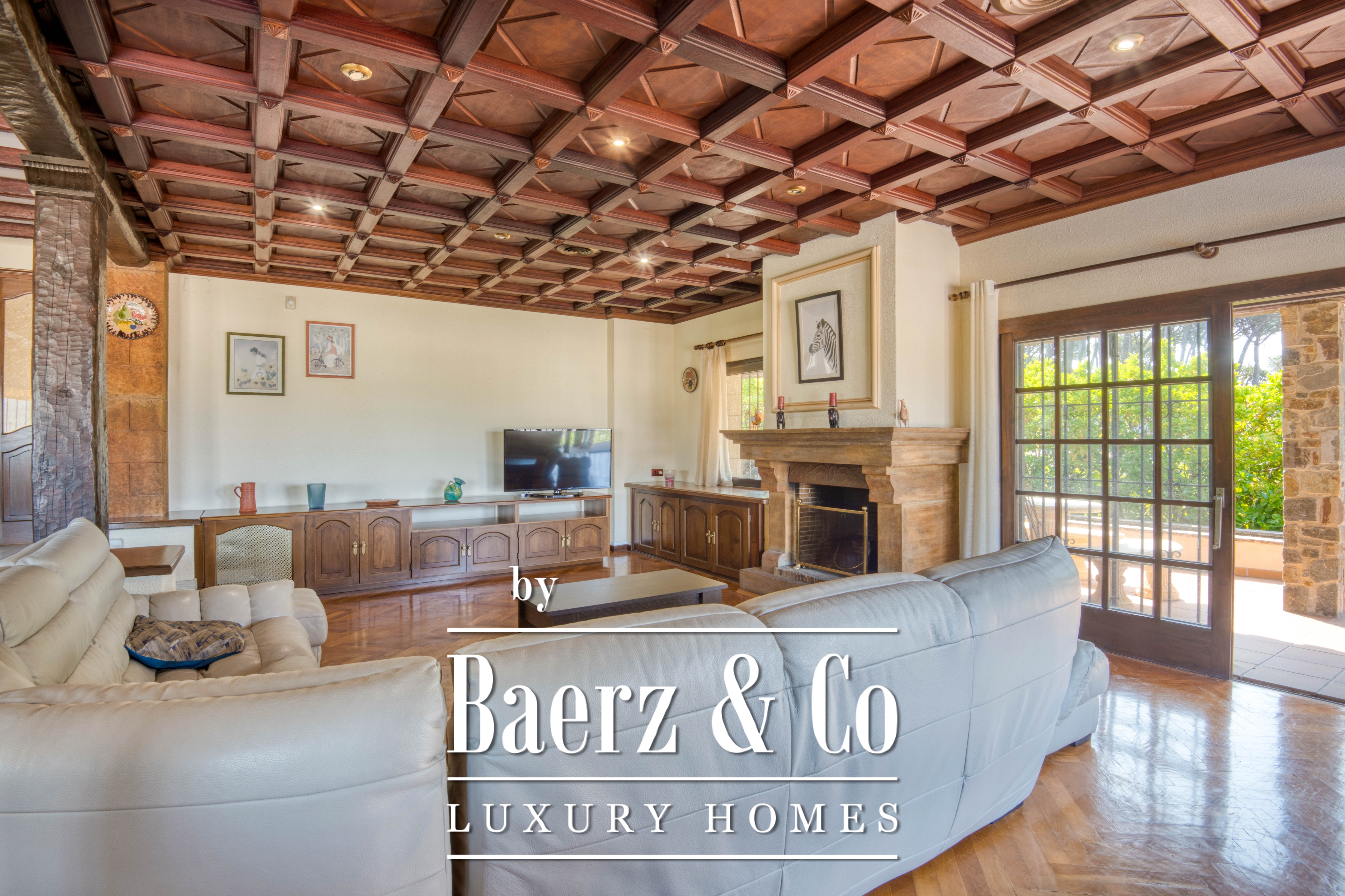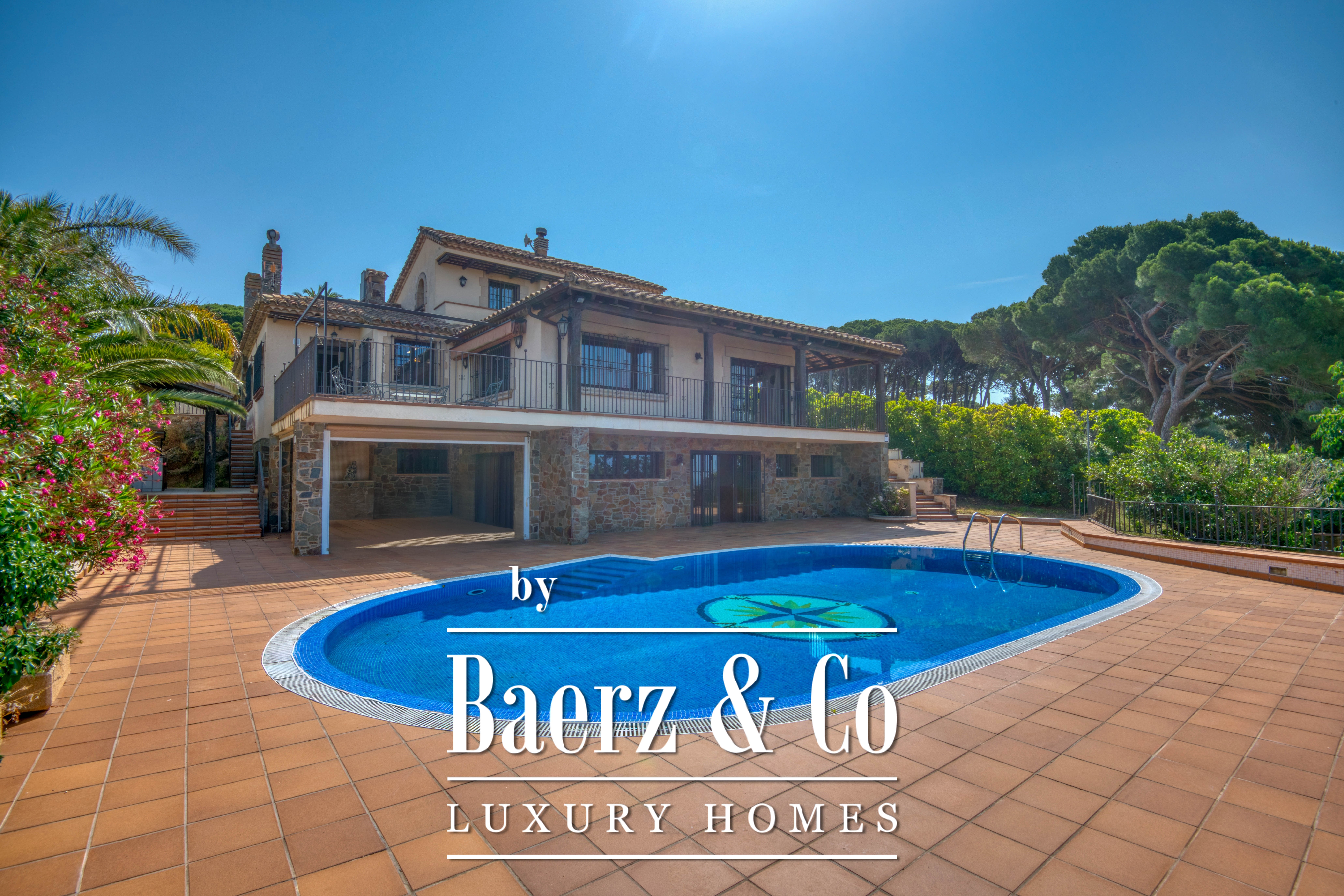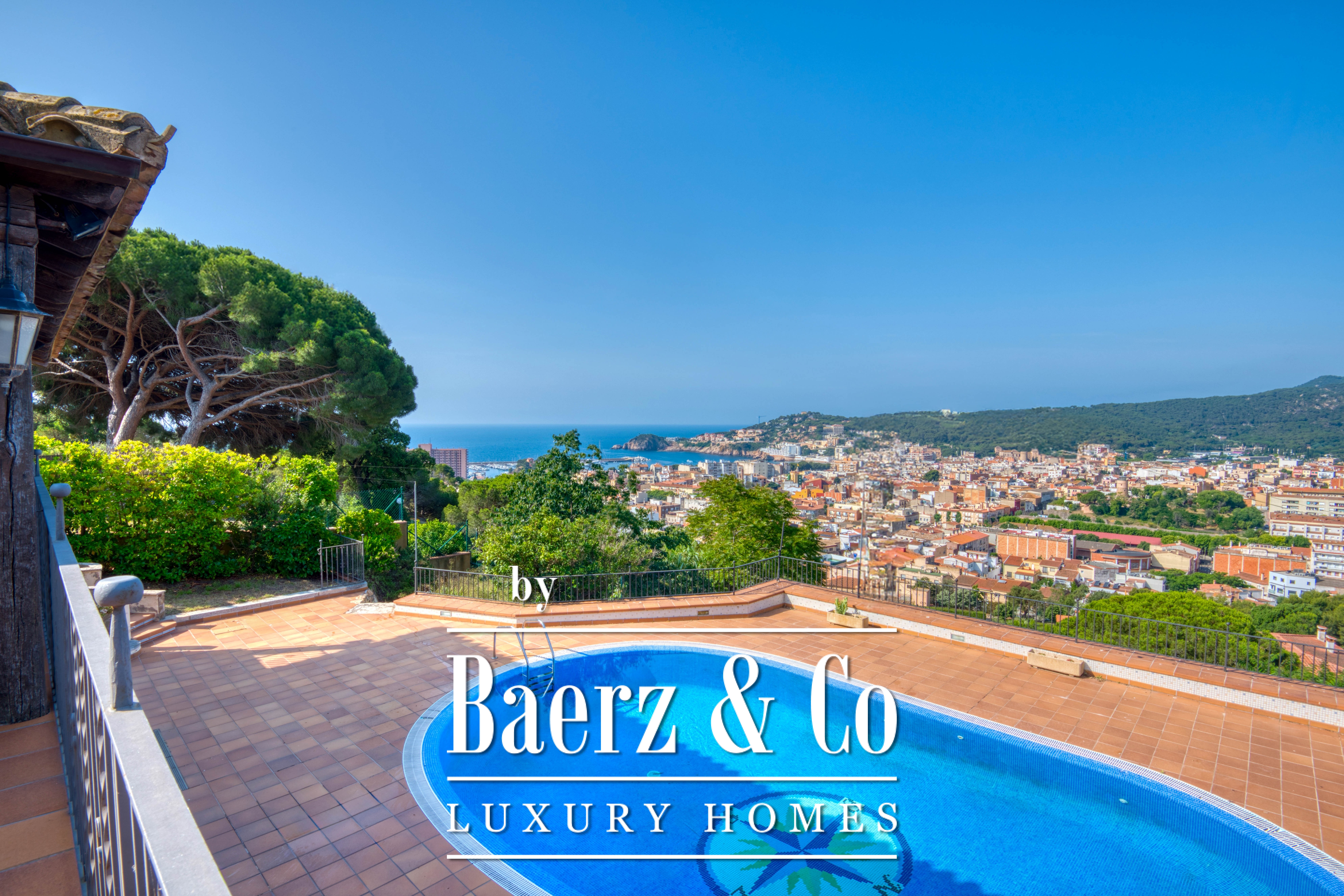 Outdoors, a sizeable pool and private tennis court invite relaxation and activity, sheltered by mature greenery. Endless views reach across the Mediterranean Sea, Sant Feliu Monastery, Sant Elm Mountain, and the Ardenya cornice, shifting with the changing light. Featuring a garage, air conditioning, BBQ area, and games room, this luxury villa for sale in Sant Feliu de Guixols articulates understated luxury and rare authenticity, suited for year-round living or as a treasured retreat.