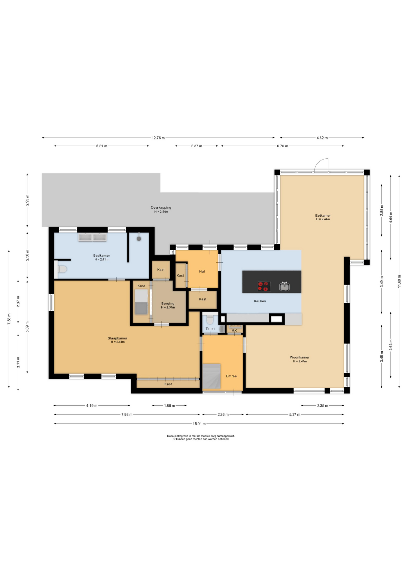 The kitchen is located in the middle. The kitchen with sink/cooking island and an appliance wall is equipped with a dishwasher, combi-oven/microwave, freezer, and refrigerator. The kitchen has plenty of storage space. The spacious bedroom with en-suite bathroom has beautiful herringbone PVC flooring, sleek stucco walls, and a stucco ceiling with recessed lighting. The generous size of the room offers you plenty of possibilities. Thanks to the built-in closets, there is ample storage space—a perfect solution for all your clothes and accessories. There is also air conditioning. The bedroom provides access to the en-suite bathroom. This attractive bathroom is fully tiled and equipped with a very spacious walk-in shower, a double sink with cabinet, and a floating toilet. The spacious walk-in shower with its sun shower and infrared function offers a true wellness experience, ideal for unwinding after a long day. In short, a wonderful space to relax. The laundry room is also accessible from the bedroom. This practical space is furnished with custom-made cabinets, including connections for washing equipment and mechanical extraction, offering an efficient and organized solution—with the added advantage that the equipment is placed at a height. A rear porch with storage and built-in cabinets provides access to the canopy and the yard. Here too, connections for washing appliances are available. First floor The landing provides access to two spacious bedrooms and a bathroom. Both bedrooms have laminate flooring, stucco walls, and a paneled ceiling. Sliding wardrobes have been created under the sloping roof, providing plenty of storage space. The bathroom is fully tiled and equipped with a walk-in shower, a sink with cabinet, and a floating toilet. A dormer window provides natural ventilation and light. A hatch provides access to the storage attic