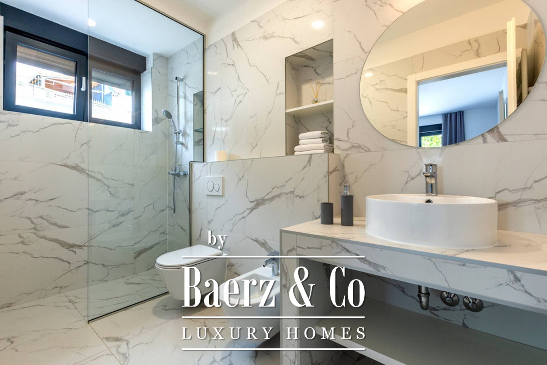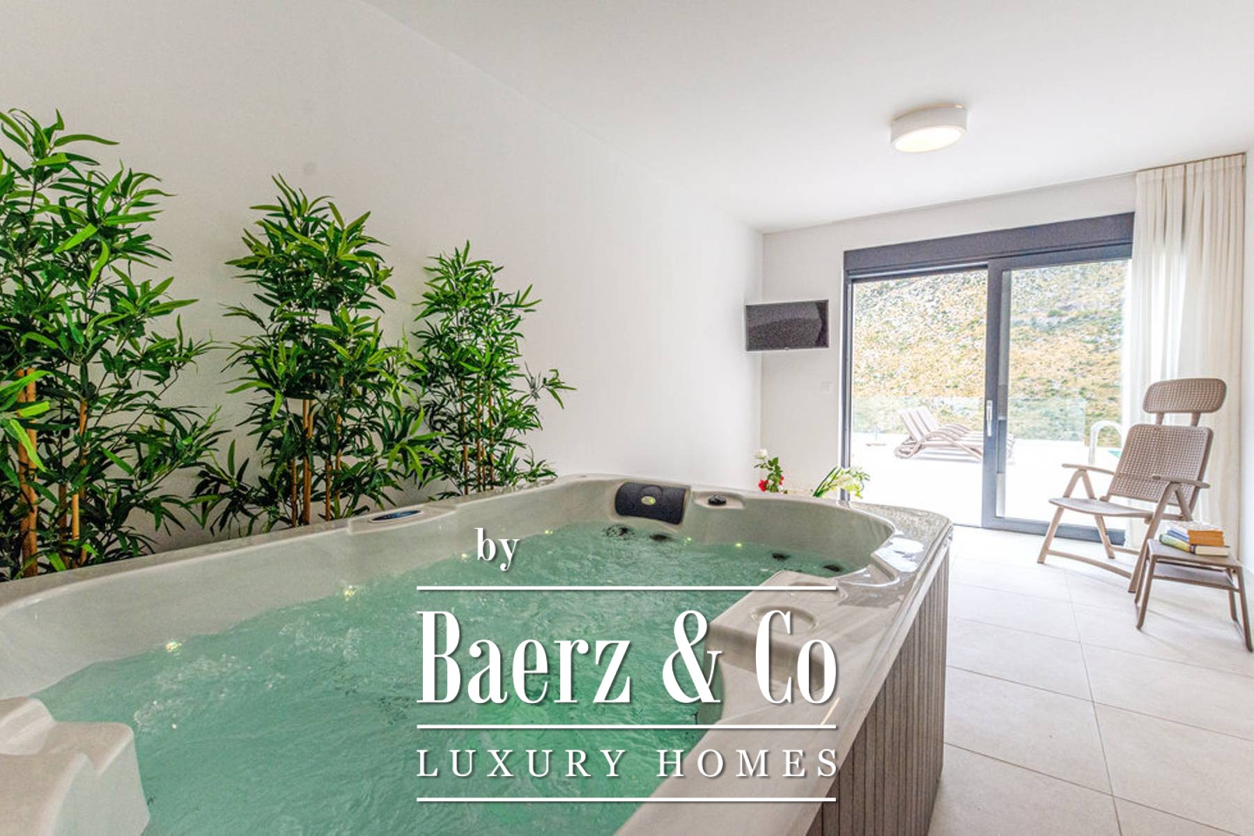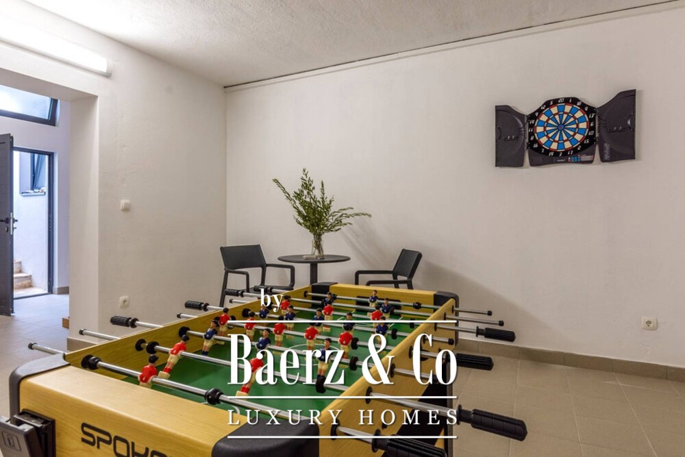 Outdoors, the property reveals a heated swimming pool of 38 m² bordered by a sunbathing terrace and outdoor shower. Recreational amenities include a fireplace and a selection of activities for all ages, from a toboggan to basketball and football courts. Underfloor heating, high-quality insulation and seven climate zones provide year-round comfort, making this villa Split Okolica equally suited for family life or discreet investment.