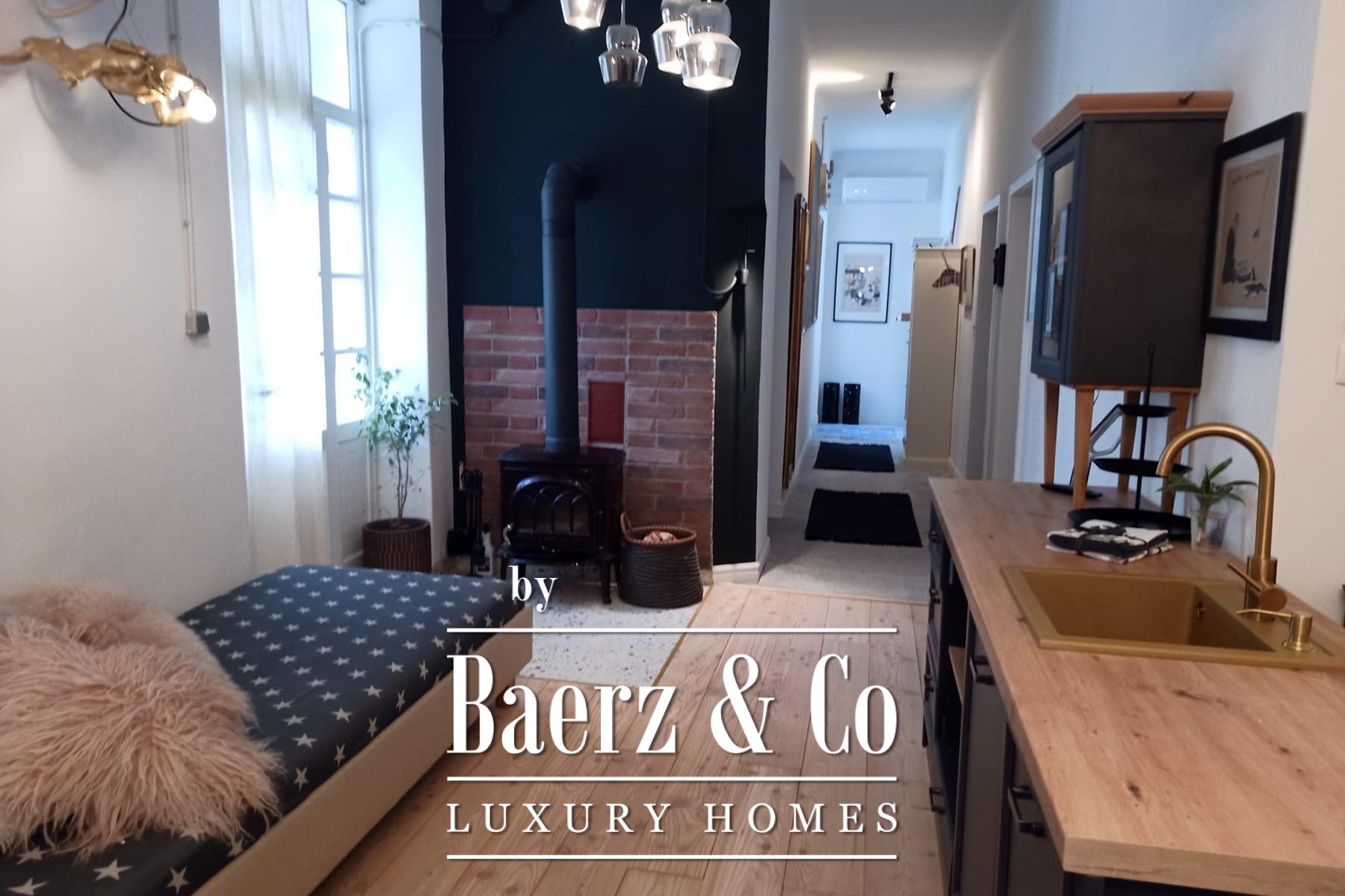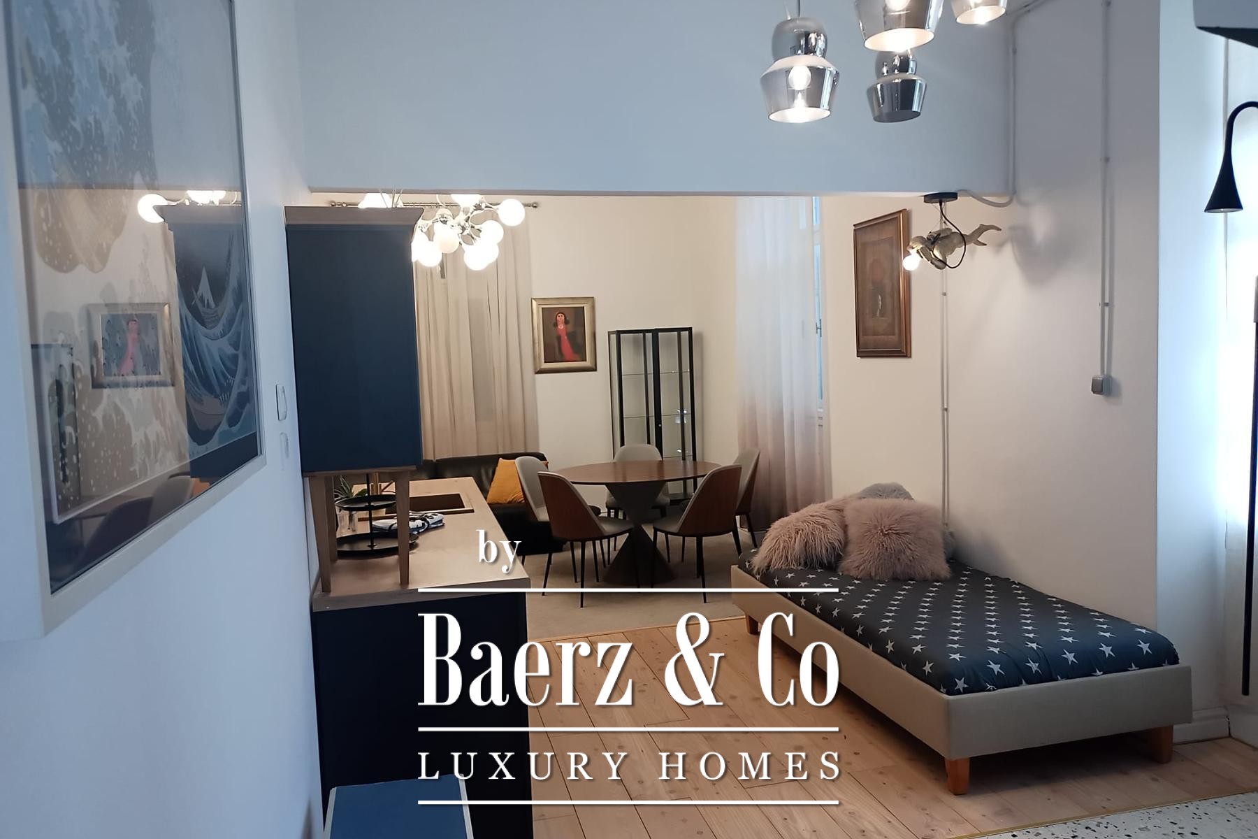 Every inch of this residence has been thoughtfully renovated, retaining historical charm while embracing modern installations and finishes. The option for further extension is offered by an attic space spanning 78 m², adding flexibility to the well-proportioned interiors. Outside, a landscaped Mediterranean garden of 126 m² frames the apartment with olive tones and textures, accompanied by a shaded gazebo for tranquil moments or gatherings.