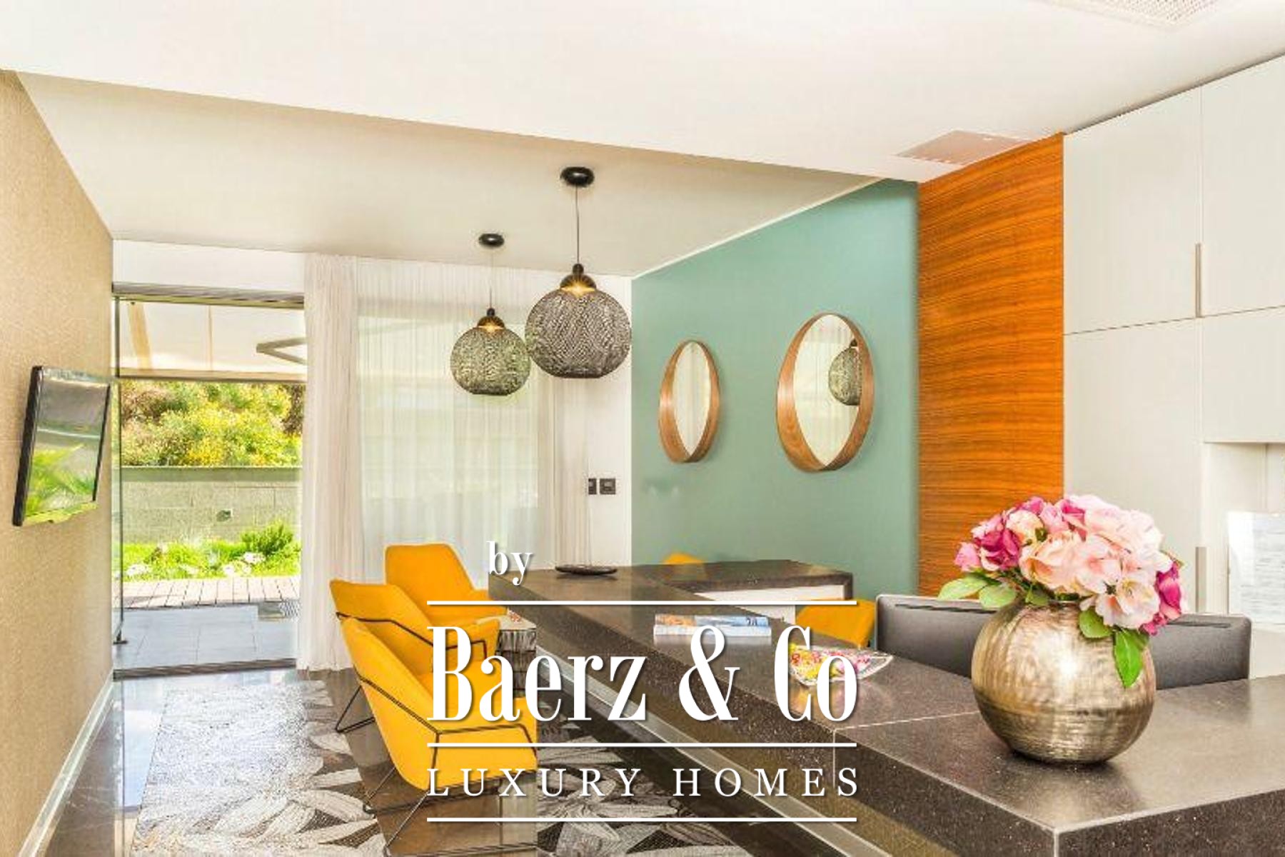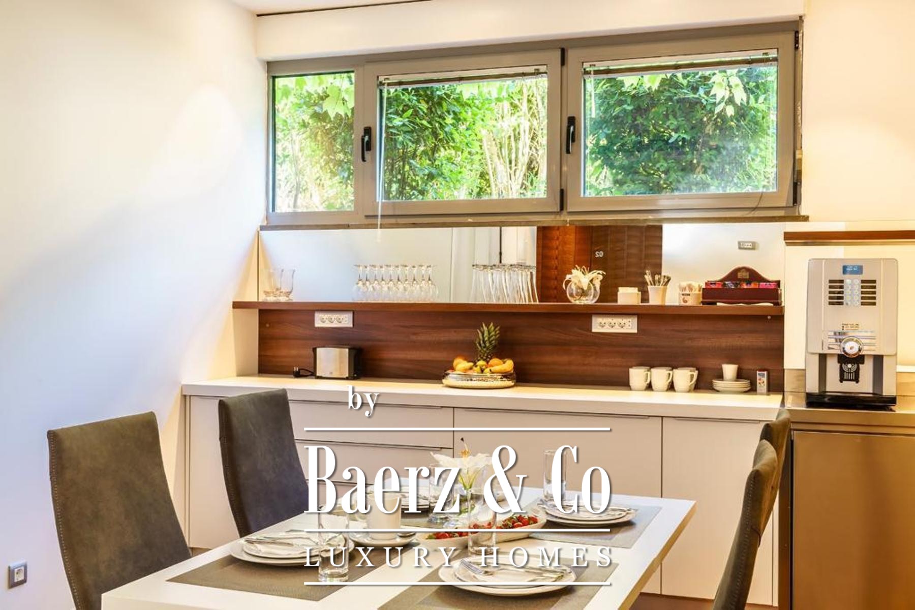 Amenities include a reception, a dedicated restaurant and kitchen, Finnish sauna, jacuzzi, gym, and thoughtful storage and laundry facilities. There are 3 guest and staff toilets, 6 outdoor parking spaces, and 4 garage spaces. The outdoor pool and landscaped garden cover a combined 494 m², creating a tranquil haven for relaxation.