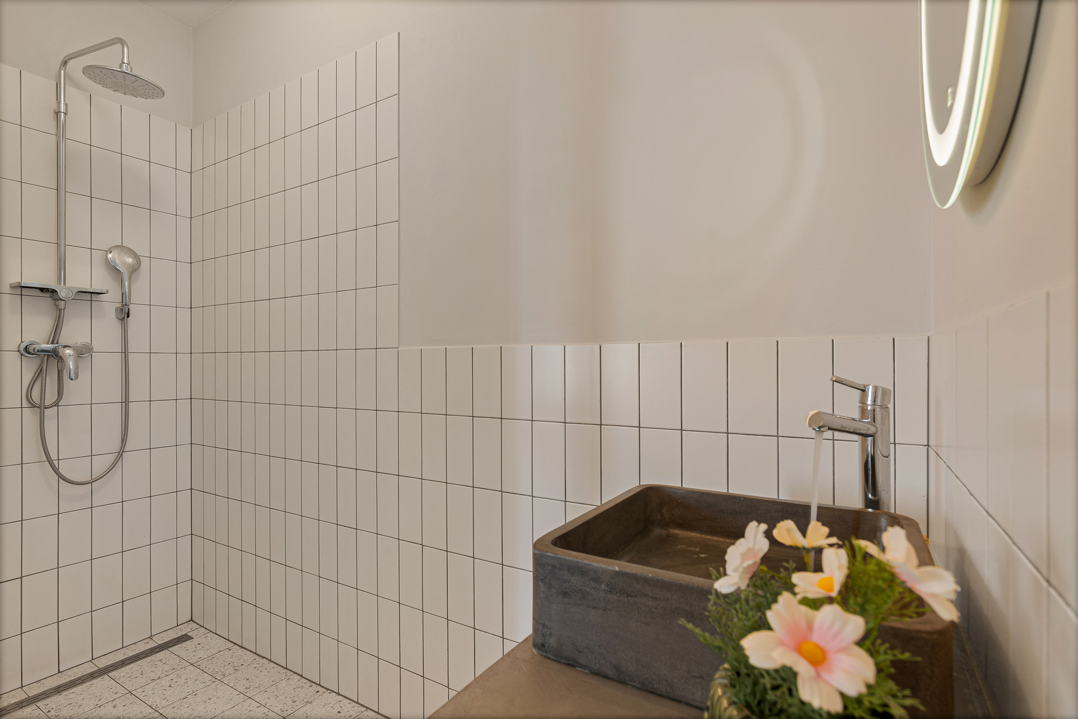 The canal house features five spacious bedrooms, each with an en-suite bathroom, ensuring privacy and comfort for family or guests. Expansive floor-to-ceiling windows flood the open-plan living area with light and frame calming views of the water and garden. A high-specification open kitchen anchors the main living area, offering direct sightlines to both the water at the back and the street-side canal. The entire home is finished with quality materials, including a tiled ground floor with underfloor heating throughout, complemented by a zone-controlled system managed via smartphone.