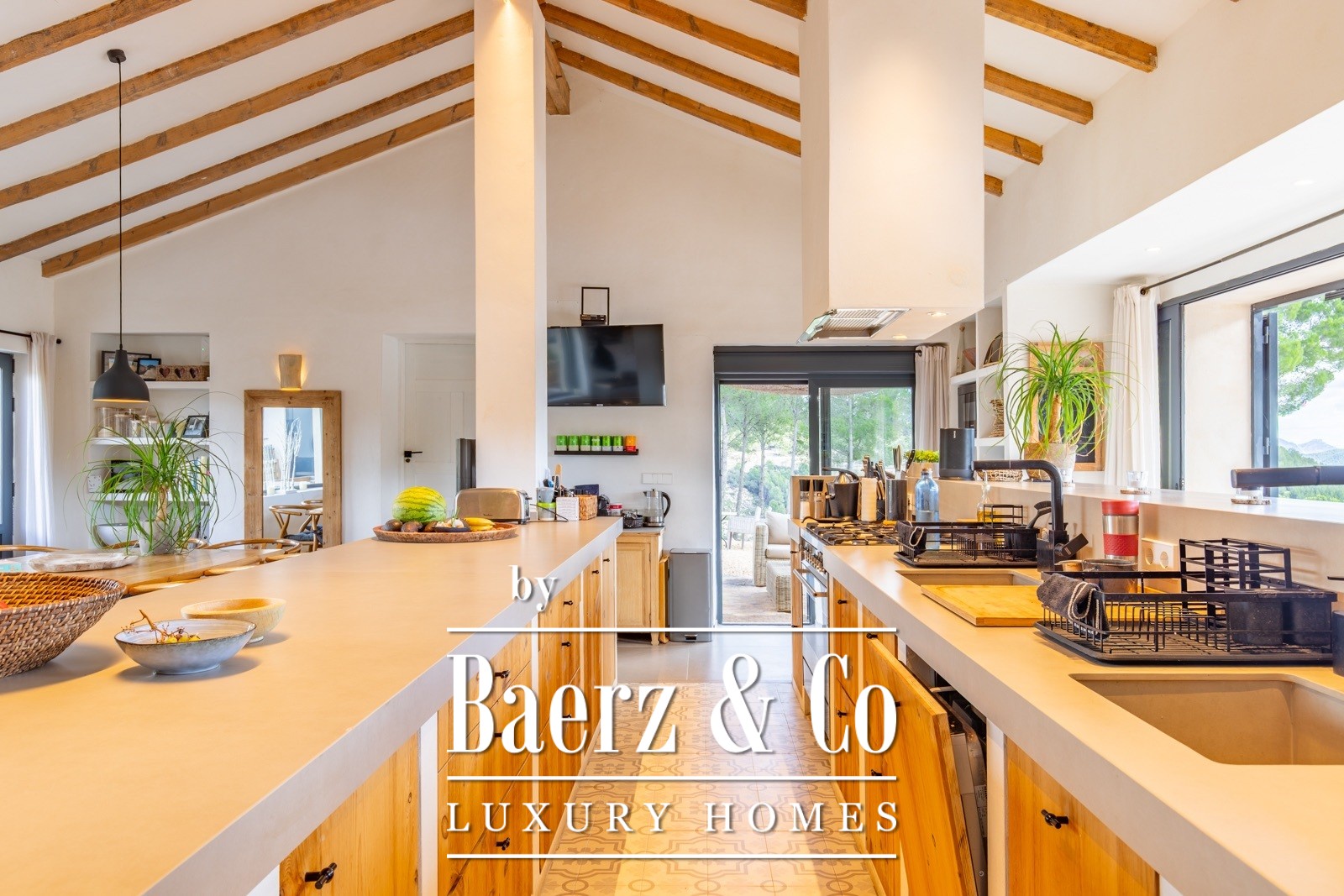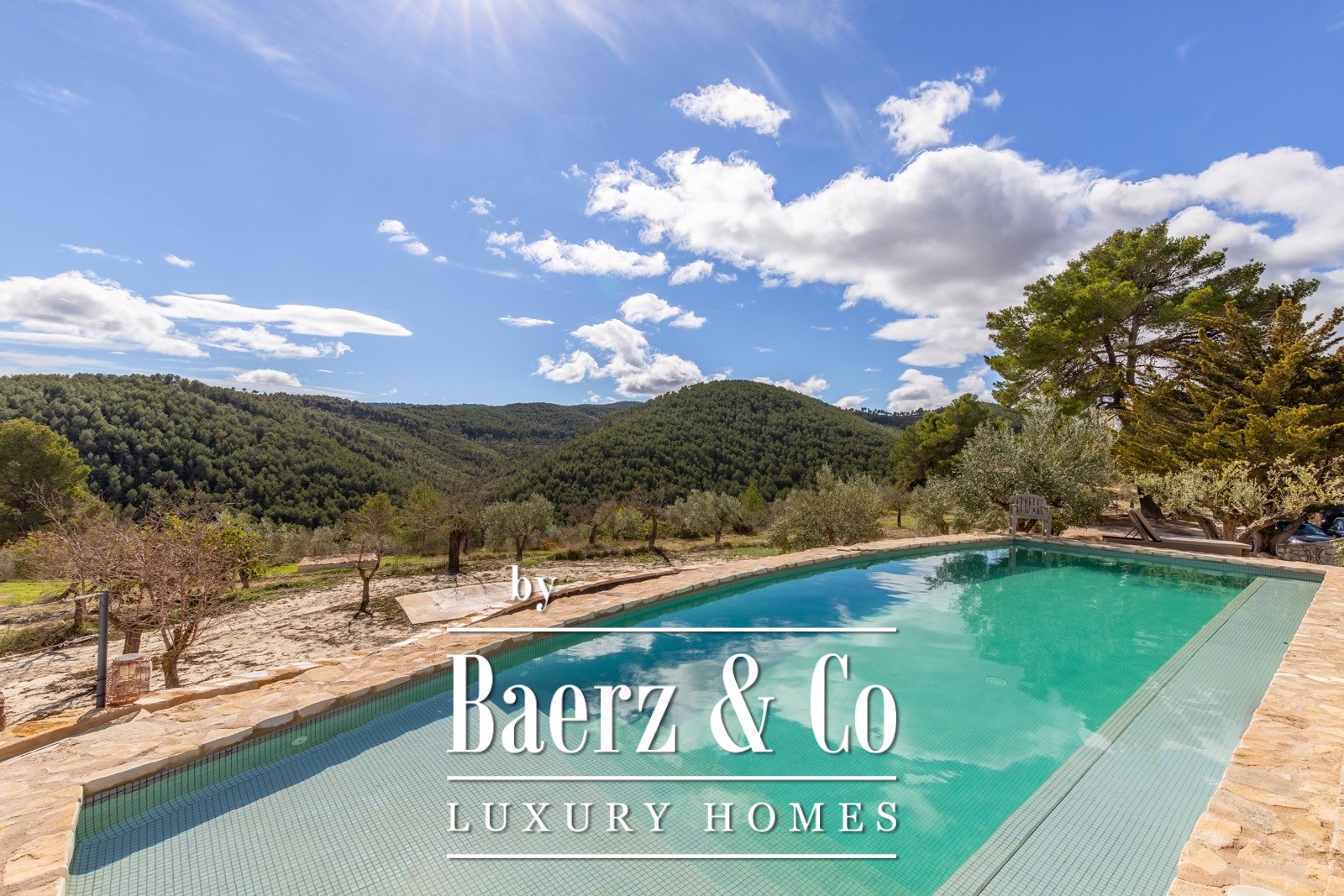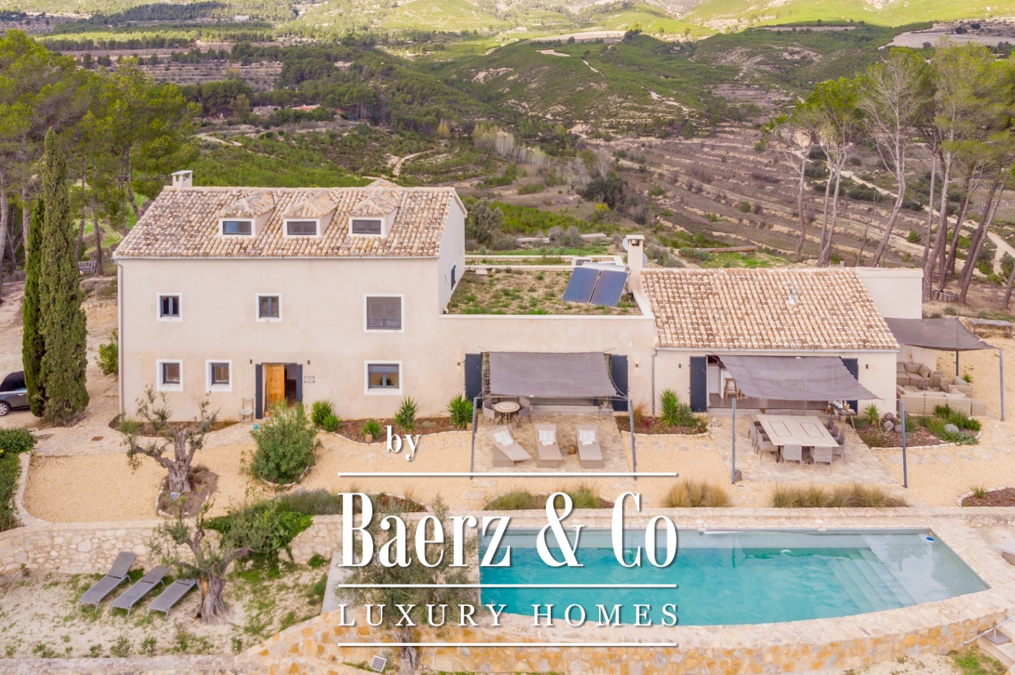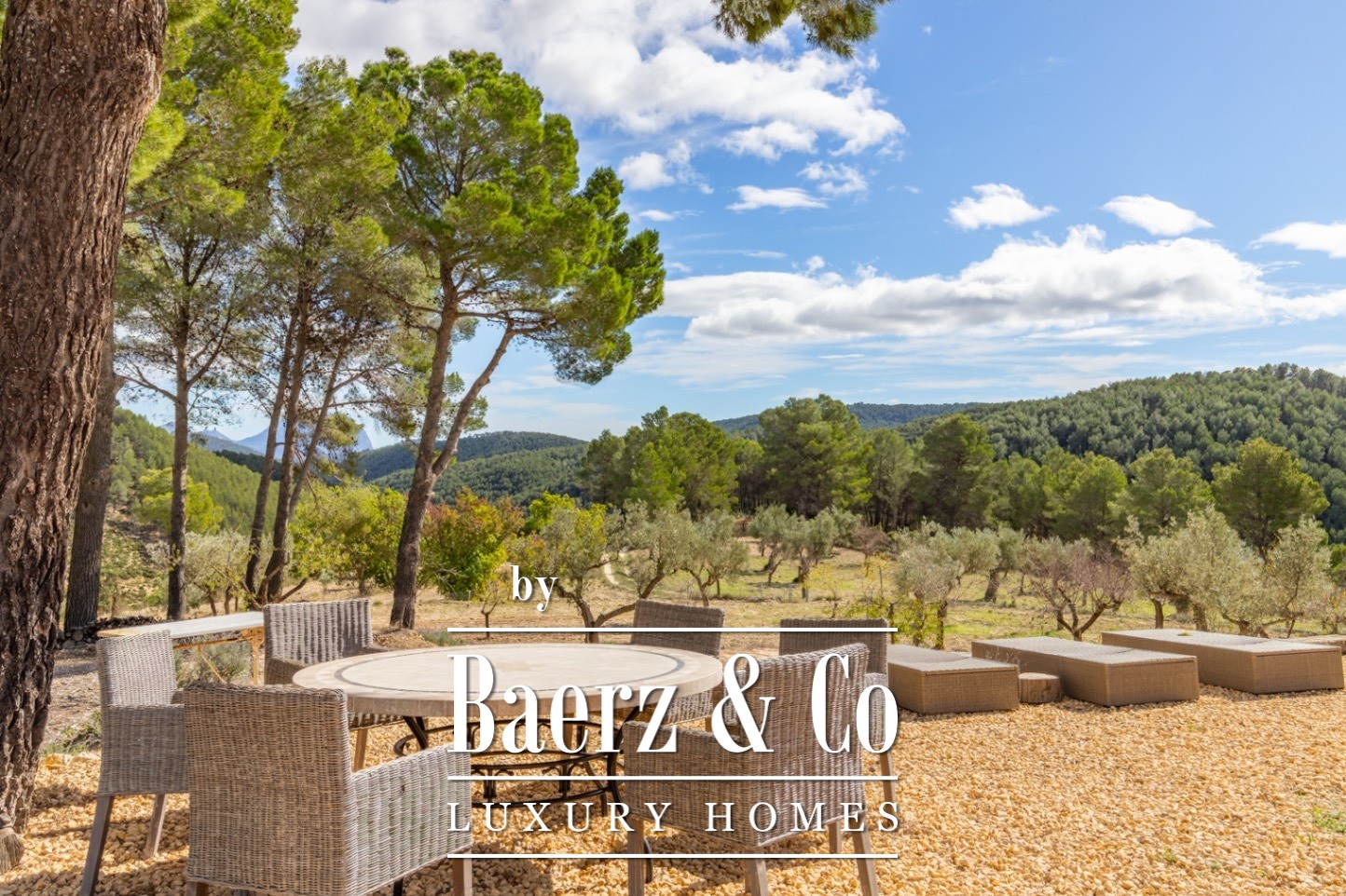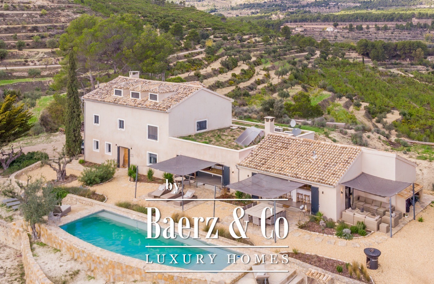 Finca Torremanzanas stands as a rare property type in one of Spain’s most tranquil inland regions. Set on 18 hectares of lush, Mediterranean land at 850 meters altitude, this beautifully revived estate is just 3 km from the village of Torremanzanas and offers panoramic views of Puig Campana. Thoughtfully renovated in 2022, the 450 m² main house merges refined modern finishes with authentic Mediterranean character. Each living space is bright and elegantly restrained, opening to a landscape planted with olive, almond and walnut trees.