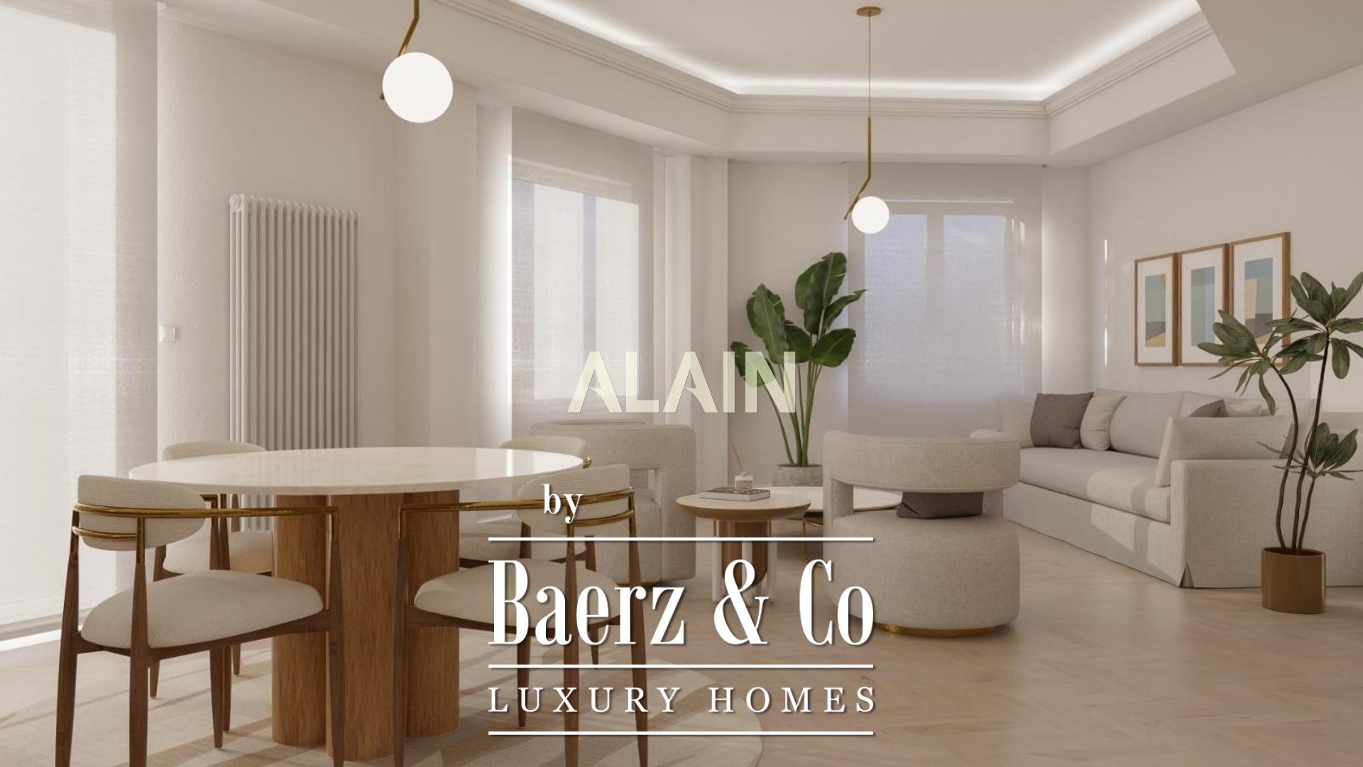 Baerz & Co presents an exceptional apartment for sale, distinguished by its luxury finishes and complete renovation. With a total of 145 m² of living space, this property is intelligently designed to offer a large living-dining room that integrates a modern kitchen and provides access to a charming balcony with ample room for a table and chairs. The layout includes three spacious bedrooms; the master bedroom features a private dressing room and en-suite bathroom, while the other two bedrooms offer generous built-in wardrobes. Elegant natural wood floors complement the high-quality interior finishes. The climate control system provides both hot and cold air
