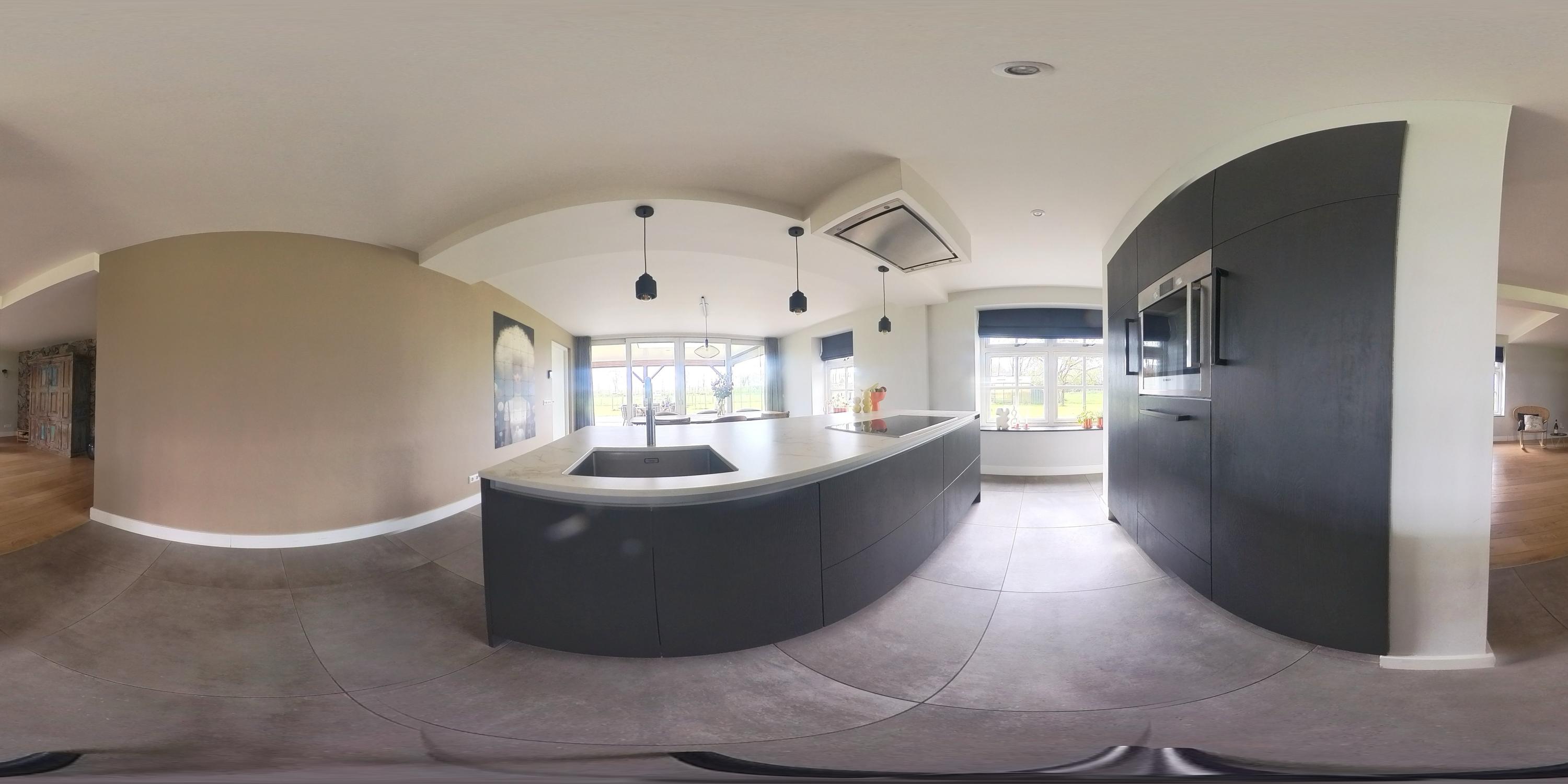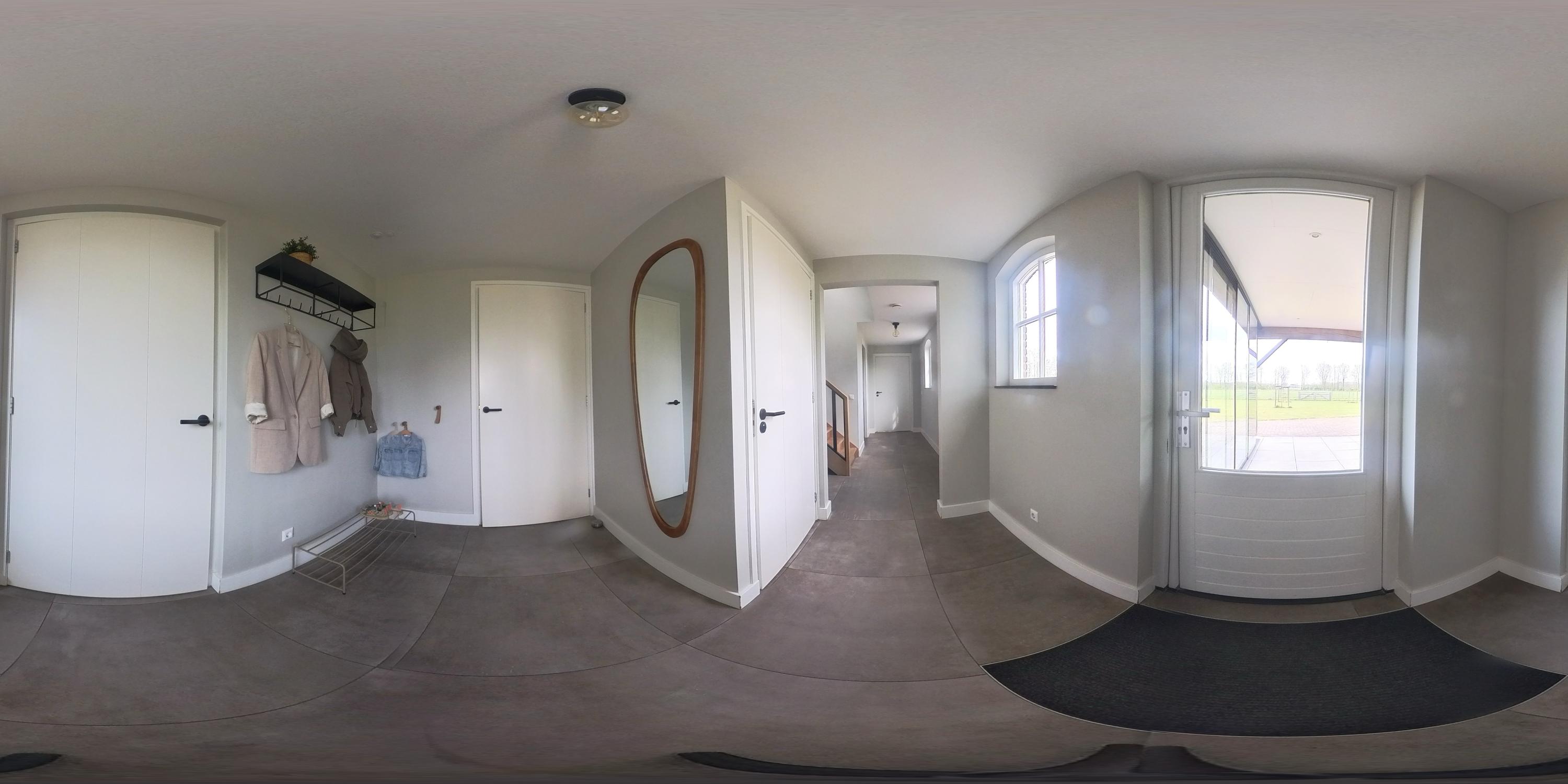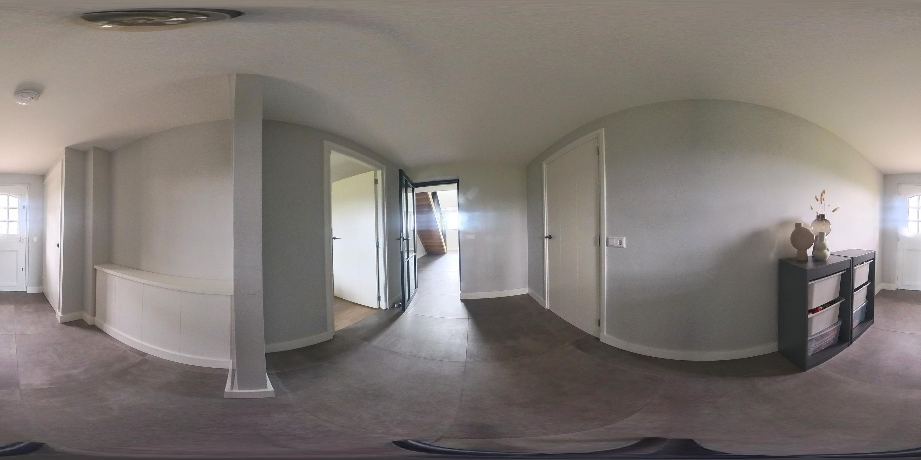 The cosy living room, with its warm wooden parquet flooring and stucco walls, is a delightful space with plenty of natural light. The living room is directly connected to the kitchen-diner. The kitchen-diner is fitted with a cooking island and wall units and features all necessary appliances, including a Quooker, dishwasher, induction hob, oven and fridge. The modern tiled floor with underfloor heating and the sliding doors providing access to the covered terrace make this kitchen a pleasant and practical living space with views of the surrounding landscape. The utility room, toilet and storage room are accessible via the corridor. The utility room is practically laid out with washing appliances at a convenient height, storage space and additional facilities such as a fridge and combi-oven. The toilet is fitted with a wall-hung toilet and washbasin. The storage room has connections for installing a bathroom, making it easy to create a lifetime-proof layout.