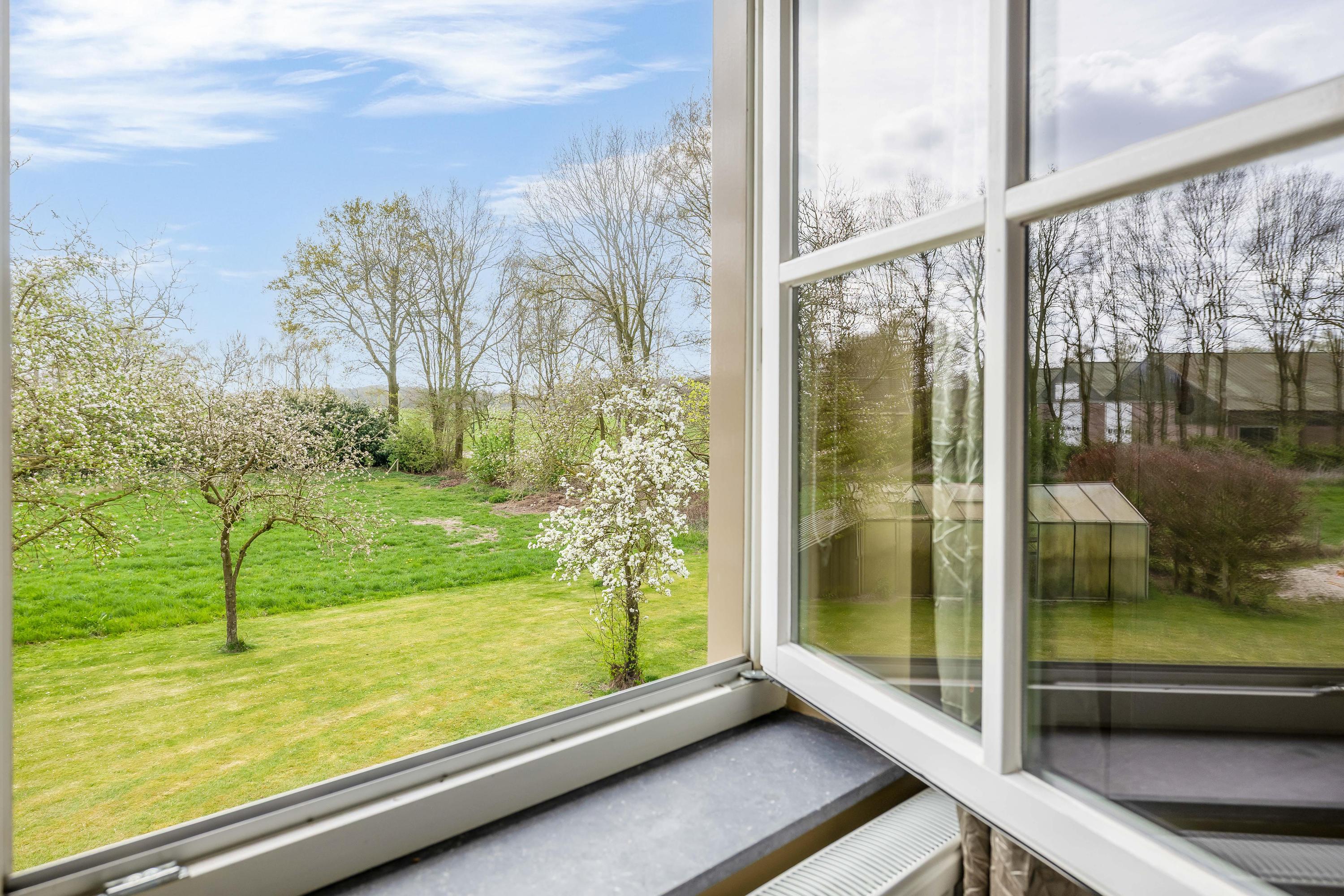 For lovers of the outdoors, the plot is an essential part of the experience. The garden surrounding the house features a covered terrace, a spacious lawn and an orchard with various fruit trees. The adjacent pasture also makes this location particularly suitable for keeping (pet) animals. Part of the plot is landscaped with rows of trees and natural vegetation, which contributes to the quality and biodiversity of the whole. Landscape management applies to this part (STILA scheme, until October 2027, with subsidy).