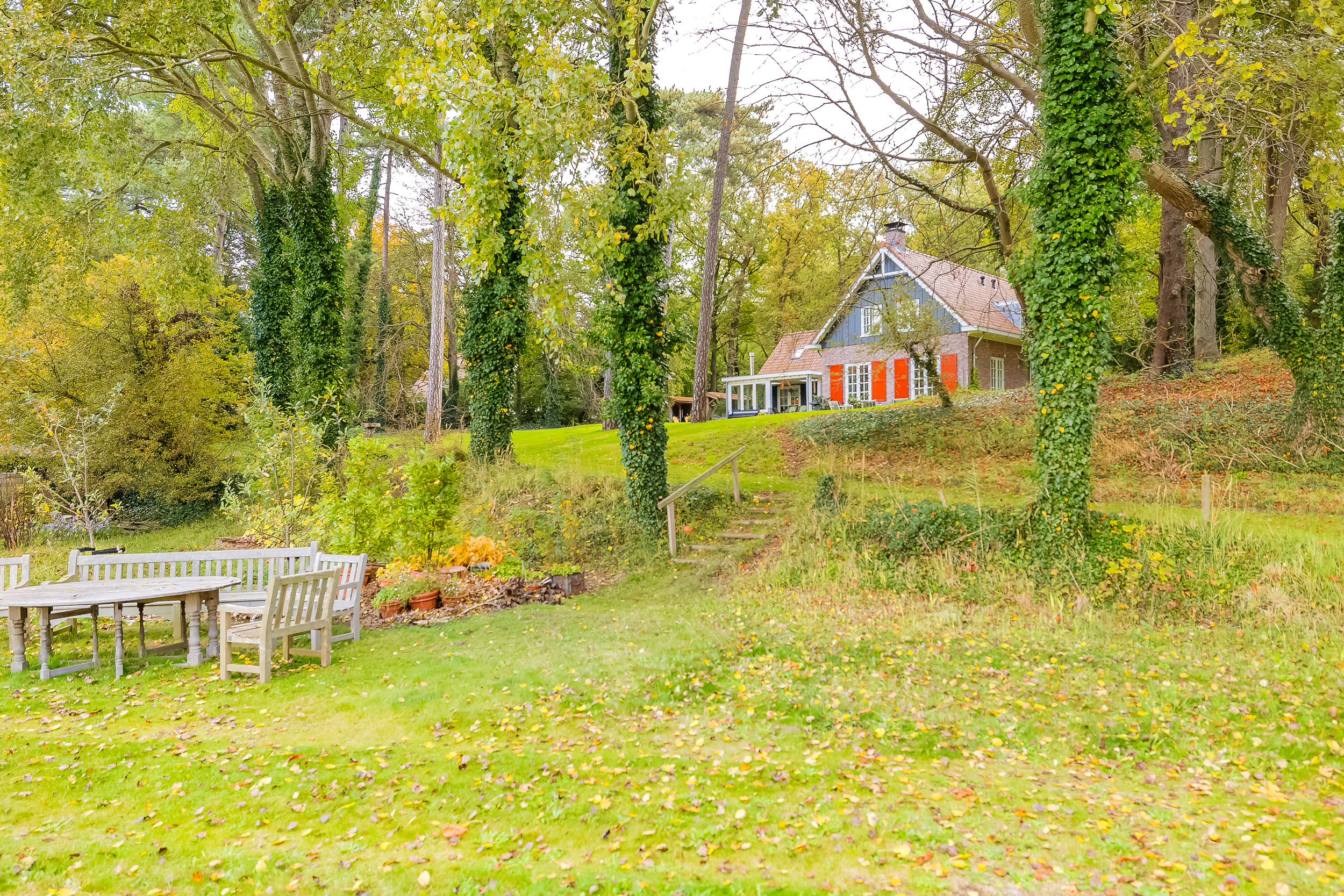 The villa is situated on a unique plot of over 18,000 m² in the middle of the forest. Here you can enjoy absolute peace, privacy, and nature—without compromising on accessibility. Shops and schools are within cycling distance. A rare combination of luxury living, living in nature with everyday amenities within easy reach.