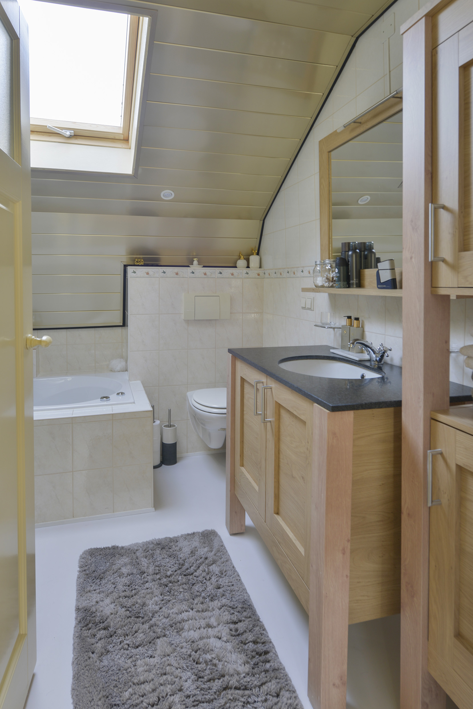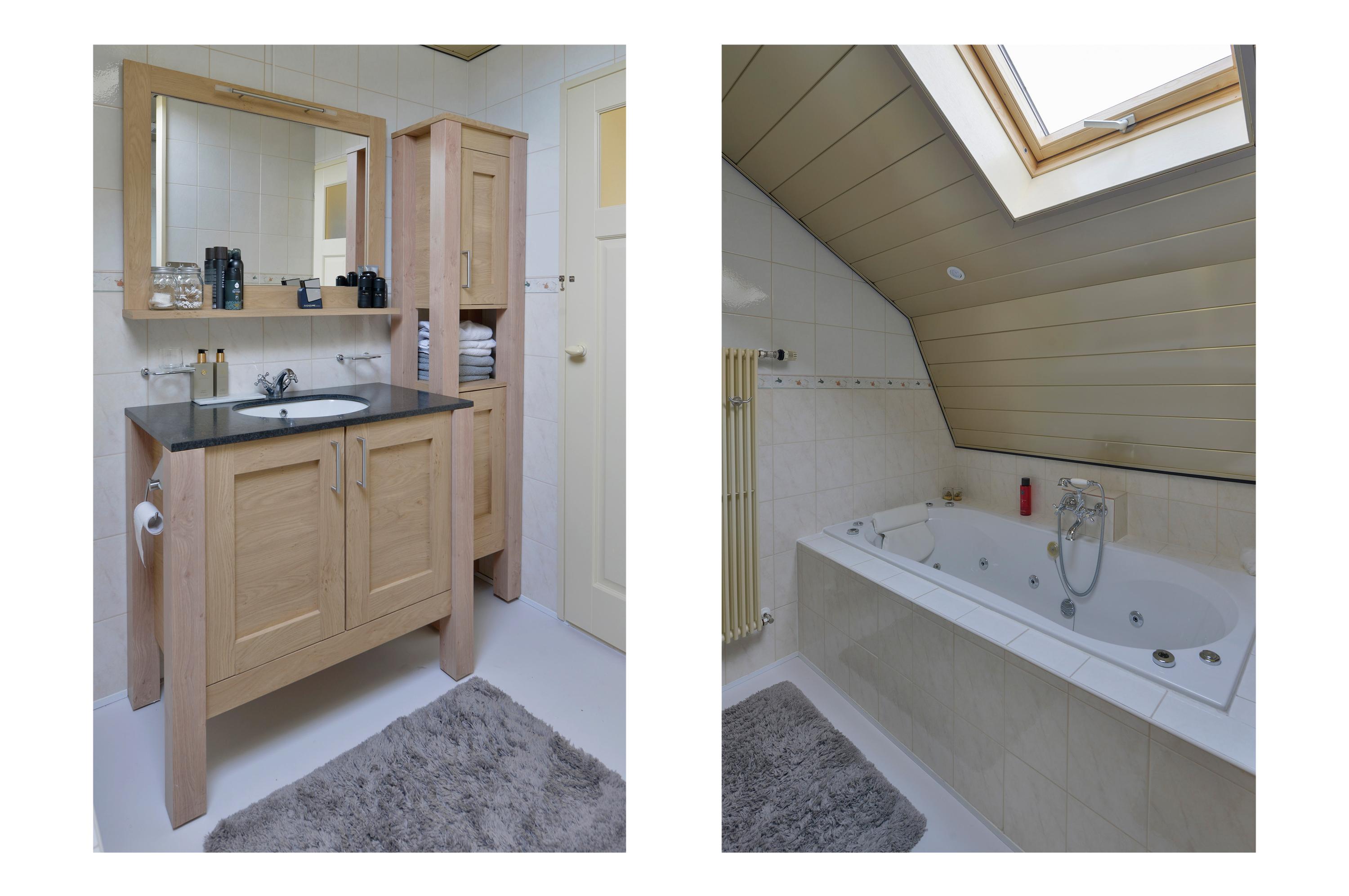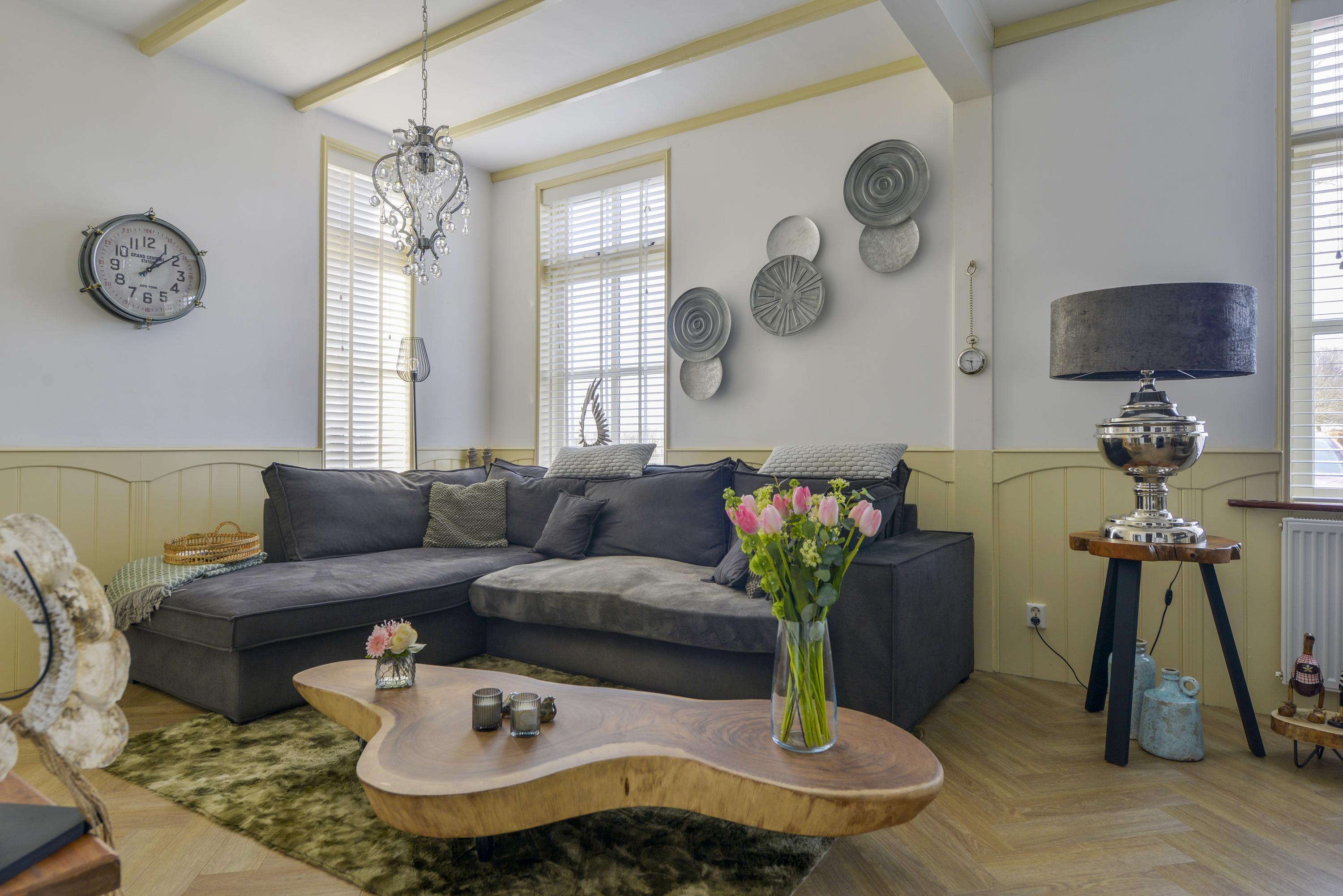 Ground floor: entrance hall with meter cupboard access to the cellar and staircase. Atmospheric and bright living room at the front of the house with an adjoining cosy raised room. From both the hall and the raised room the spacious kitchen is accessible. This modern kitchen was renewed in 2022 and fitted with various built in appliances. There is also a generous utility room with the central heating system and laundry connections.