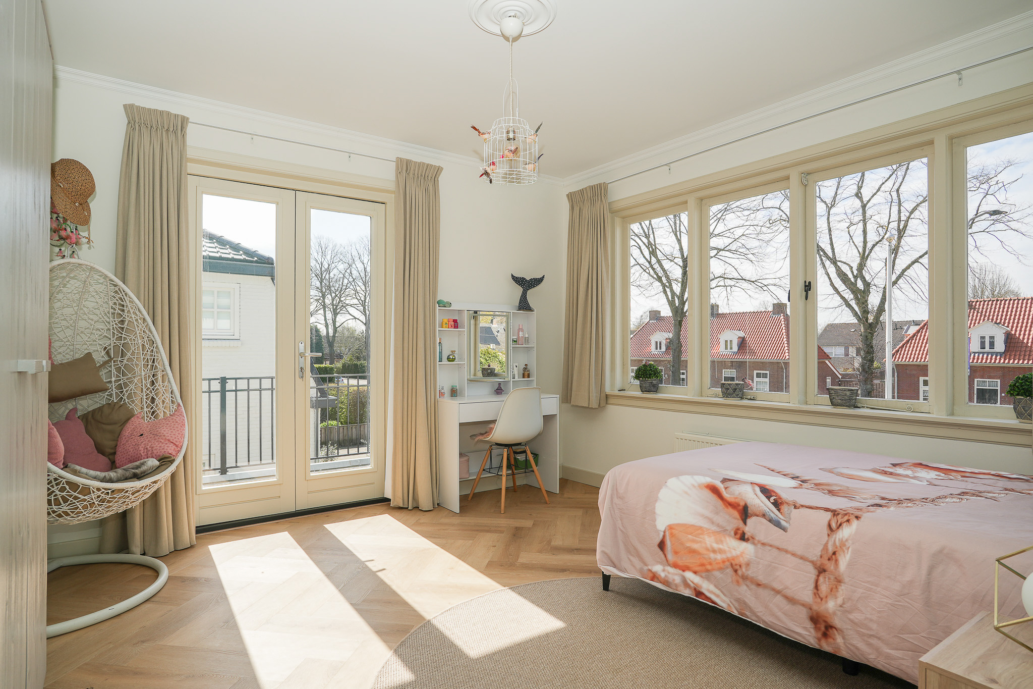 Near the historic centre of Zaltbommel stands this luxurious, pre-war detached villa, offering six bedrooms, two bathrooms and a multifunctional outbuilding, all set within a sun-drenched garden with a swimming pool.