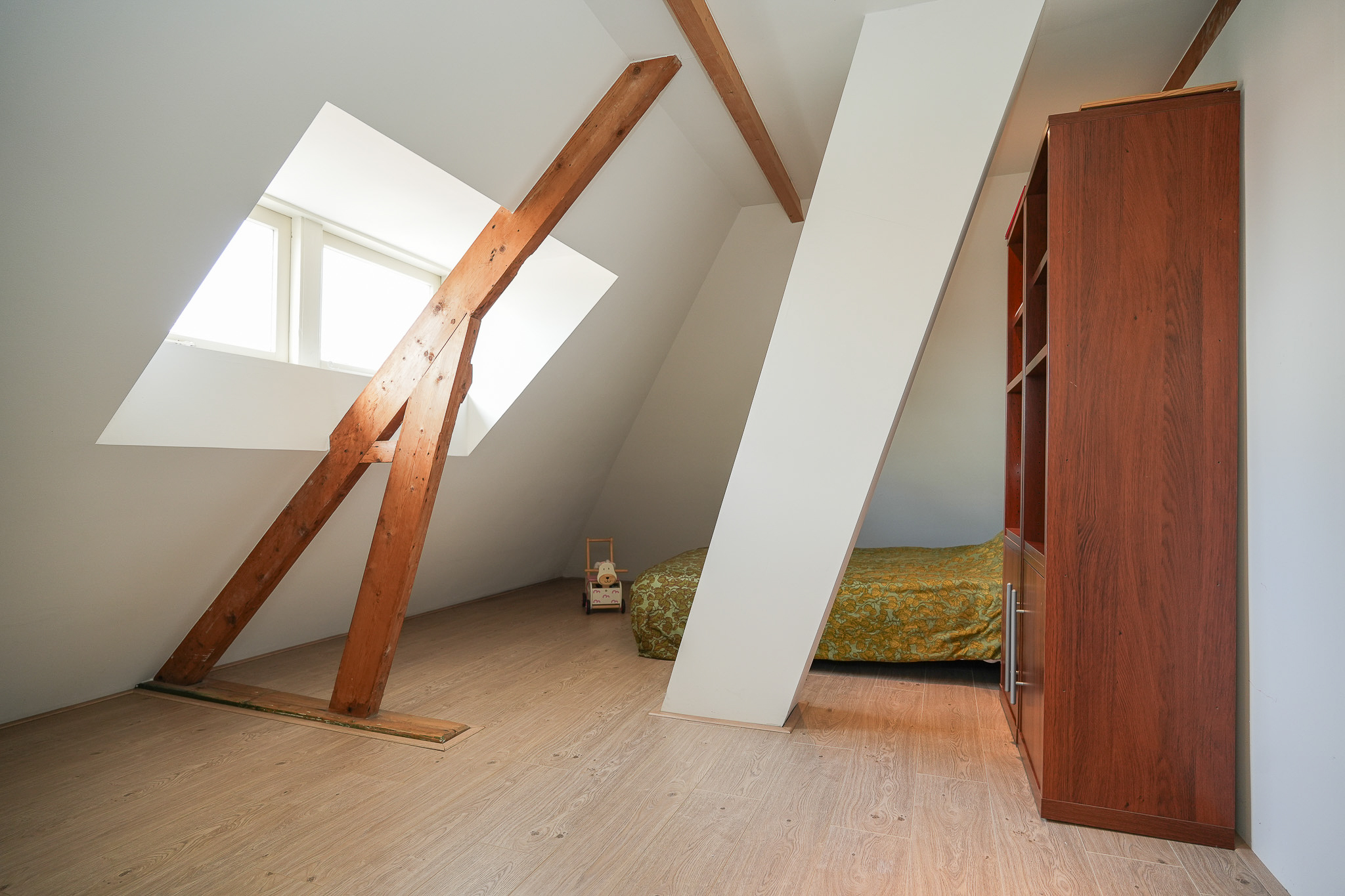 The electrical installation has been completely renewed, incorporating retro-style switches combined with Philips Hue lighting. Twelve solar panels have been installed on the flat roof, and the main roof was fully renovated in 2024, including new battens and tiles. The zinc work had already been renewed the year before.