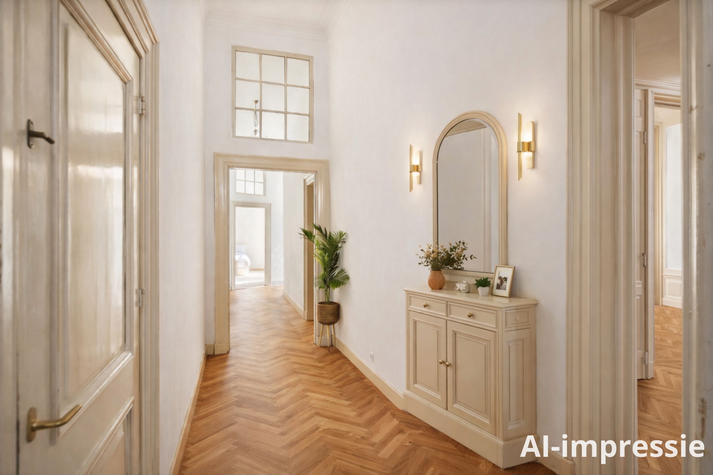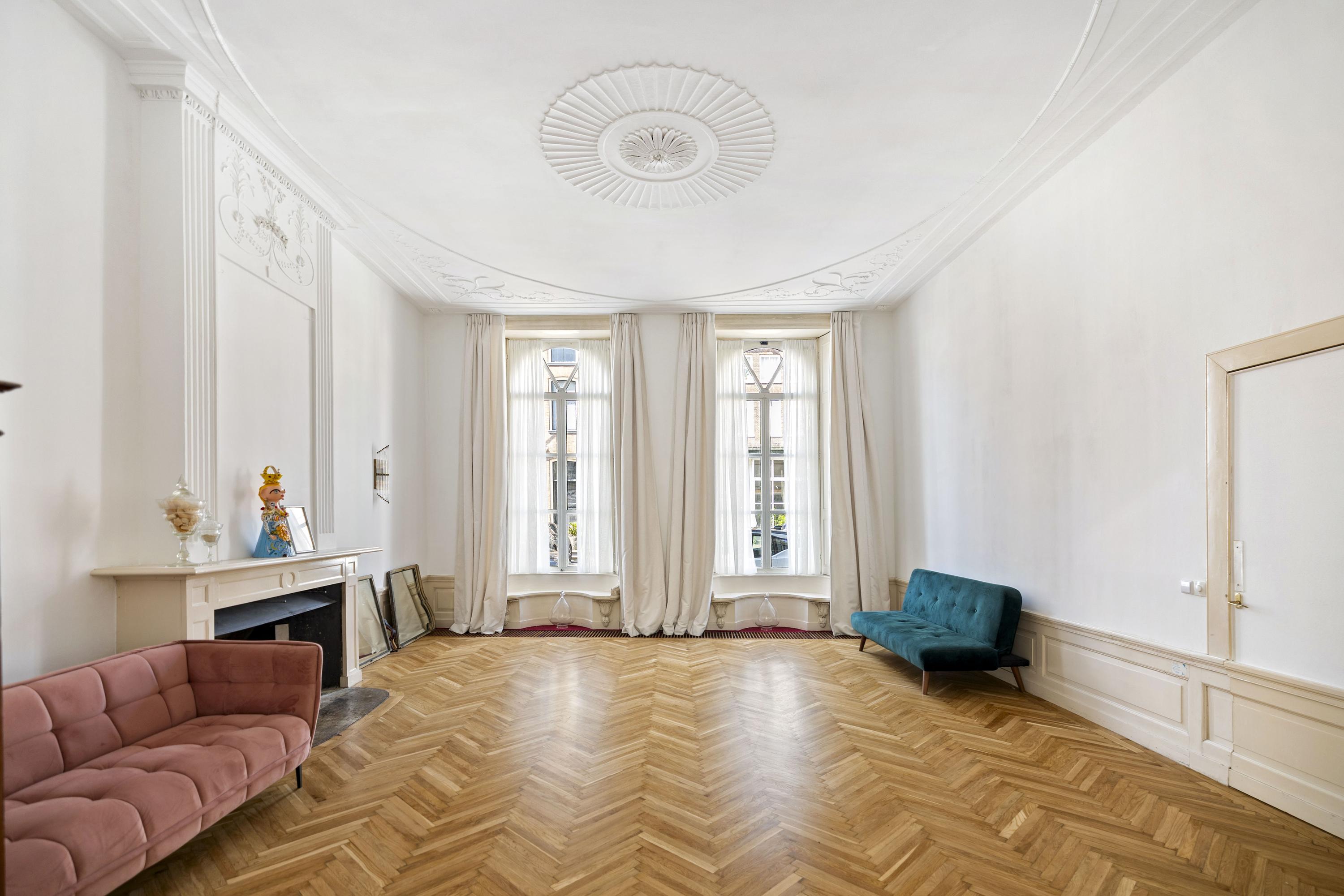 This is the kind of home you can instantly fall for — with its generous living spaces and majestic appearance, featuring beautiful details like white-plastered façades and neoclassical elements such as corner pilasters and an attic floor with distinctive oval windows. Over the past decade, the traditional louvered shutters (known as persiennes) were beautifully restored on the exterior.