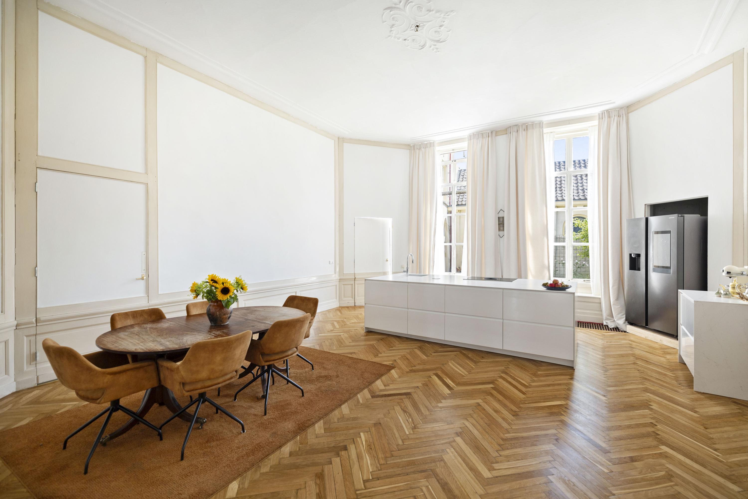 For lovers of homes with a story to tell: this eye-catching property stands proudly on the Zaadmarkt. You may recognize it from passing by, from visits to the market, or from simply wandering the charming streets of Zutphen. It’s undoubtedly a remarkable property. Does your heart skip a beat for high ceilings, floral plaster motifs, or windowsills with acanthus-leaf consoles? Are you looking for an abundance of living space for the whole family, right in the heart of the city? Then this striking and distinguished townhouse, on the corner of Bernardsteeg and Zaadmarkt, is definitely worth a visit.