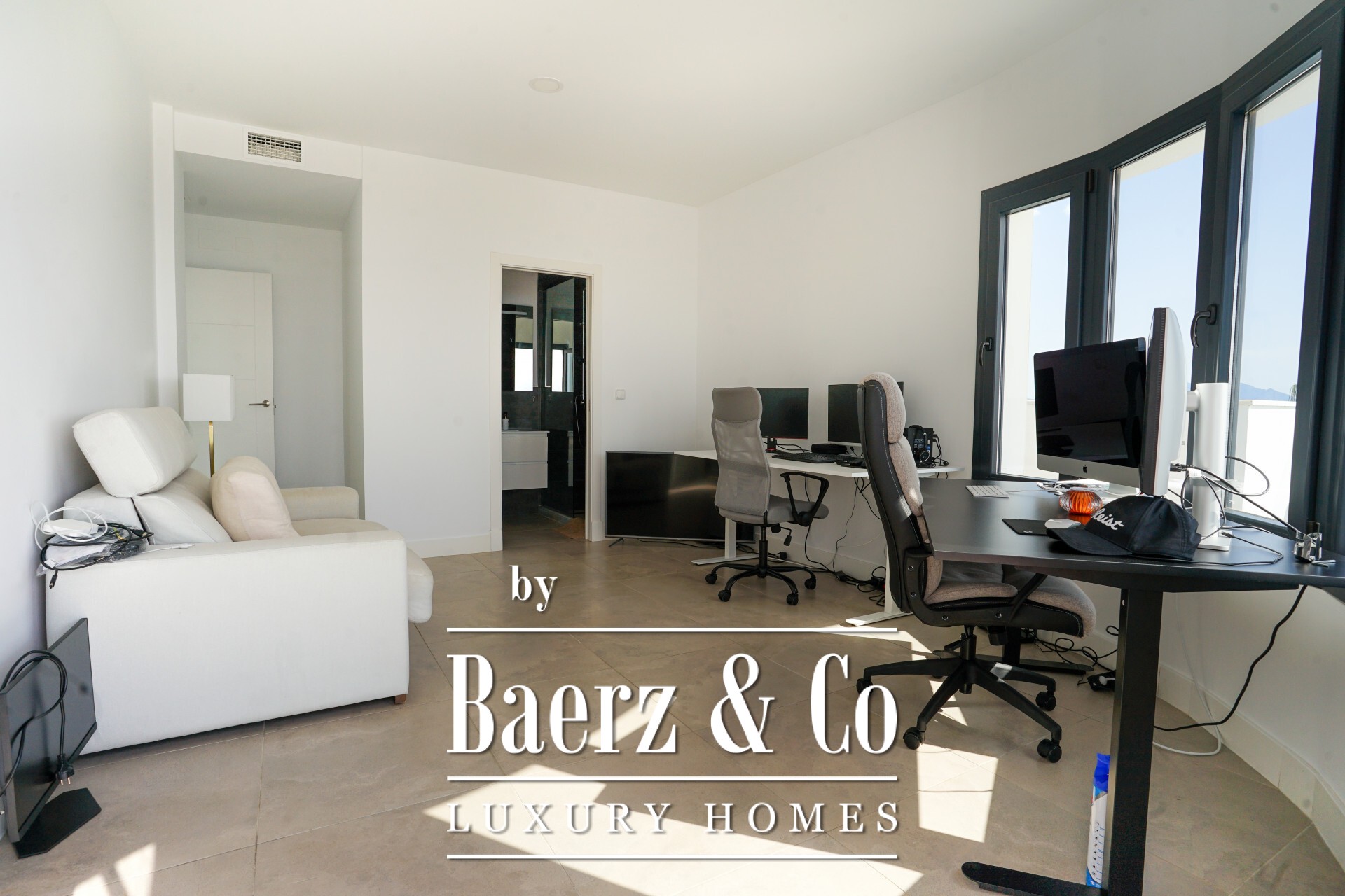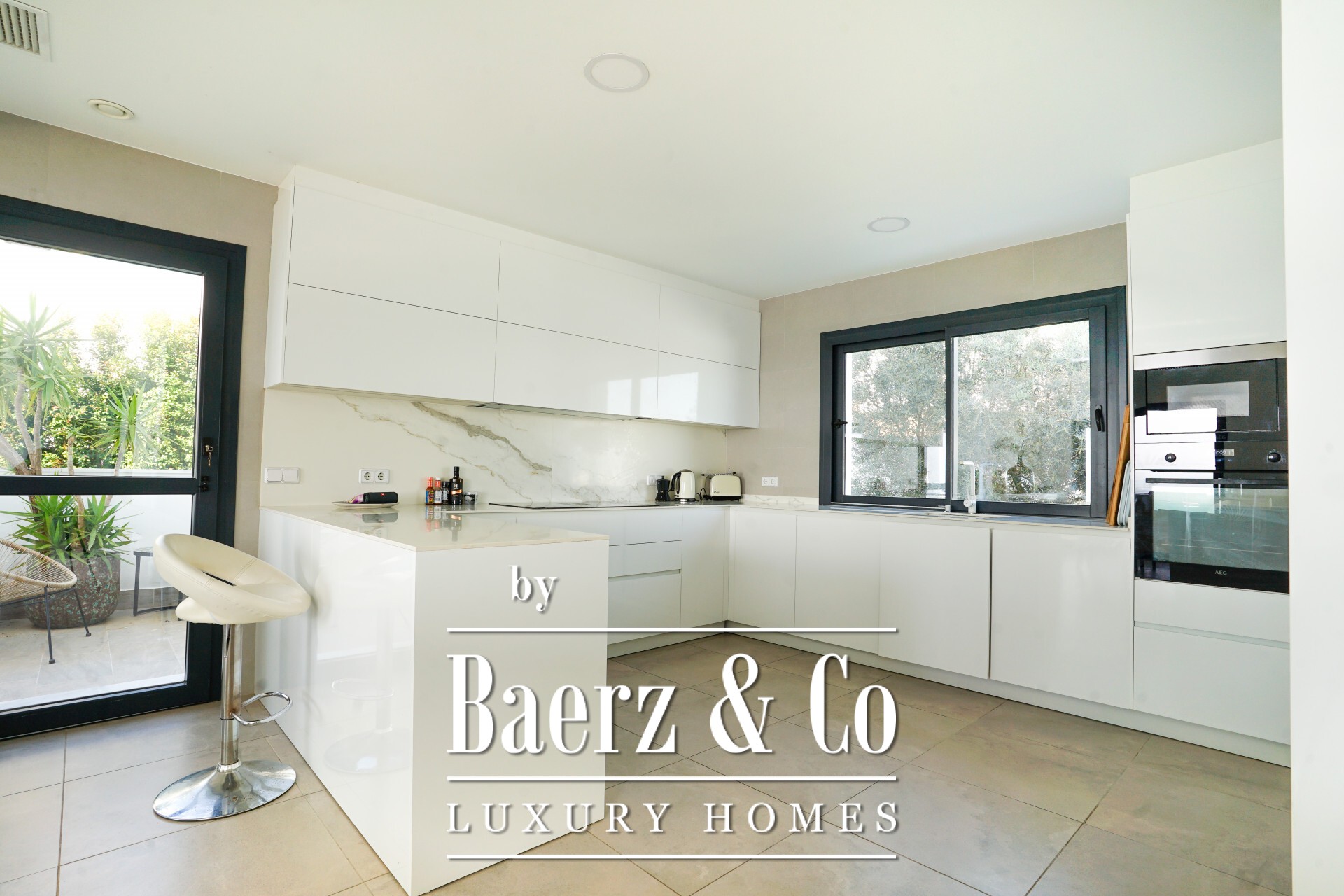 Las principales zonas de estar forman un espacio abierto donde el cristal de suelo a techo conecta un amplio salón y comedor con zonas exteriores cubiertas. La cocina, elegante y totalmente equipada con electrodomésticos de alta gama, conecta con la barbacoa exterior; además, una sala de TV independiente, gimnasio privado, baño turco y despacho potencian el bienestar diario. La propiedad cuenta con cuatro dormitorios y cinco baños, tres de ellos en suite, lo que proporciona flexibilidad e intimidad, incluido un despacho que puede convertirse en una quinta suite.