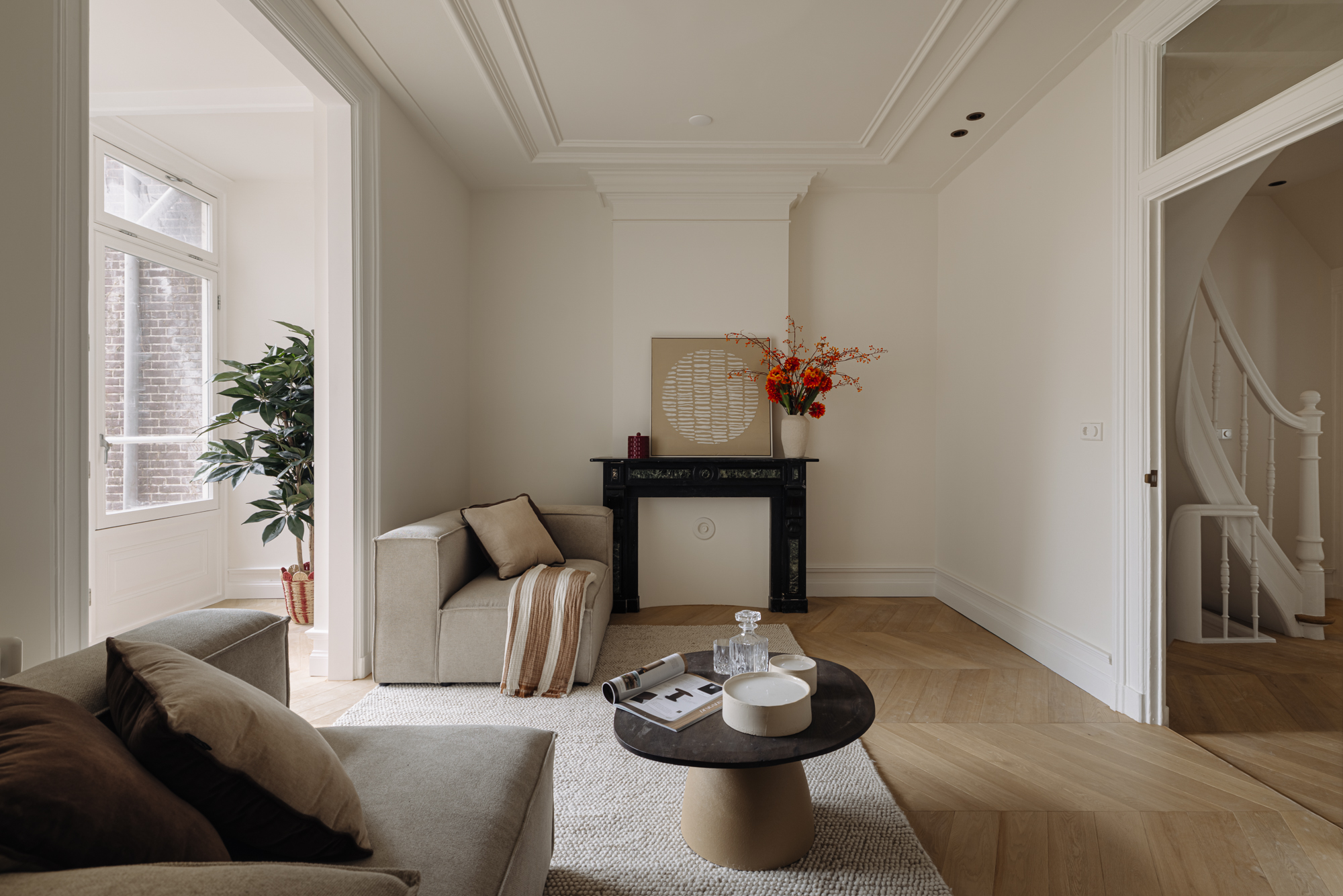 El interior combina el encanto histórico restaurado con una renovación refinada, destacando una impactante cocina-comedor acabada en roble oscuro, encimera de material compuesto, electrodomésticos Siemens StudioLine, placa Bora y grifo Quooker. La luz natural inunda las generosas zonas de estar y el comedor clásico, realzadas por altos ventanales con vistas a las elegantes calles de Ámsterdam. La planta sótano constituye una tranquila zona de descanso, con baños privados en suite y acceso al jardín.