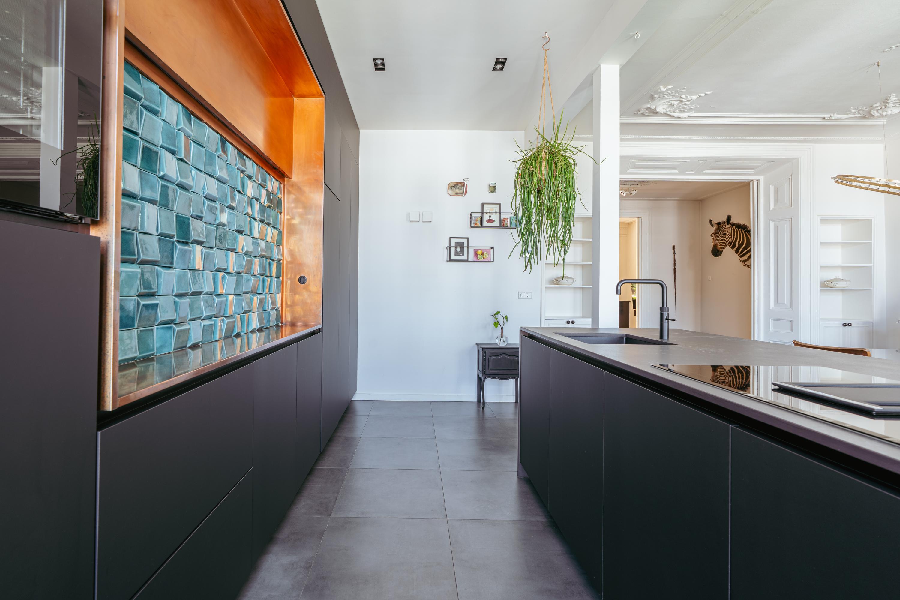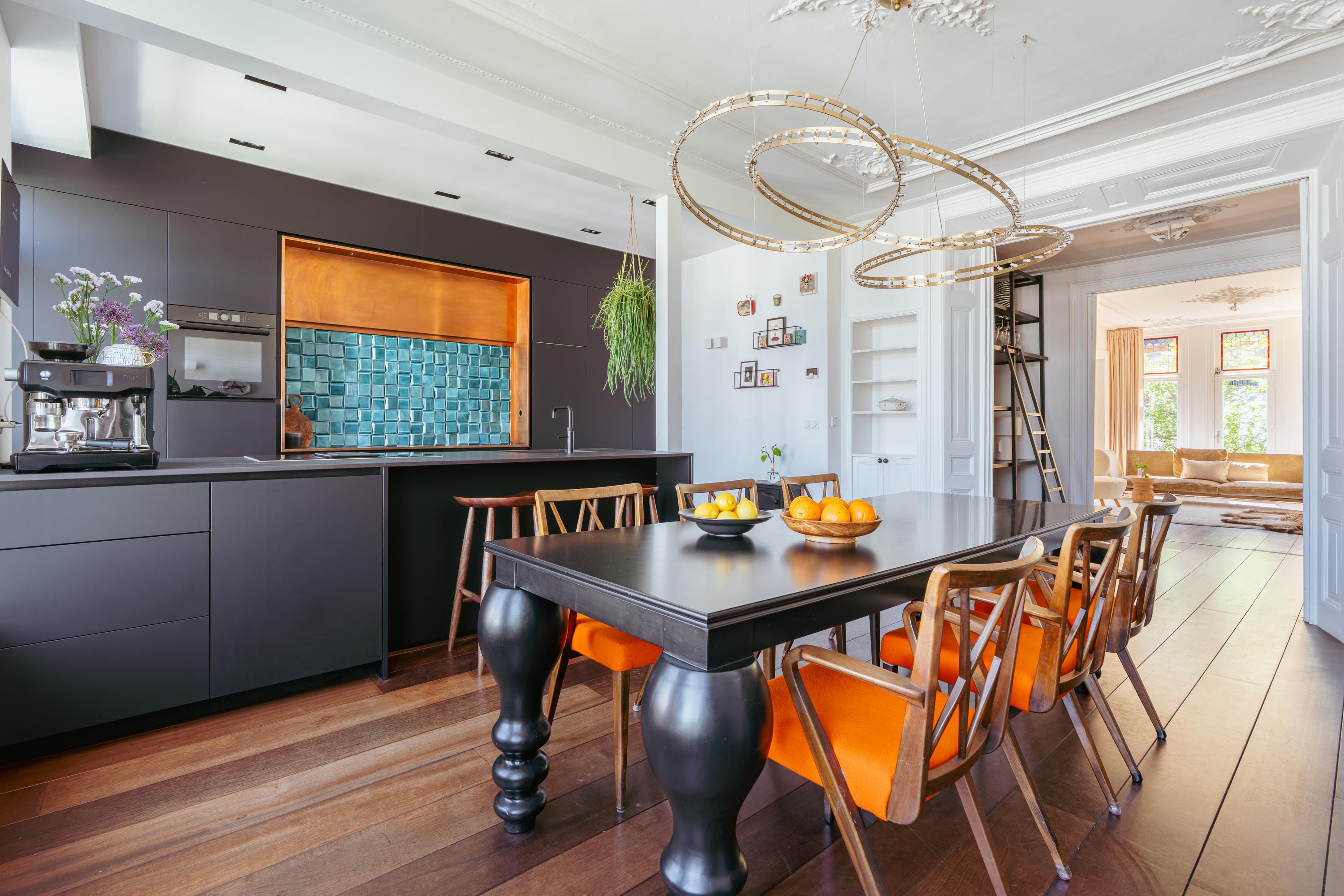 Al ingresar, una escalera histórica conduce a una entrada privada en la tercera planta. El espacio principal de estar se abre a la luz natural, con suelos de madera noble, una estufa de leña y una chimenea original de piedra. El mobiliario hecho a medida, una biblioteca intermedia con vinoteca climatizada y puertas correderas definen la transición entre el salón y el comedor. La parte posterior alberga una cocina contemporánea con una gran isla revestida en Dekton y cobre, equipada con electrodomésticos de alta gama, como placa de inducción con extractor integrado, horno de vapor y grifo Quooker con agua con gas. La zona de comedor de 35 m² resulta perfecta para reuniones inolvidables.