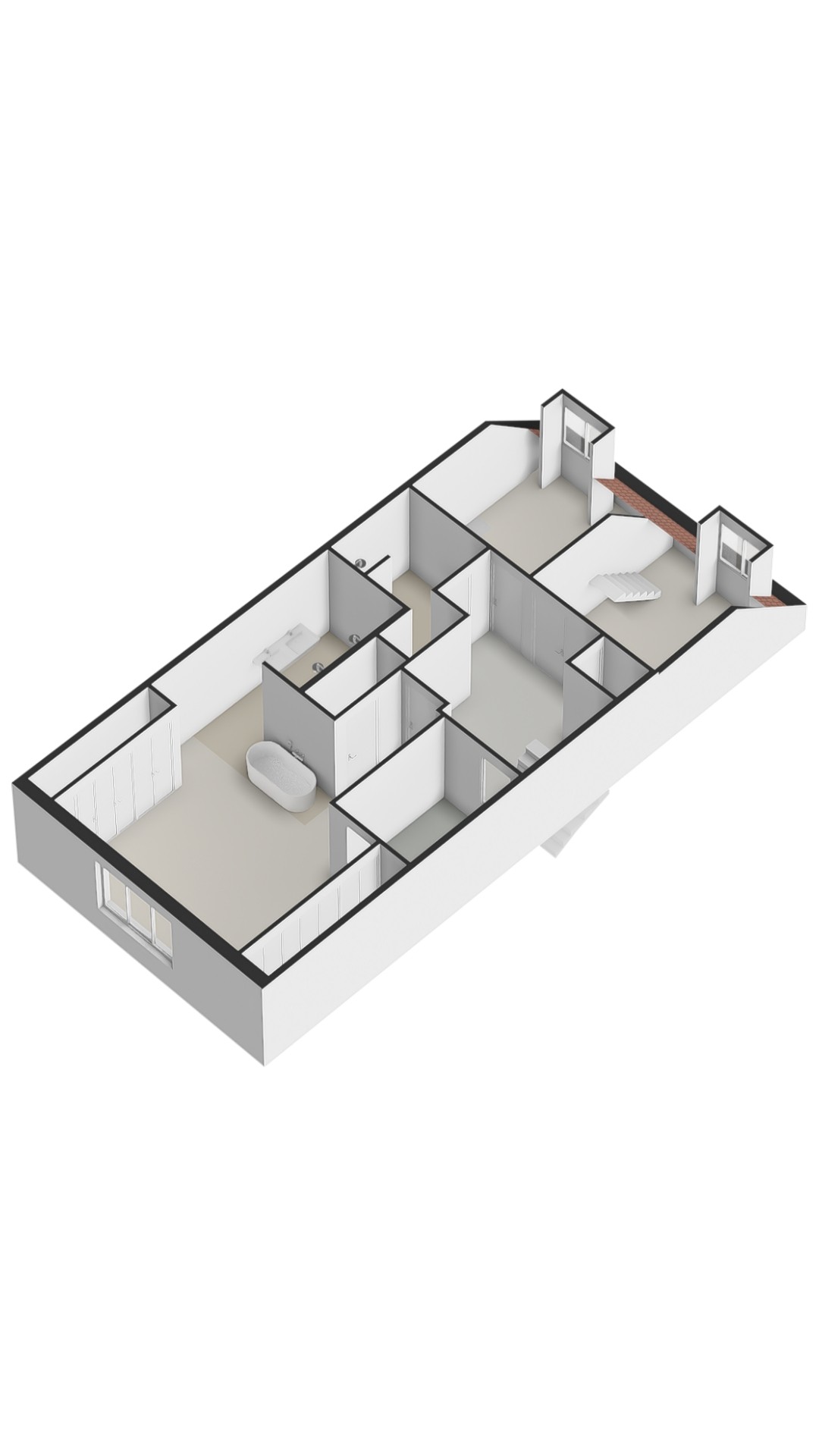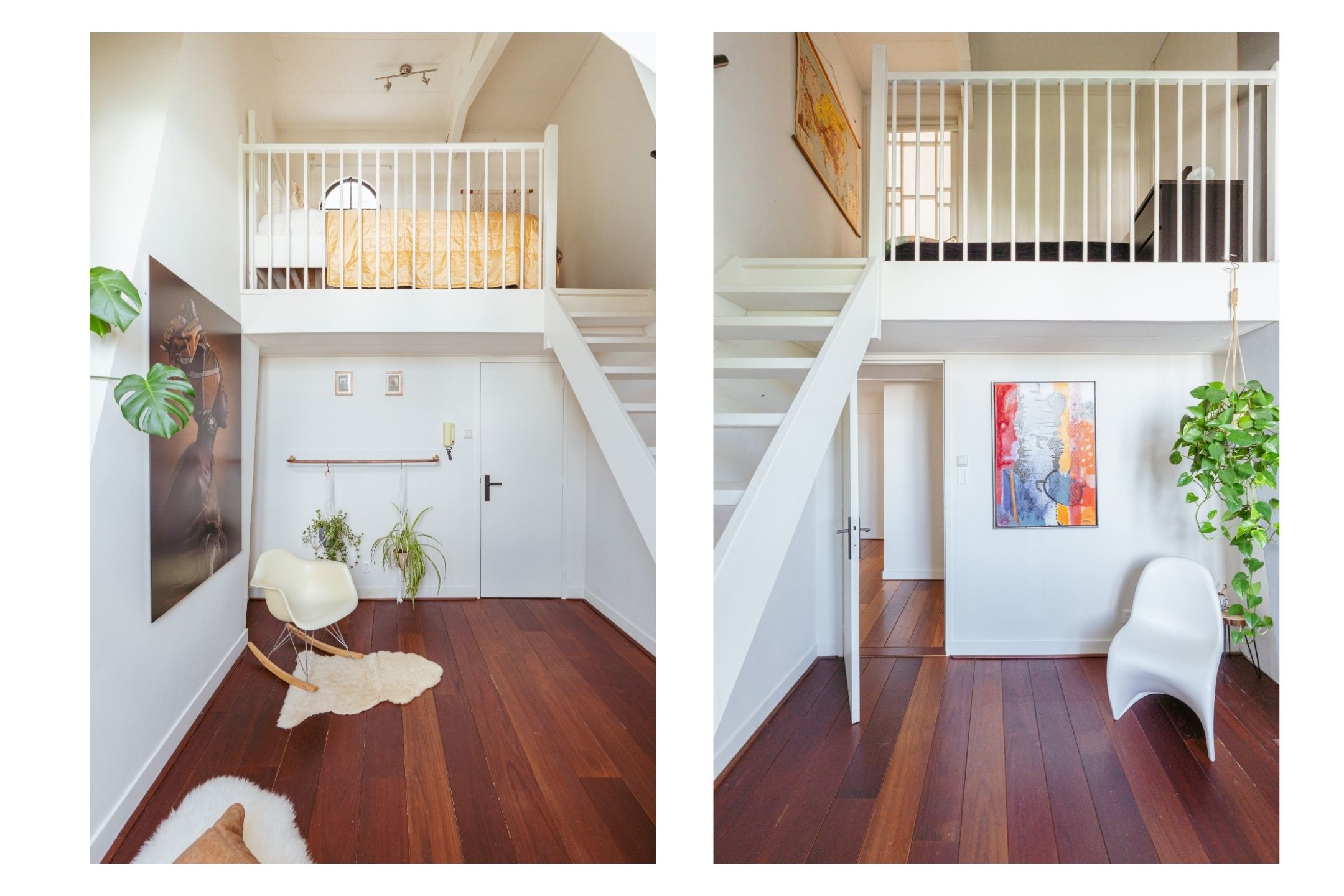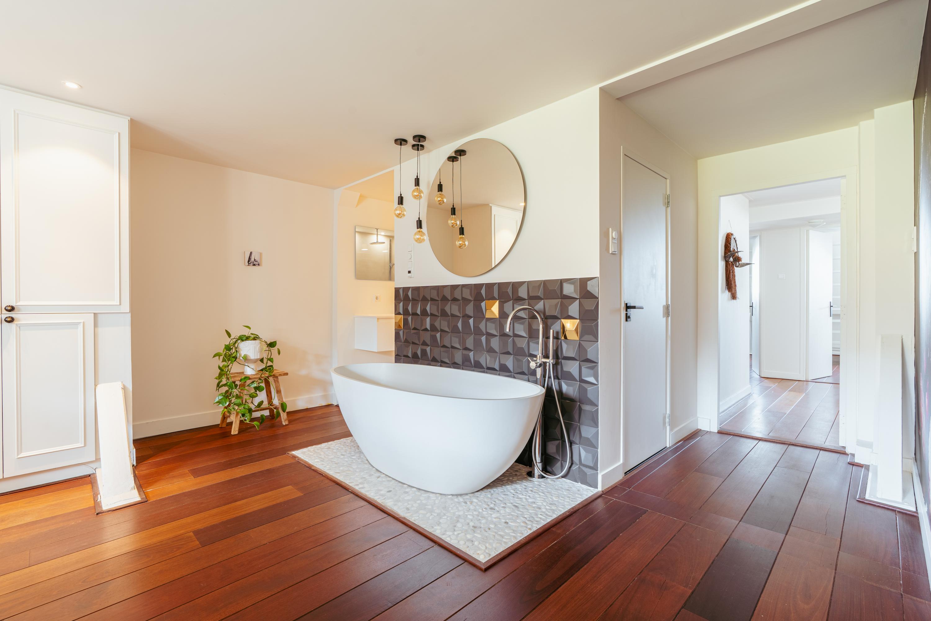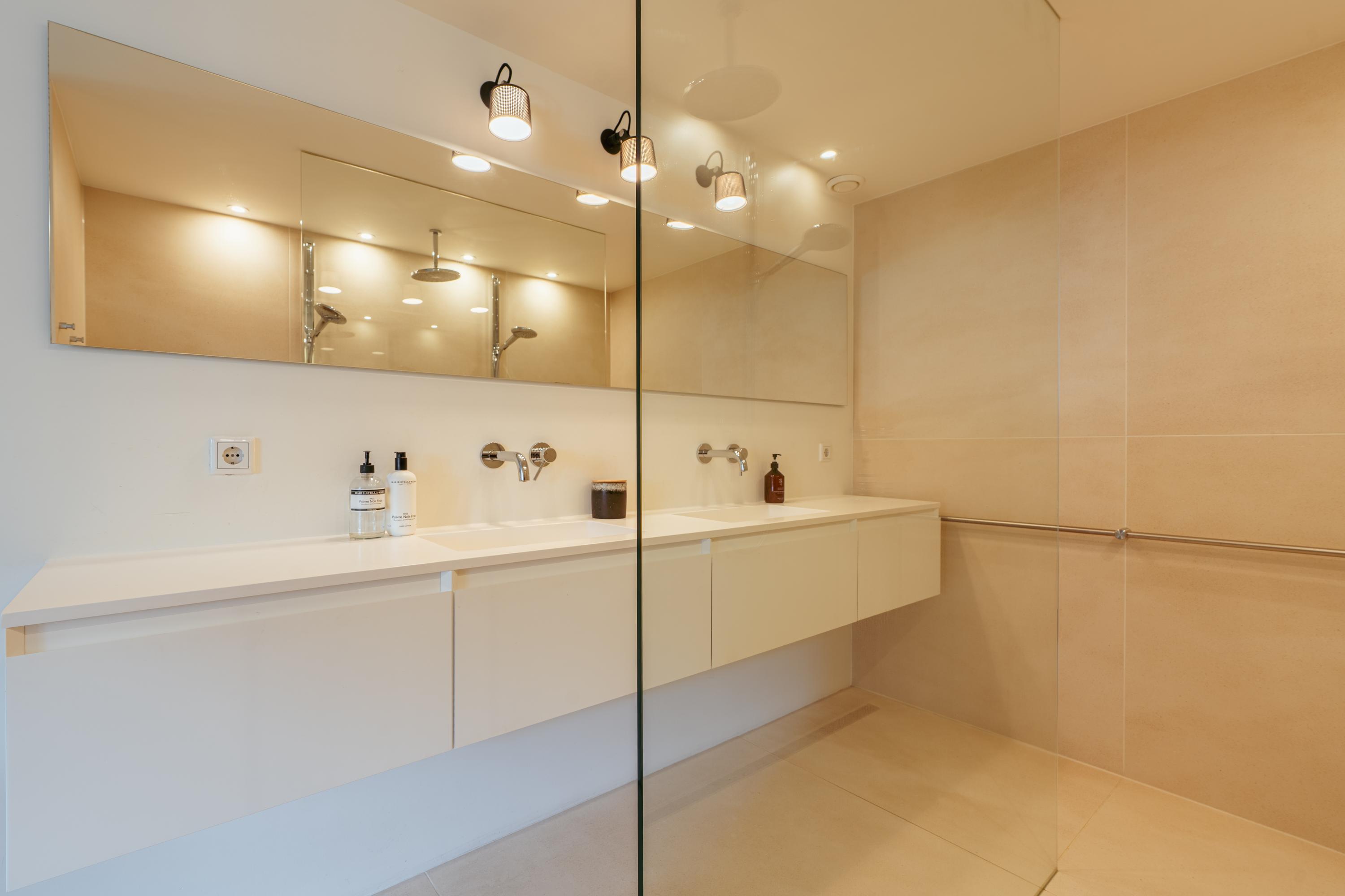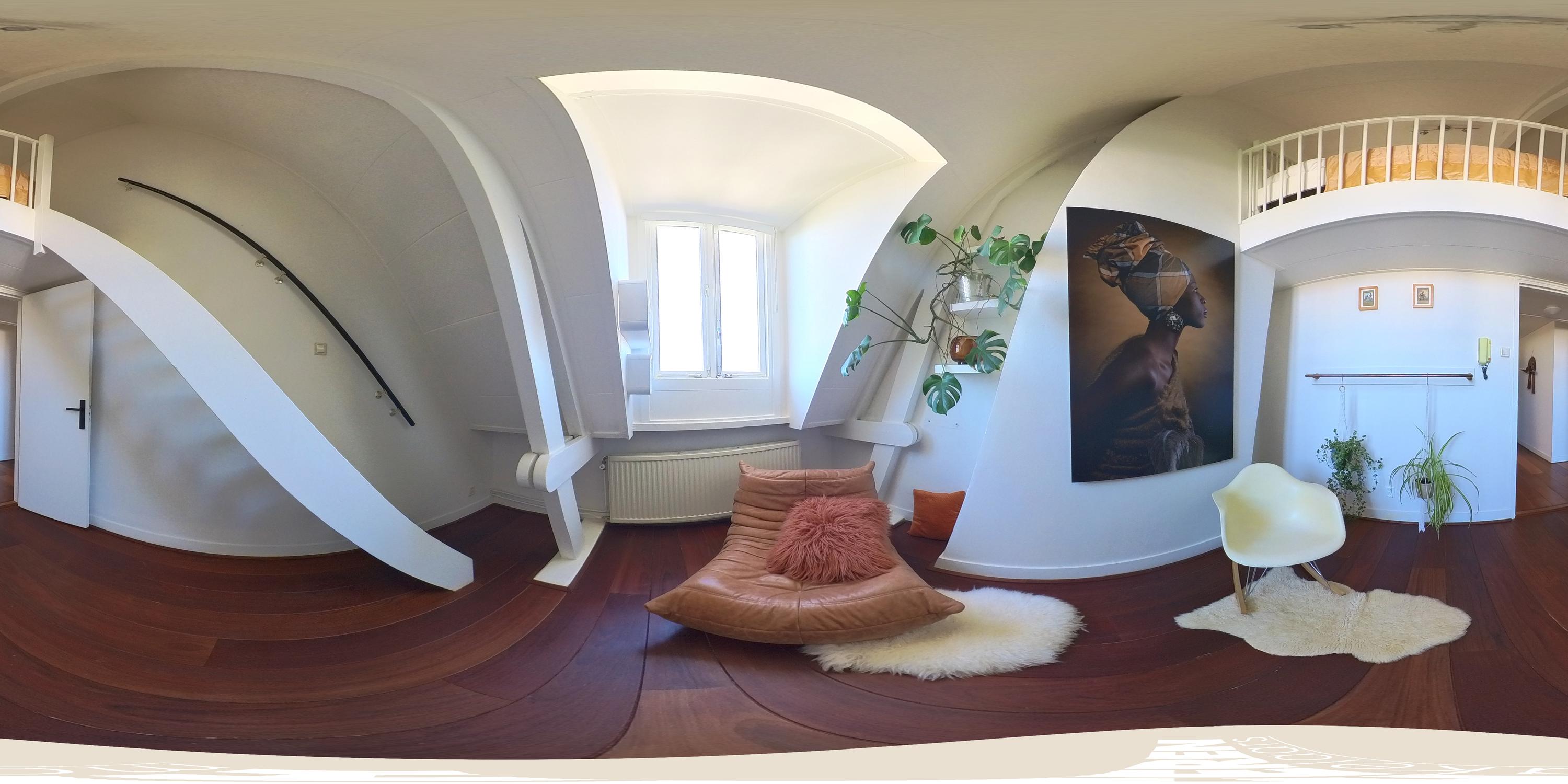 La cuarta planta alberga tres dormitorios, incluida una suite principal con vestidor, bañera exenta y duchas dobles de efecto lluvia, así como dos dormitorios adicionales con niveles de entreplanta. Un segundo baño cuenta con ducha Jee-O a ras de suelo y una sala de lavandería independiente. En la última planta, vigas originales enmarcan un espacio polivalente ideal como área de música o estudio, junto a un cuarto dormitorio y zona de almacenaje. Una escalera adicional conduce a una azotea con vistas panorámicas que alcanzan el Teatro Carré y el Rijksmuseum.