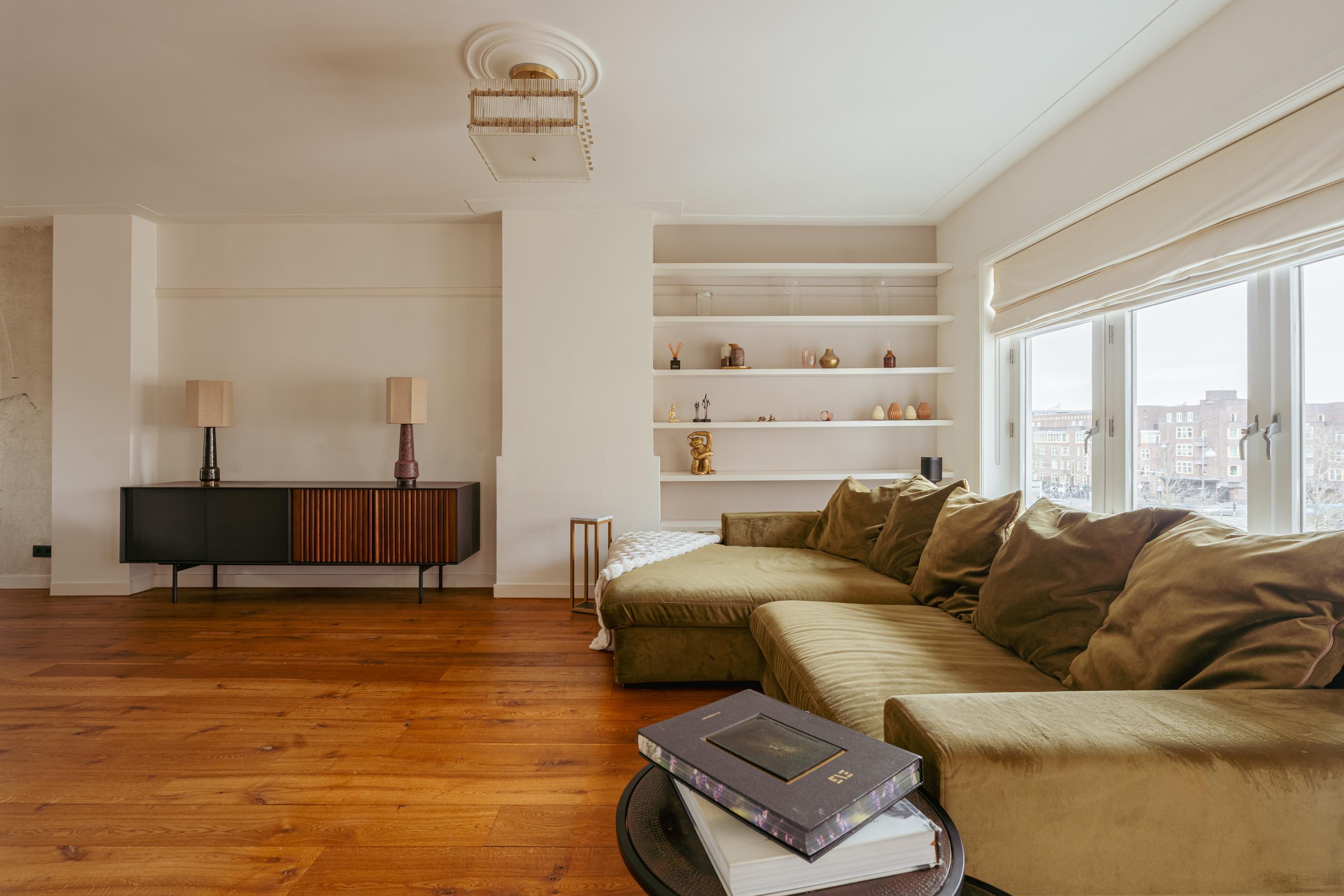 Apartment Amsterdam South presenta un sofisticado dúplex superior de aproximadamente 110 m², donde la claridad espacial y la luz natural marcan el tono de una vida urbana contemporánea. La propiedad cuenta con una sala de estar en forma de L que se abre a un balcón francés con vistas a la vibrante vida de Stadionplein, impregnando el corazón del hogar de dinamismo citadino.