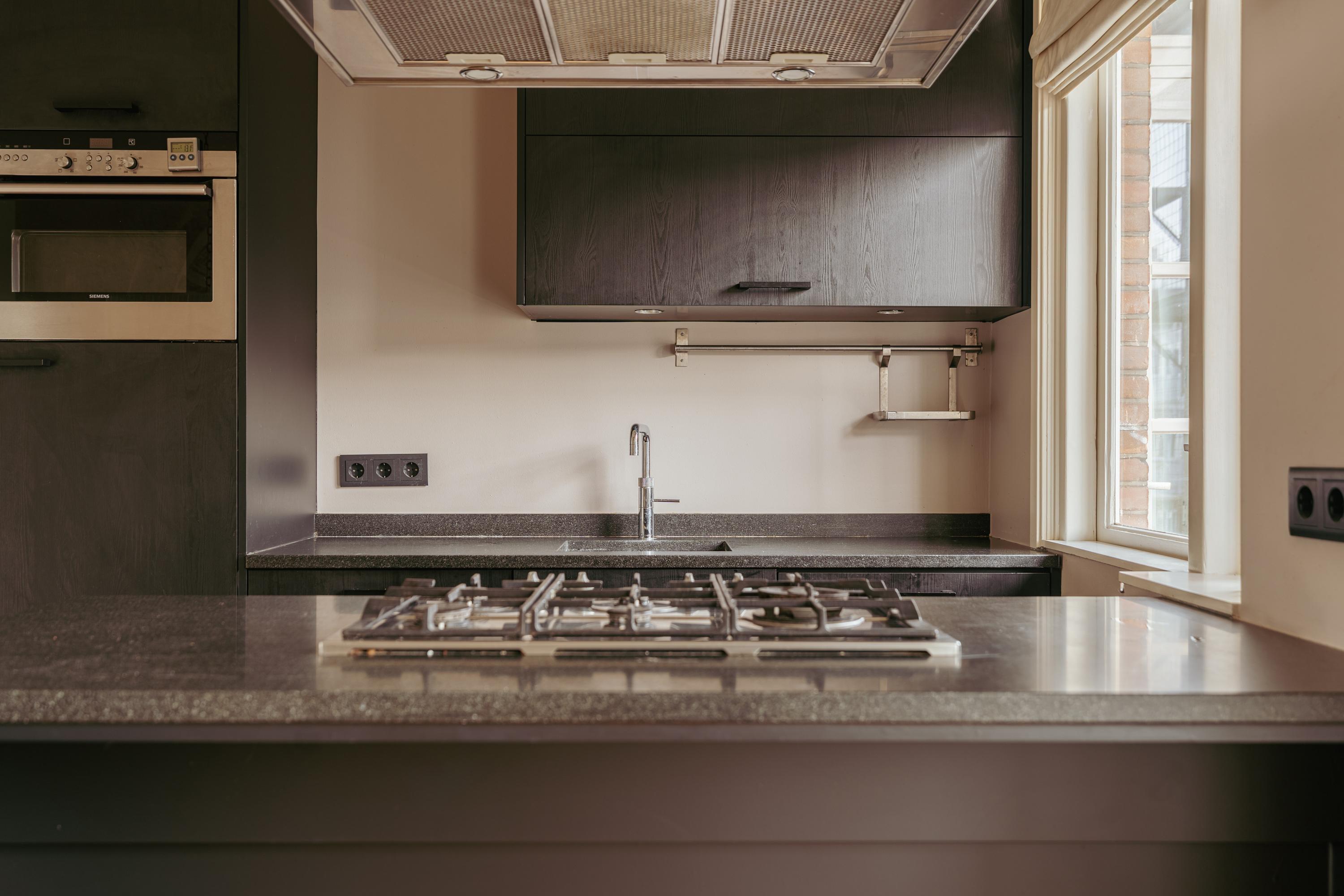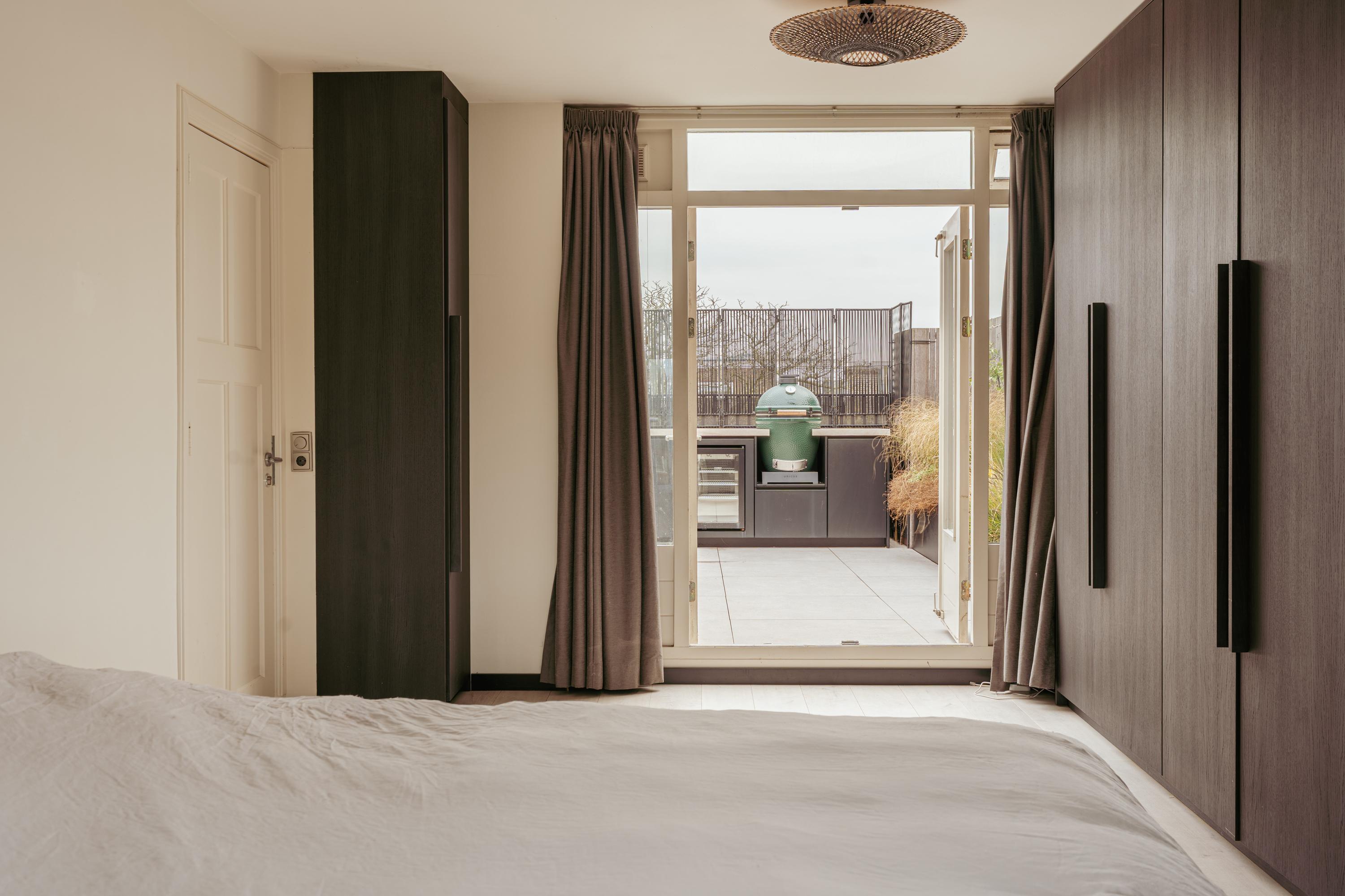 En la tranquila parte trasera, la cocina-comedor está cuidadosamente equipada con isla de cocción, electrodomésticos integrados Siemens y abundante luz natural a través de puertas francesas que conectan con un segundo balcón. Dos dormitorios ofrecen flexibilidad para descansar, trabajar o la vida familiar. La suite principal incluye vestidor y acceso directo a la exclusiva terraza en la azotea de 33 m² diseñada por Erik van Gelder. Iluminación integrada, sistema de riego, cocina exterior y barbacoa Green Egg conforman un raro refugio privado para celebraciones al aire libre sobre la ciudad.