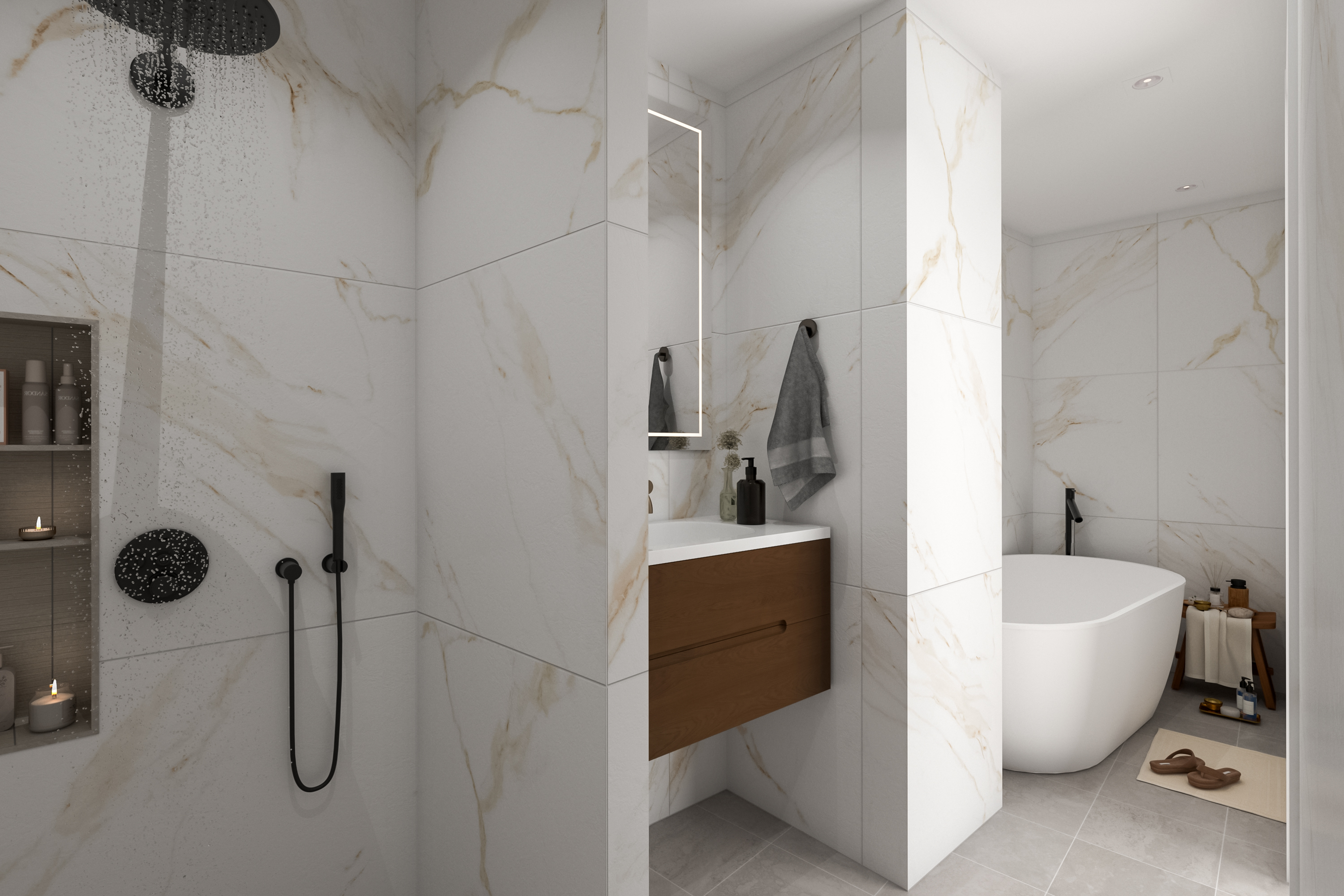 With a comfortable ceiling height of approximately 2.68 metres, the basement is a full-fledged living level. It includes two bedrooms, a separate toilet, a spacious bathroom, a study area and a utility room with connections for a washer and dryer. This level also houses the technical installations.