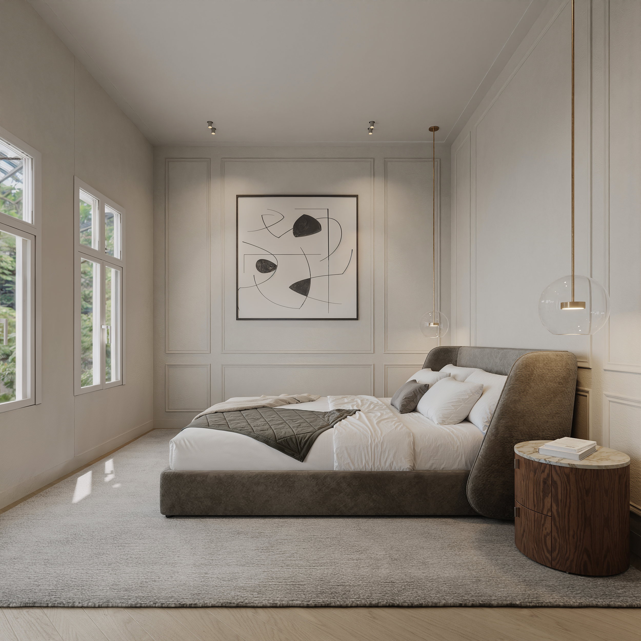 La planta sótano alberga tres dormitorios y dos sofisticados cuartos de baño, ambos con ducha a ras de suelo y lavabo doble; uno de ellos también con bañera. Un lavadero independiente y áreas de almacenaje diseñadas al detalle reflejan la funcionalidad del proyecto. Las dos plantas superiores del anexo cuentan con un baño y un dormitorio adicionales, facilitando la vida familiar y el entretenimiento.