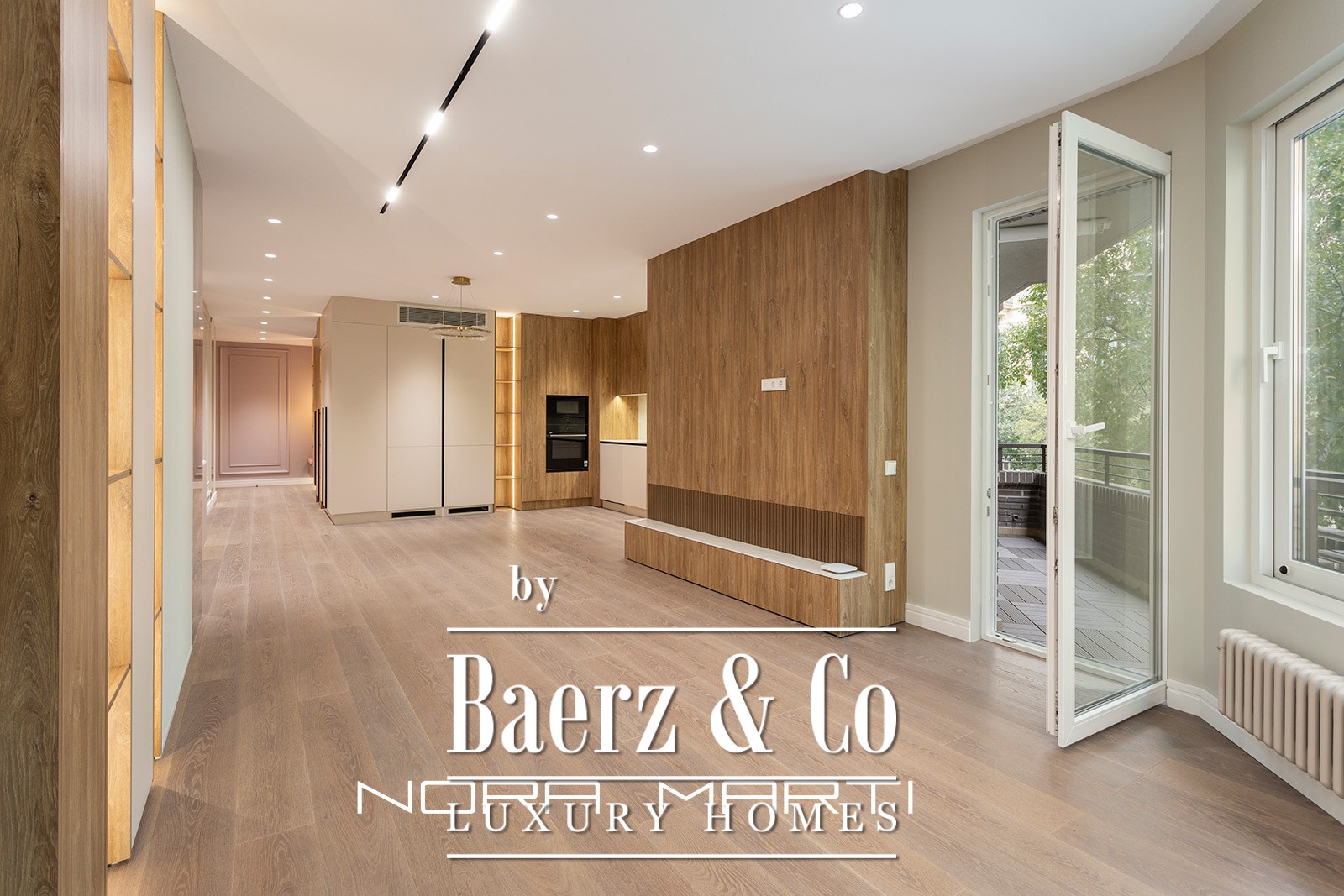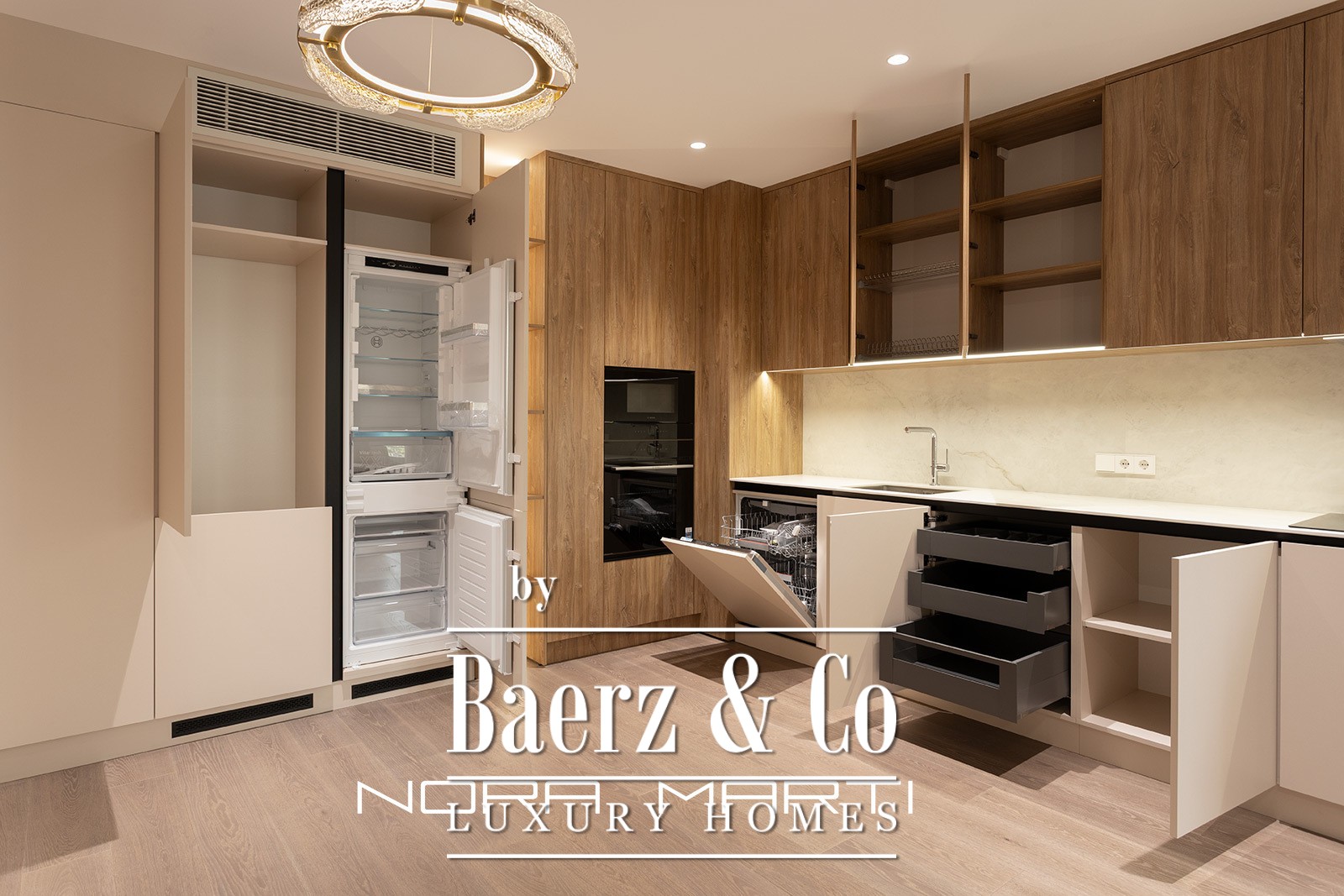 Un generoso espacio diáfano de salón, comedor y cocina de aproximadamente 51 m² articula la vivienda y se conecta de forma fluida con una de las dos terrazas, que suman unos 12 m². La cocina resulta funcional y elegante, equipada con electrodomésticos Bosch y almacenamiento personalizado. Tres dormitorios dobles ofrecen refugios privados y tranquilos, incluyendo una suite principal con vestidor, baño privado y acceso directo a la terraza. Los otros dos dormitorios dobles comparten un baño completo, complementados con un discreto aseo de cortesía.