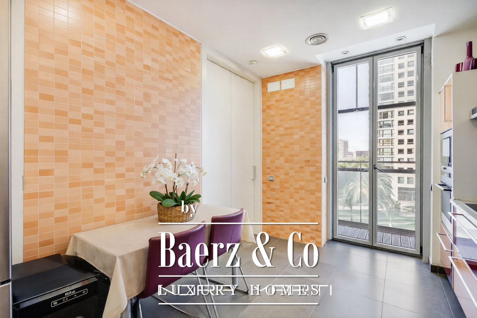 El apartamento en Barcelona con terraza transmite una sensación de serenidad y refinamiento discreto al borde costero de la ciudad. Situado en Diagonal Mar, dentro de un enclave residencial privado reconocido por sus cuidados jardines comunitarios, piscina, gimnasio y pistas de pádel, la residencia ofrece servicios de conserjería y seguridad las 24 horas con absoluta discreción.
