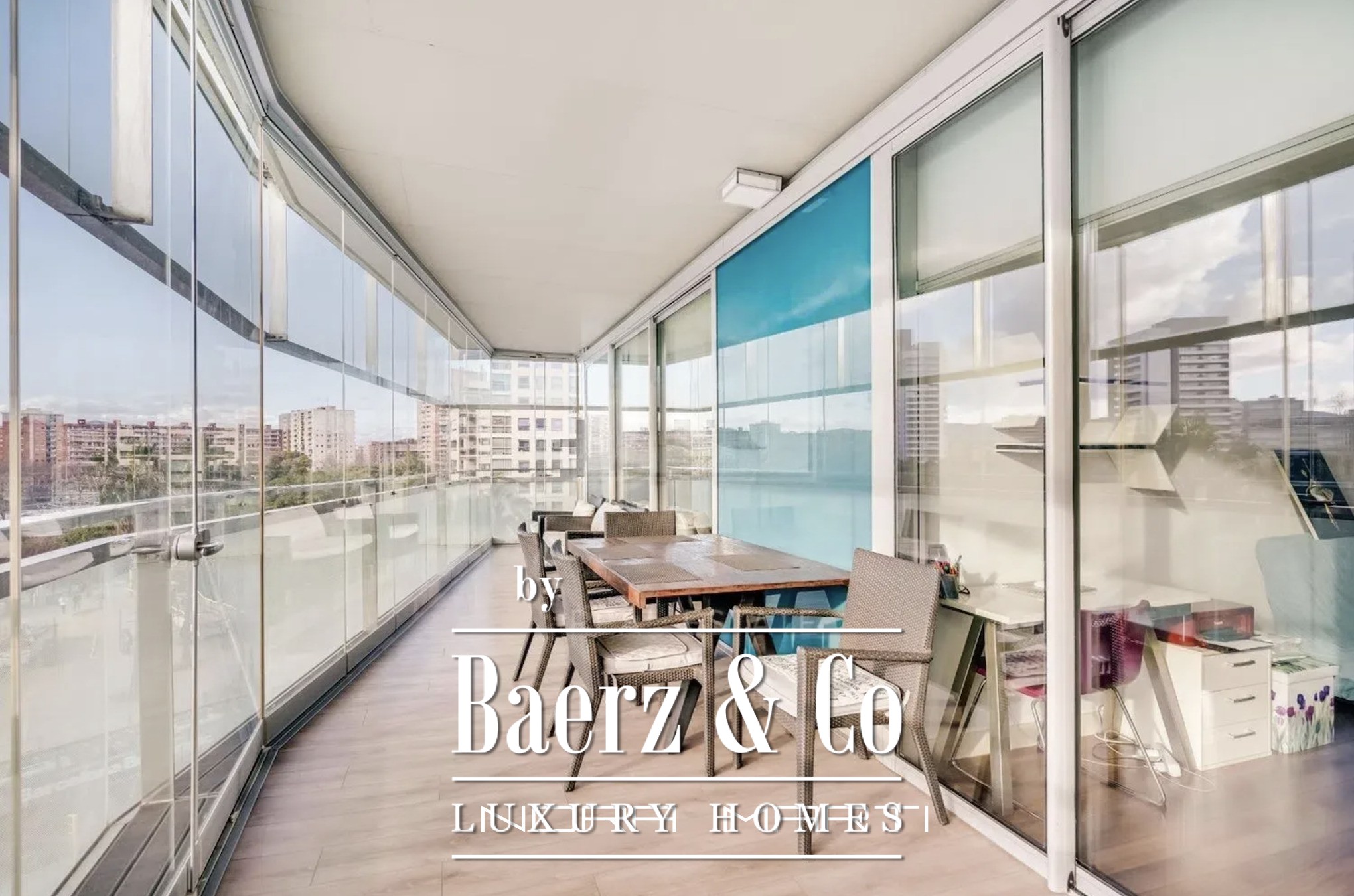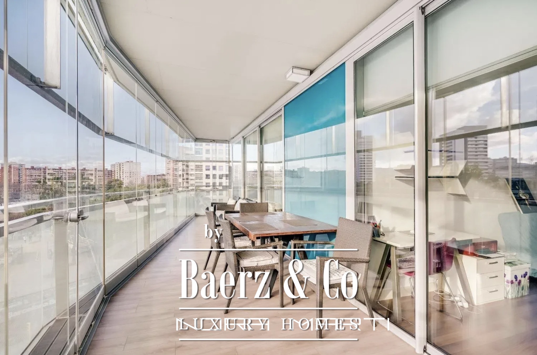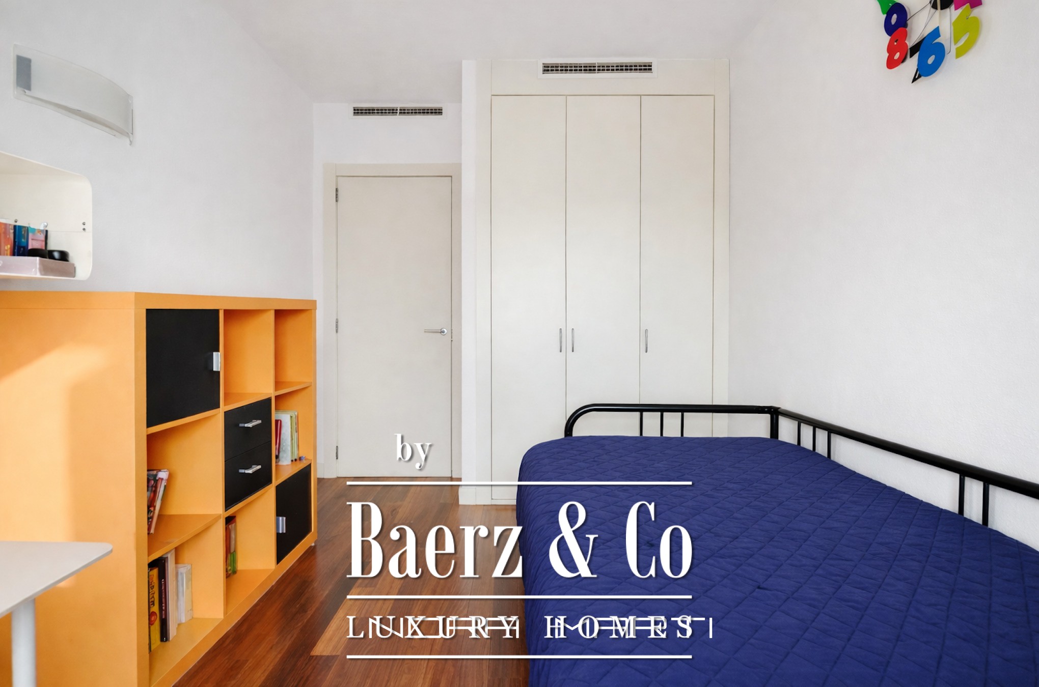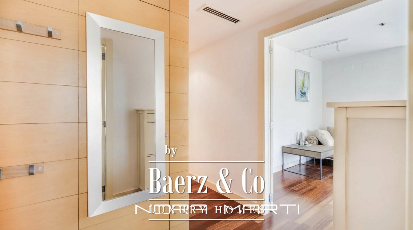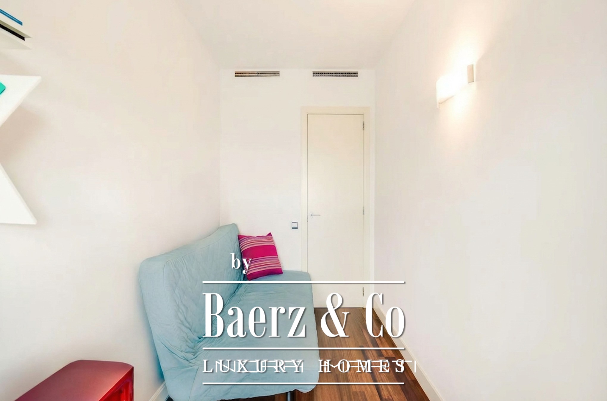 La climatización y calefacción por conductos, puertas y ventanas de doble acristalamiento y una entrada reforzada garantizan confort y tranquilidad. Las vistas desde la terraza abarcan los tejados urbanos y el mar, enmarcando discretamente la vida cotidiana. Con plaza de aparcamiento y trastero propios dentro del edificio, y acceso privilegiado a los servicios, este apartamento en Barcelona armoniza seguridad, diseño y luz.