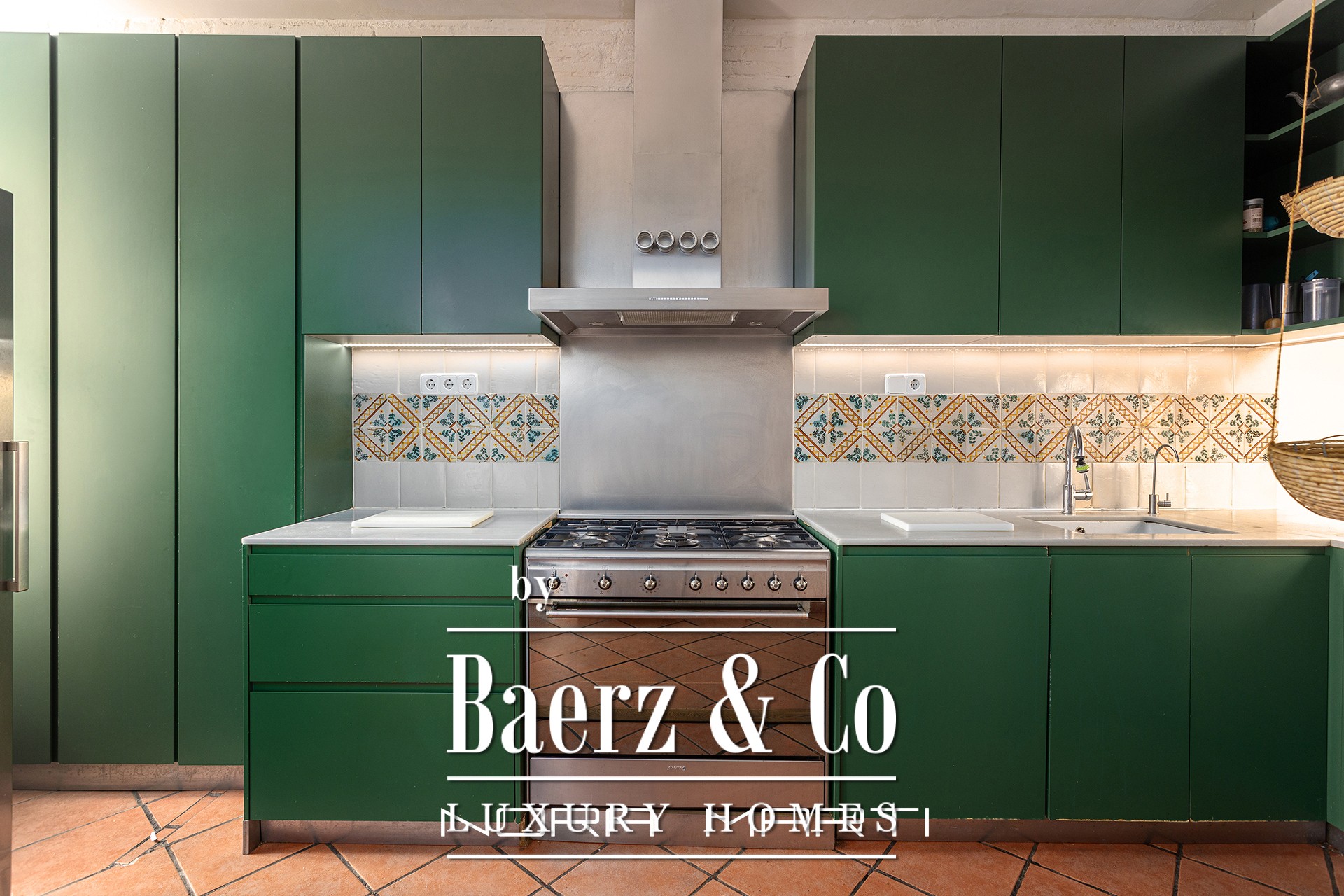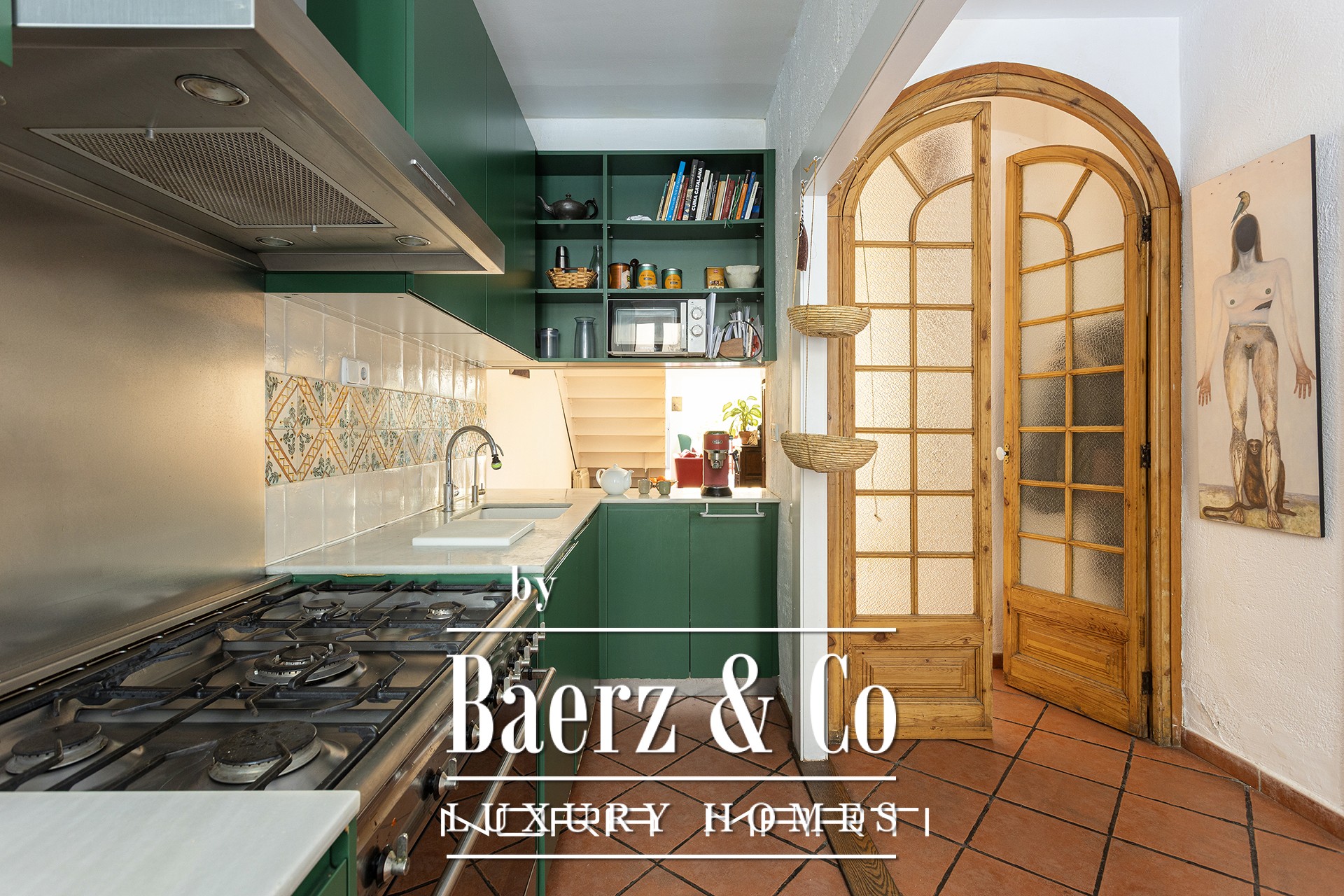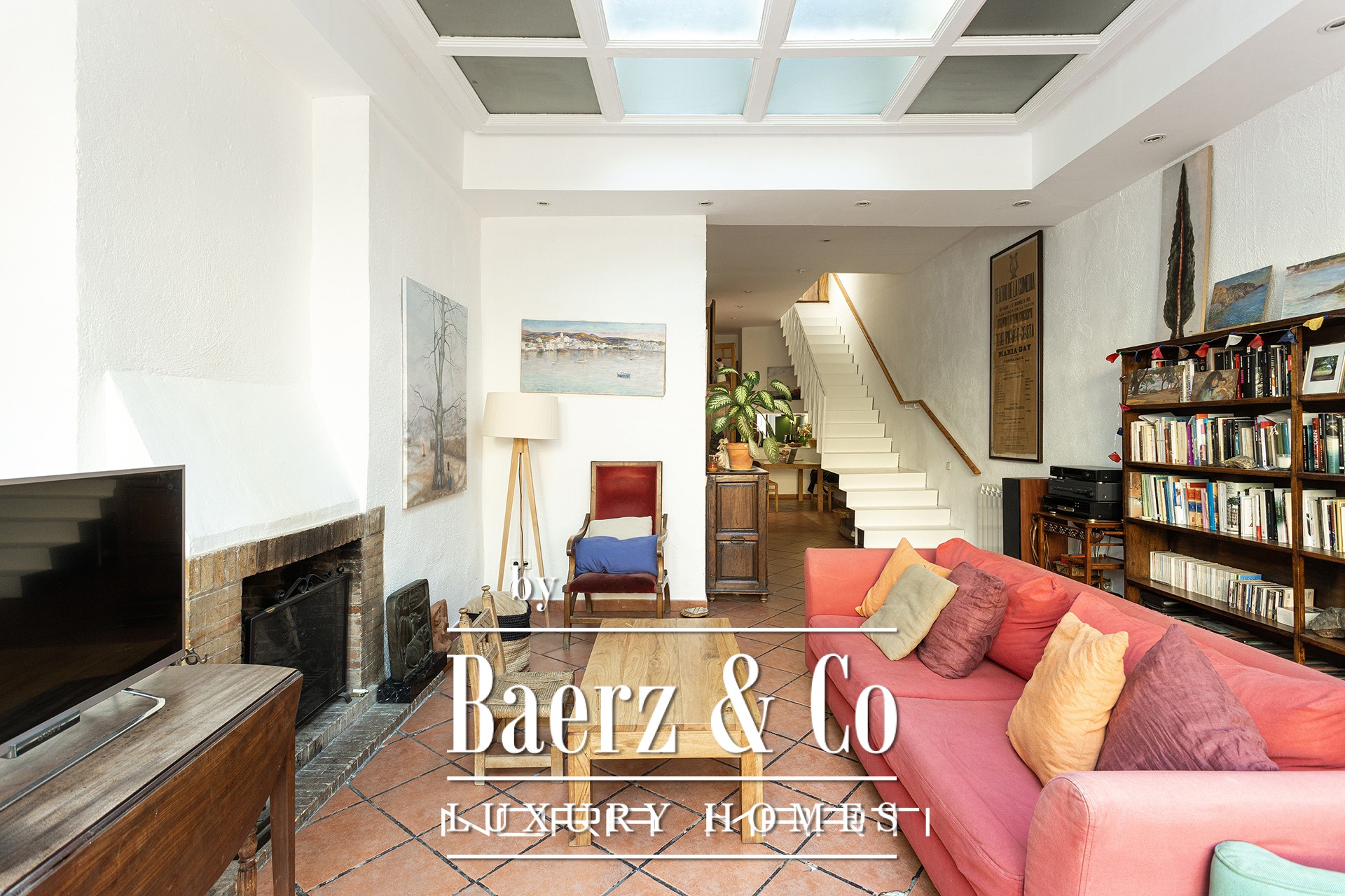 En el interior, los detalles originales y los materiales de época aportan autenticidad y confort. La cocina de concepto abierto, con acabados en mármol, se integra perfectamente con una zona de comedor diseñada para reuniones discretas. El salón, presidido por una chimenea elegante y bañado en luz natural, se abre a un jardín privado y reservado, creando una conexión poco frecuente con la naturaleza dentro de la ciudad.
