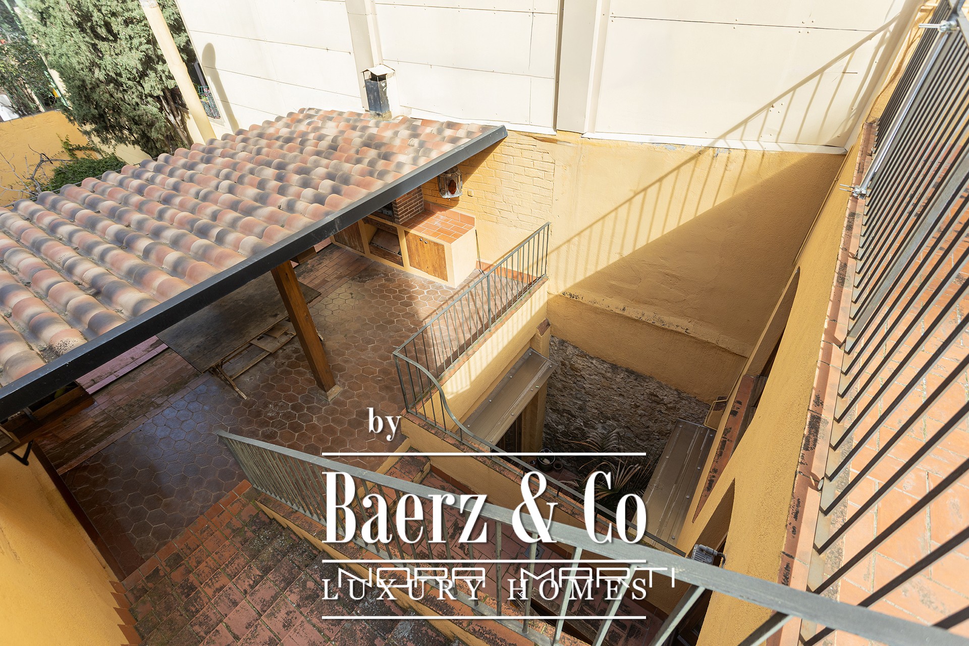 Las cuatro habitaciones, incluida una espaciosa suite principal con baño privado y ducha, están distribuidas para brindar privacidad y flexibilidad. Un patio interior central, luminoso y apacible, constituye el corazón del hogar. La planta superior, con su versátil distribuidor, conduce a más dormitorios y a una terraza con zona de barbacoa; una escalera exterior conecta con la azotea, ofreciendo un retiro adicional bajo el cielo de Barcelona.