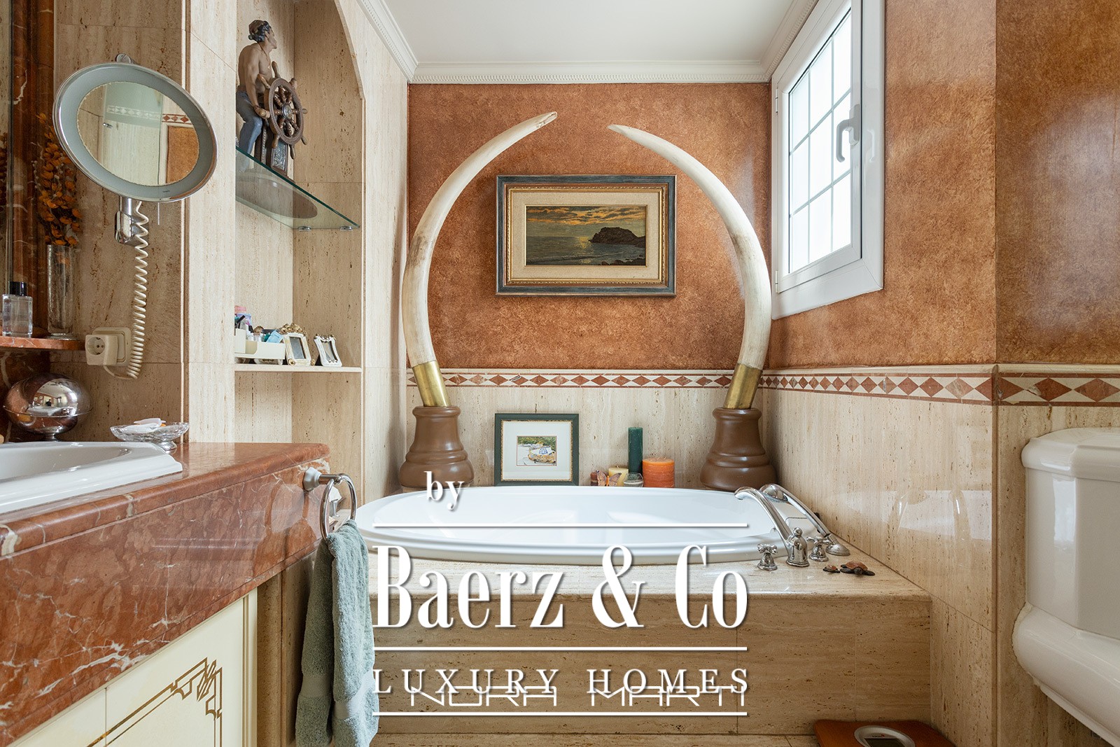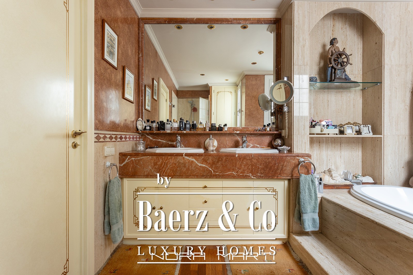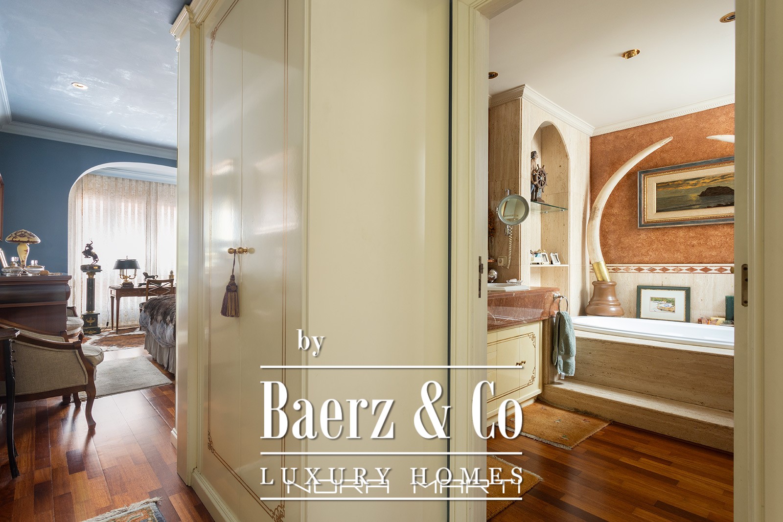 It has underfloor heating and air conditioning in all rooms, ensuring year-round comfort. The suite overlooks a quiet interior courtyard, perfect for relaxing without noise.