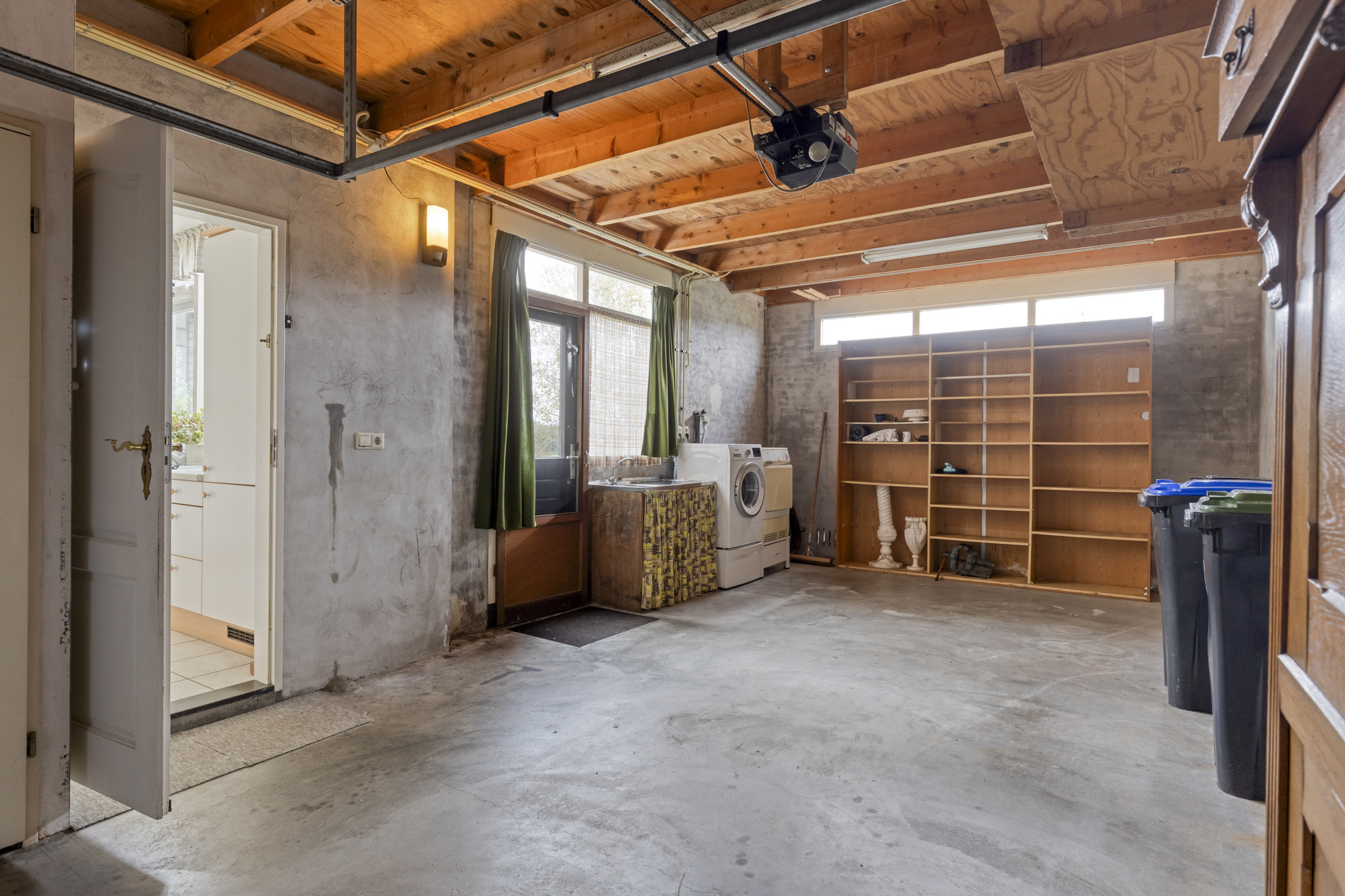 From the kitchen, you have access to the integrated garage, which includes connections for the washing machine and dryer as well as the fuse box. The garage also provides access to the backyard.