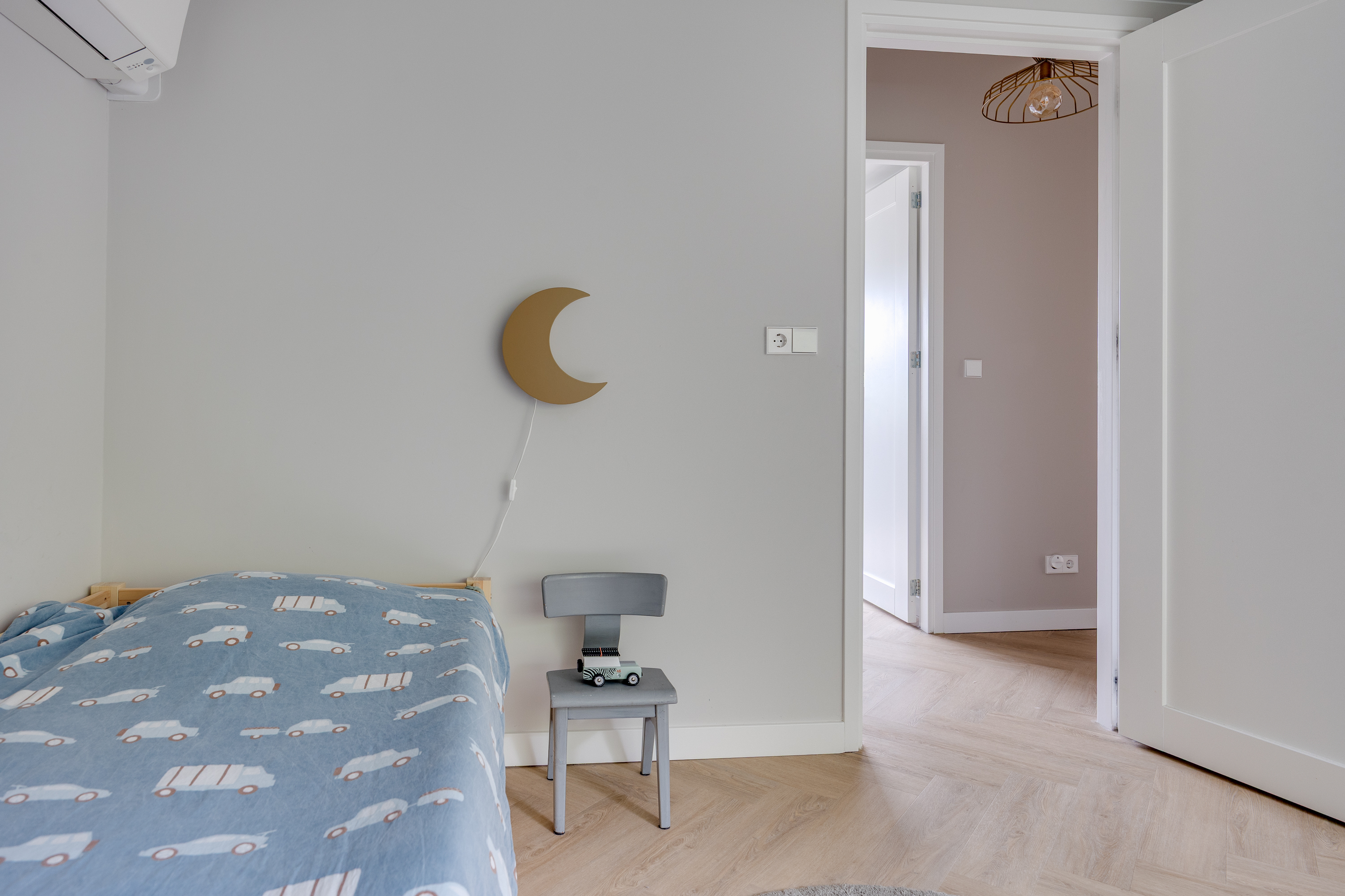 First floor layout: The landing leads to four well-designed bedrooms (all with air conditioning), two bathrooms, and a separate toilet. Thanks to the dormer windows, the floor is pleasantly light and spacious.