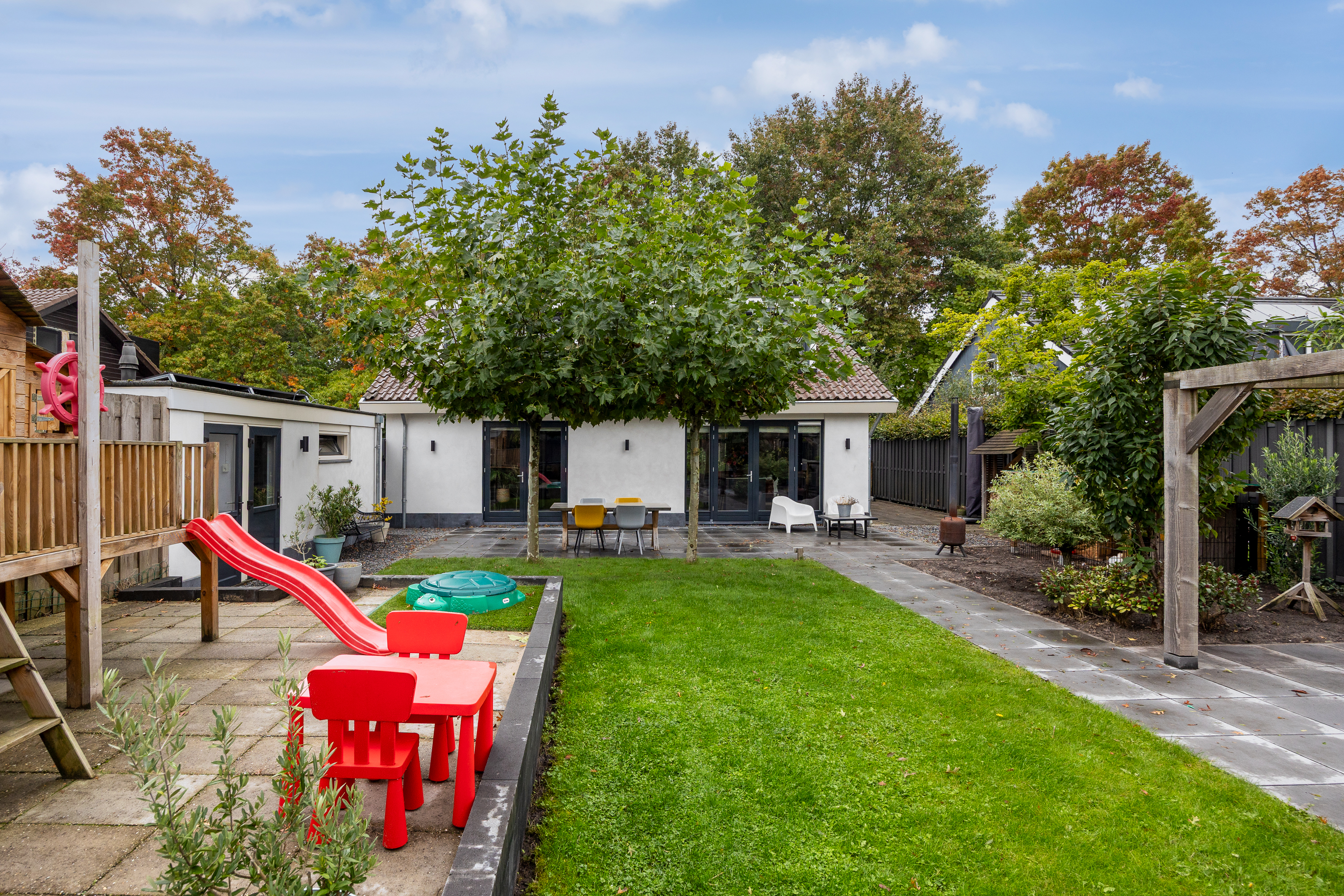 This stylish detached villa is located on a quiet, child-friendly street in Breukelen, combining the best of both worlds: peace and space in a green environment and the bustling village center just a few minutes away. Schools (both primary and secondary), sports facilities, and the train station are within easy reach. Thanks to the excellent transport links to Amsterdam and Utrecht, the location is also particularly convenient for commuters.