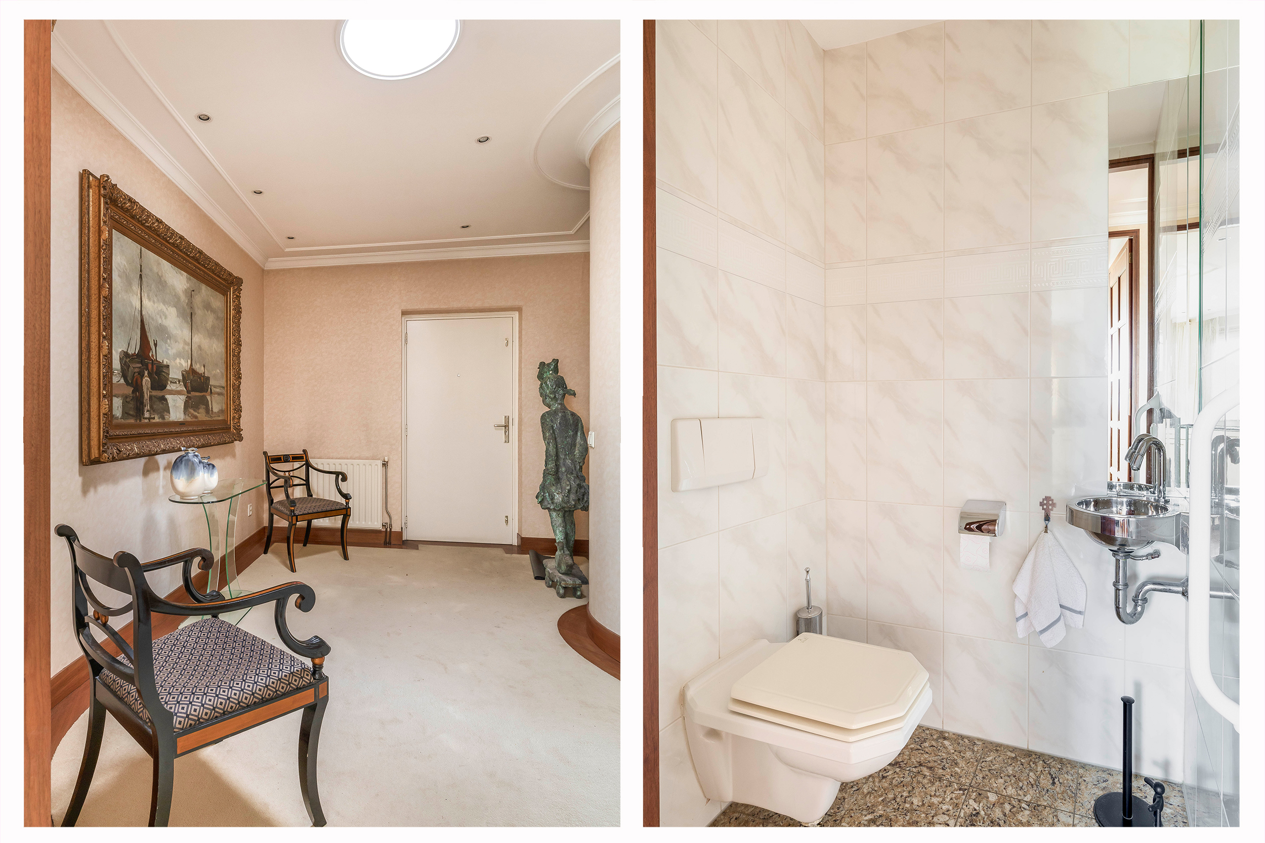 El diseño se define por líneas puras y elementos espaciales redondeados, con detalles cuidadosamente elaborados en toda la vivienda. La cocina en U está equipada con electrodomésticos integrados de alta gama y una despensa interna, combinando funcionalidad y refinamiento. La suite principal cuenta con un amplio vestidor y un lavadero independiente, y todas las áreas habitables se benefician de una avanzada insonorización, aire acondicionado y un sistema central de aspiración.