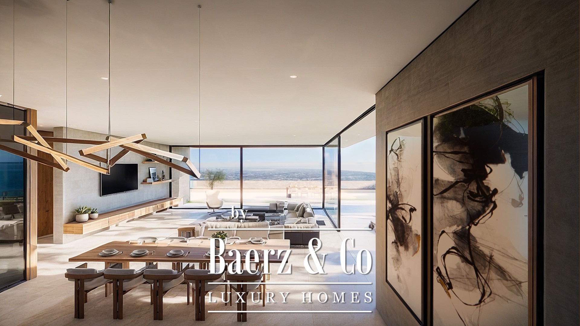 La luz protagoniza la planta principal, donde el salón-comedor se abre directamente al mar, acompañado de una cocina de diseño que se integra con el jardín paisajístico y la piscina infinity. La suite de invitados de esta planta ofrece privacidad y discreción, con vestidor y baño propio, además de un aseo de cortesía para mayor comodidad de las visitas.