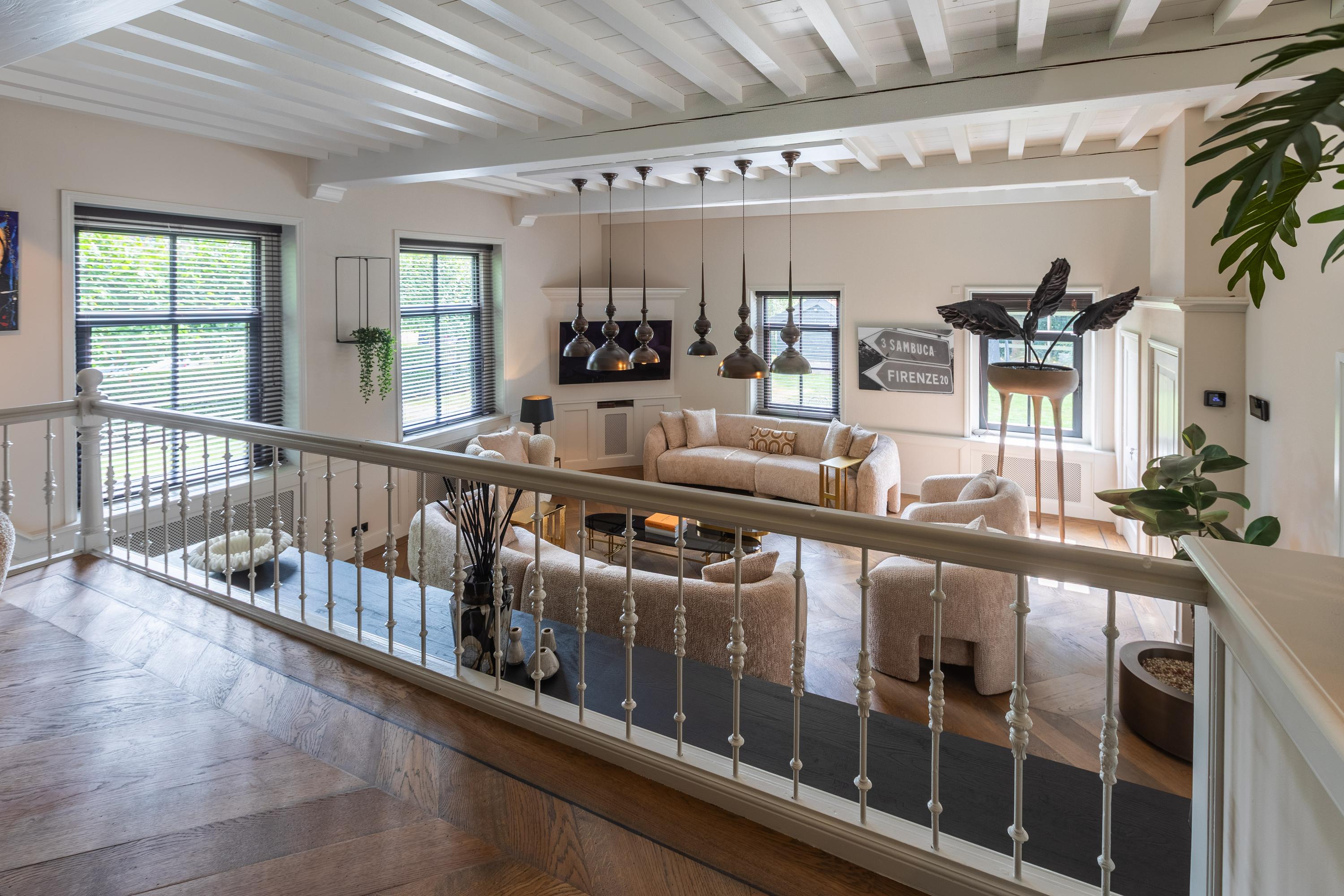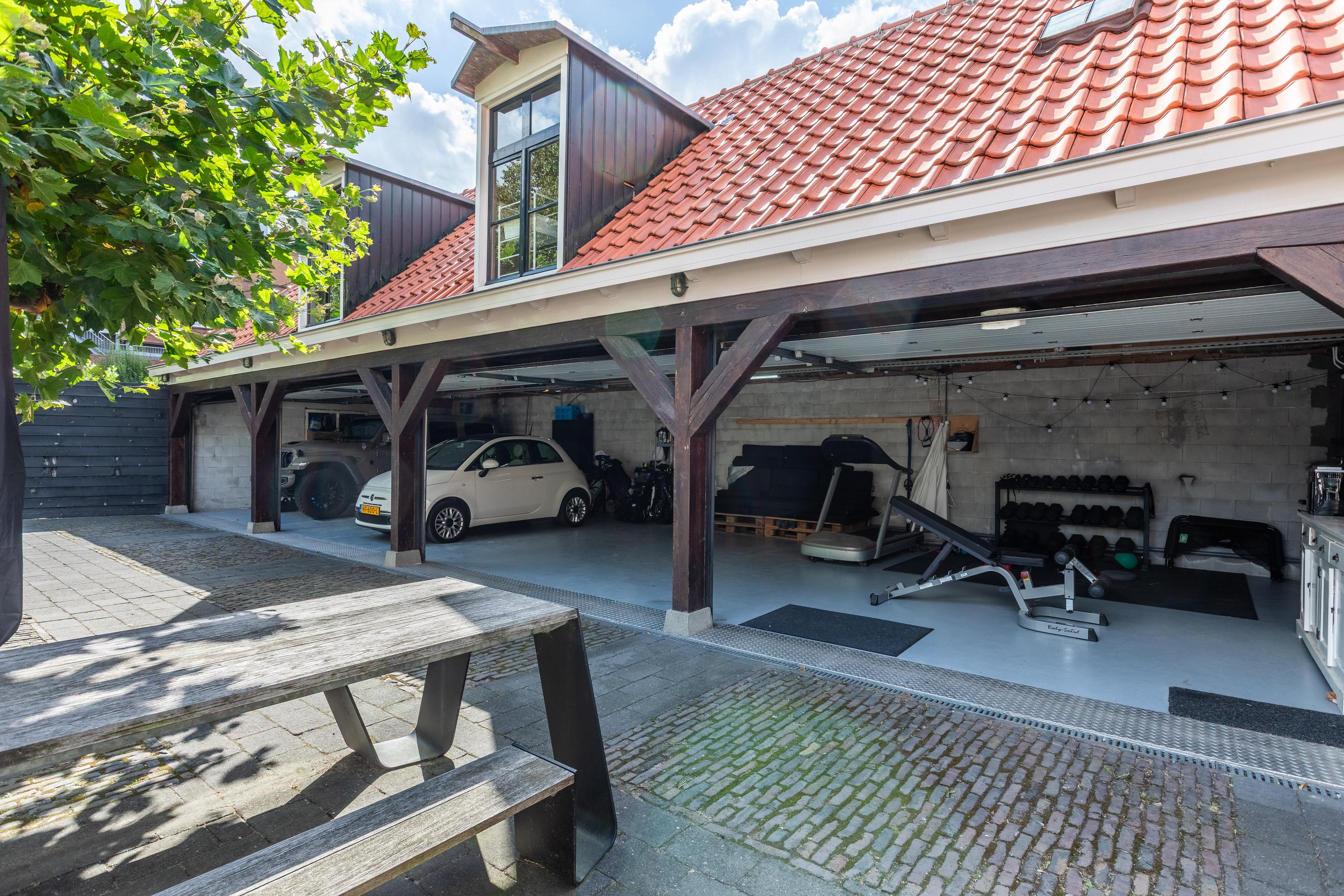 Al atravesar un portón eléctrico, el jardín revela céspedes en terrazas, borduras de plantas maduras y una zona de estar hundida, enmarcando vistas sobre los campos adyacentes de Midden-Delfland. La residencia principal ofrece amplios espacios, incluida una cocina sofisticada con isla de mármol y entresuelo, una serie de salones conectados con vigas auténticas y una sala de cine en la antigua quesería. La zona wellness invita al retiro con jacuzzi, saunas finlandesa e infrarroja, todo ello en una luminosa ampliación.