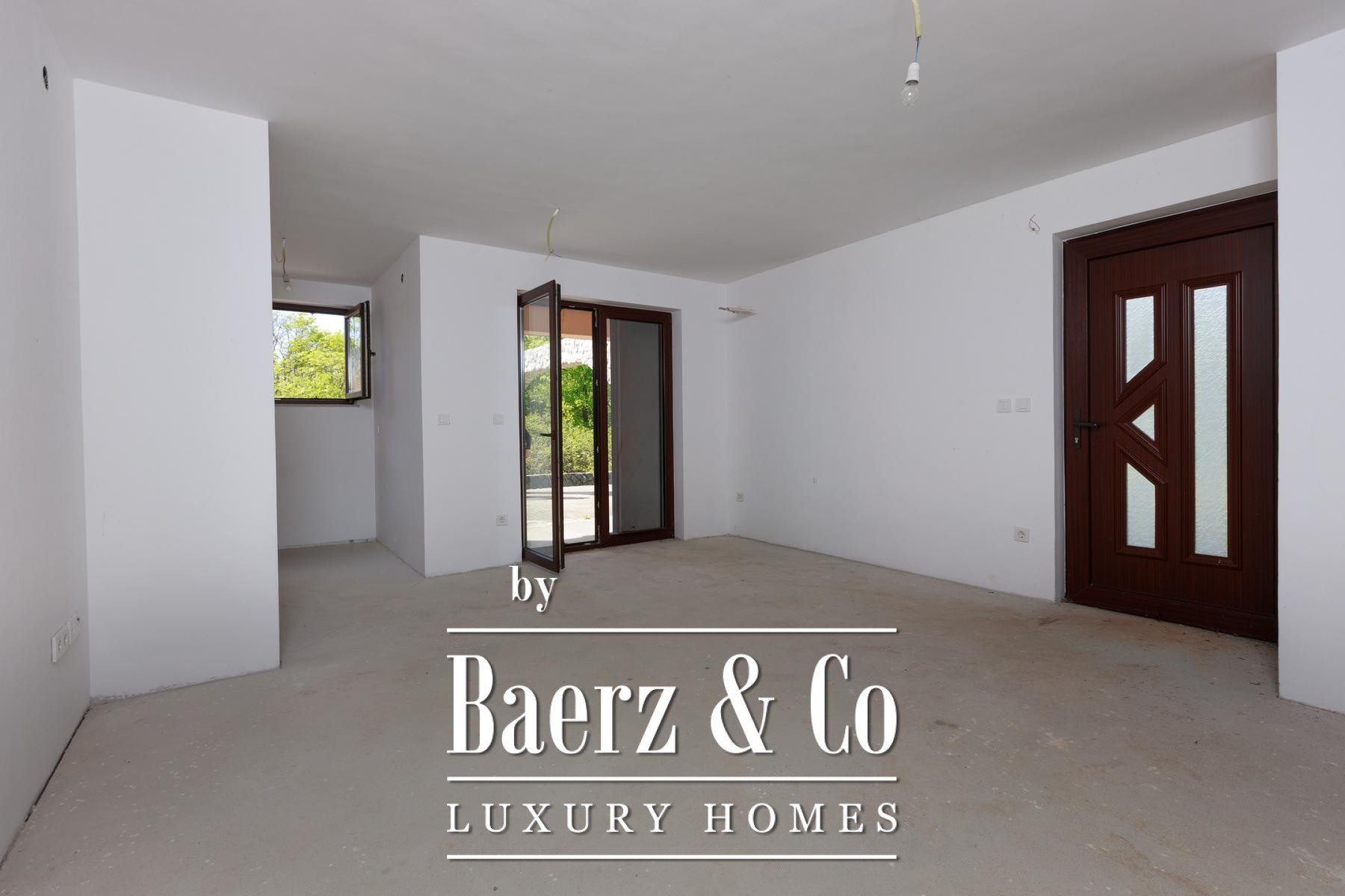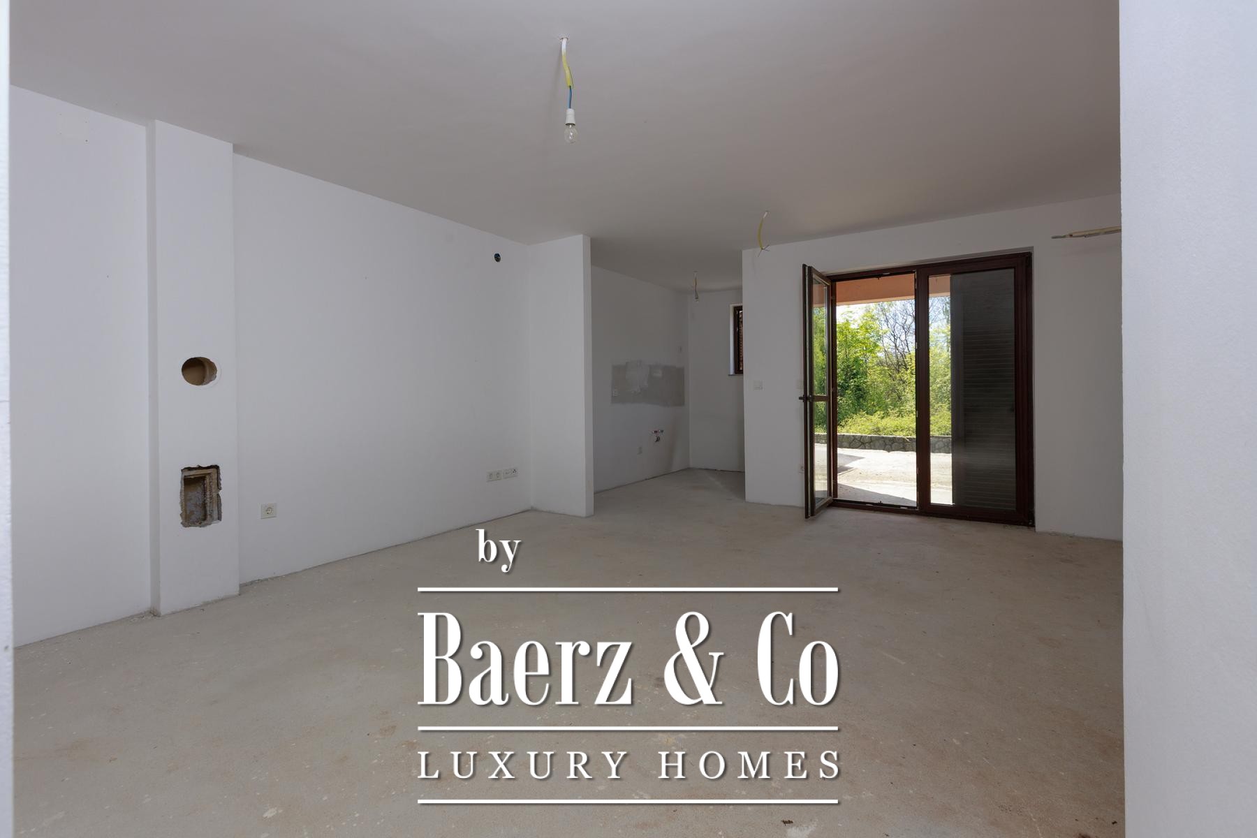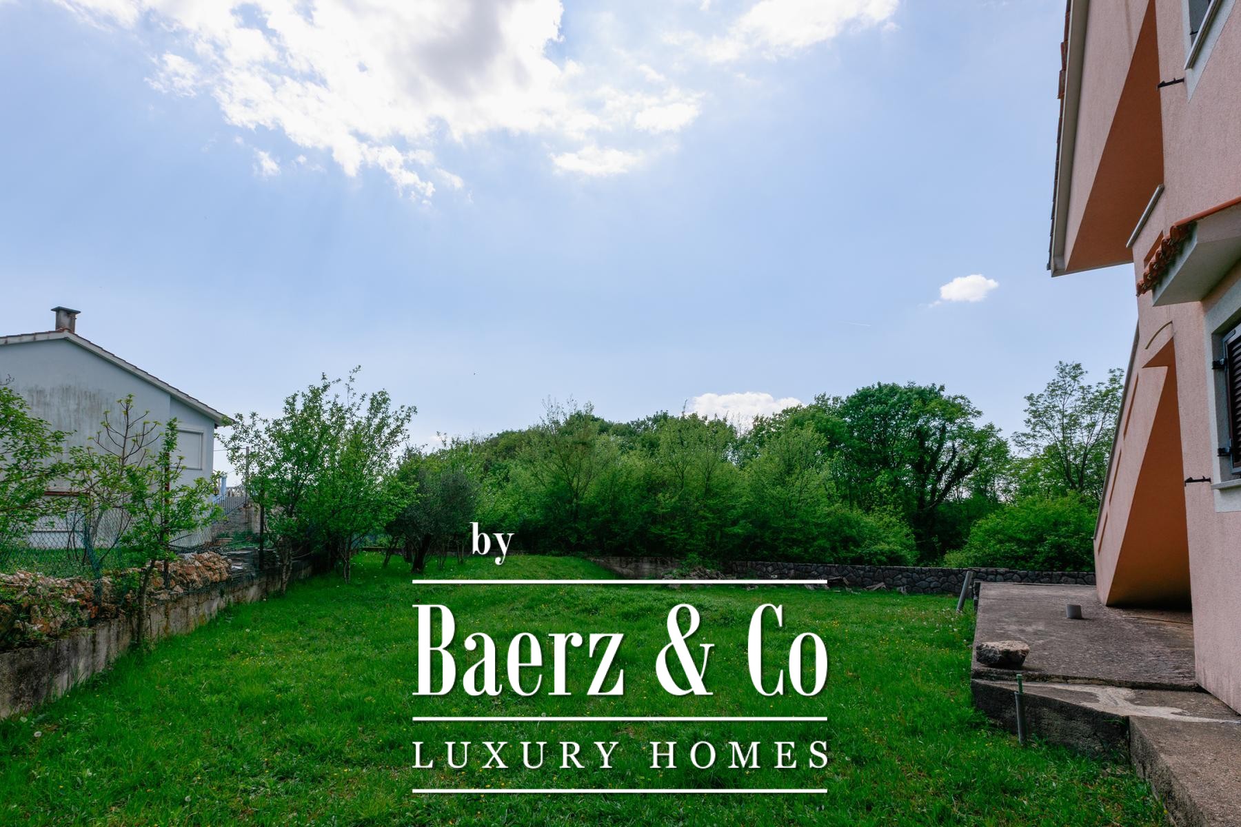 Cada mitad de la propiedad disfruta de su propio jardín, proporcionando espacio suficiente para piscinas individuales. Los apartamentos de la planta baja se abren a terrazas privadas, mientras que los de la primera planta disponen de balcones con vistas a la vegetación. Una zona de comedor se encuentra bajo sombra natural, perfecta para reuniones al aire libre. La tranquilidad de Kras, alejada del bullicio urbano pero a poca distancia en carretera del mar y los servicios, moldea un estilo de vida refinado y sereno.