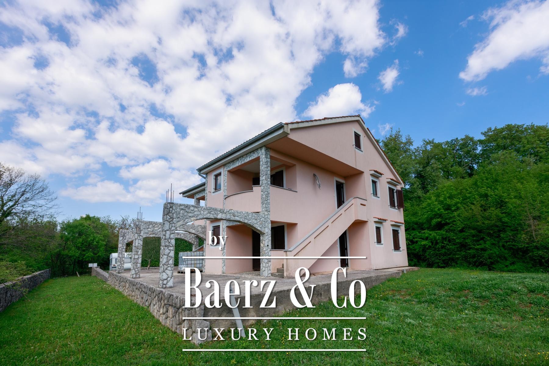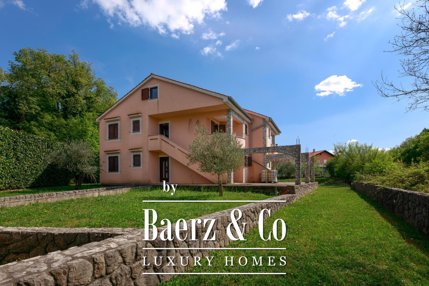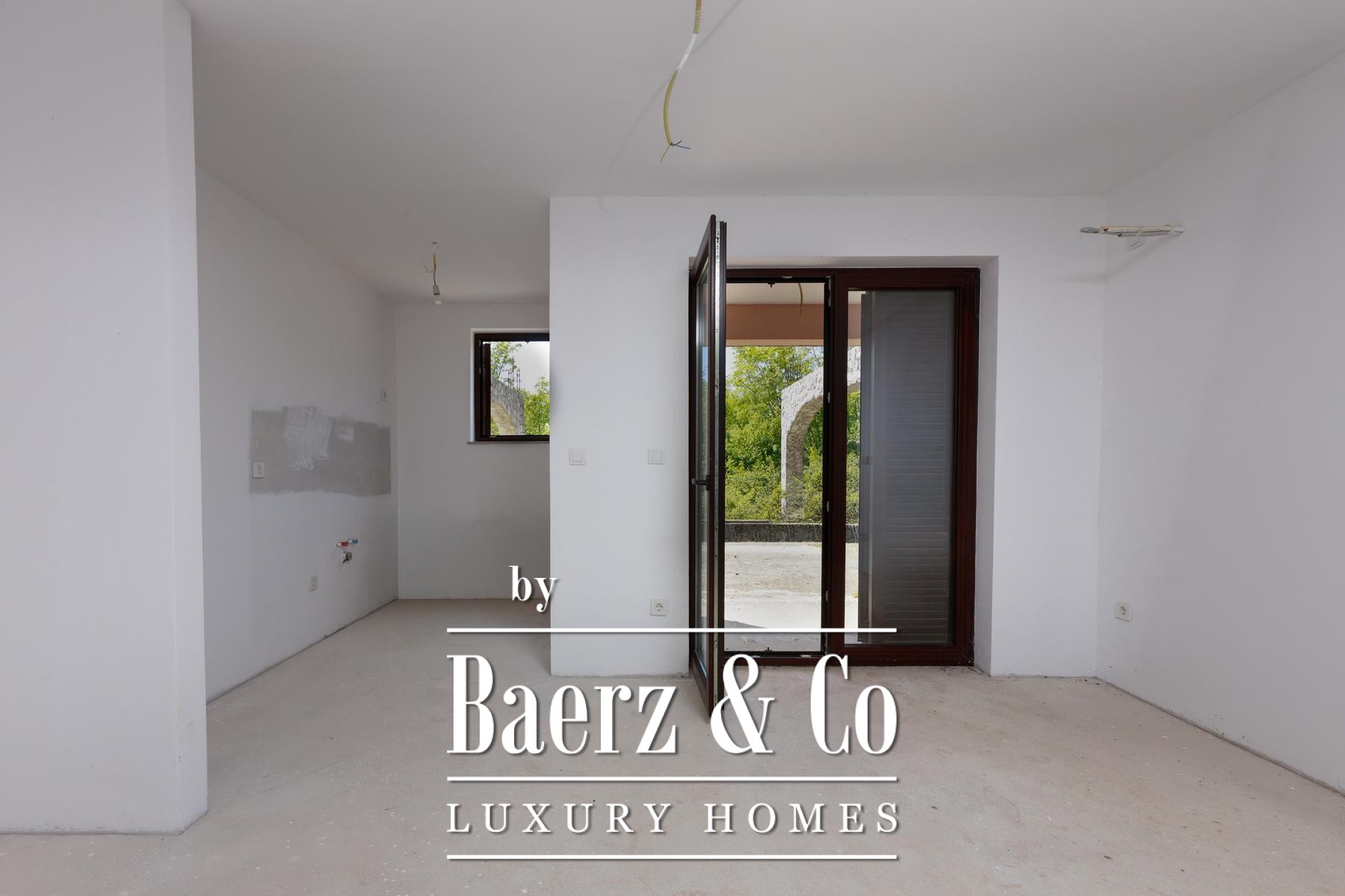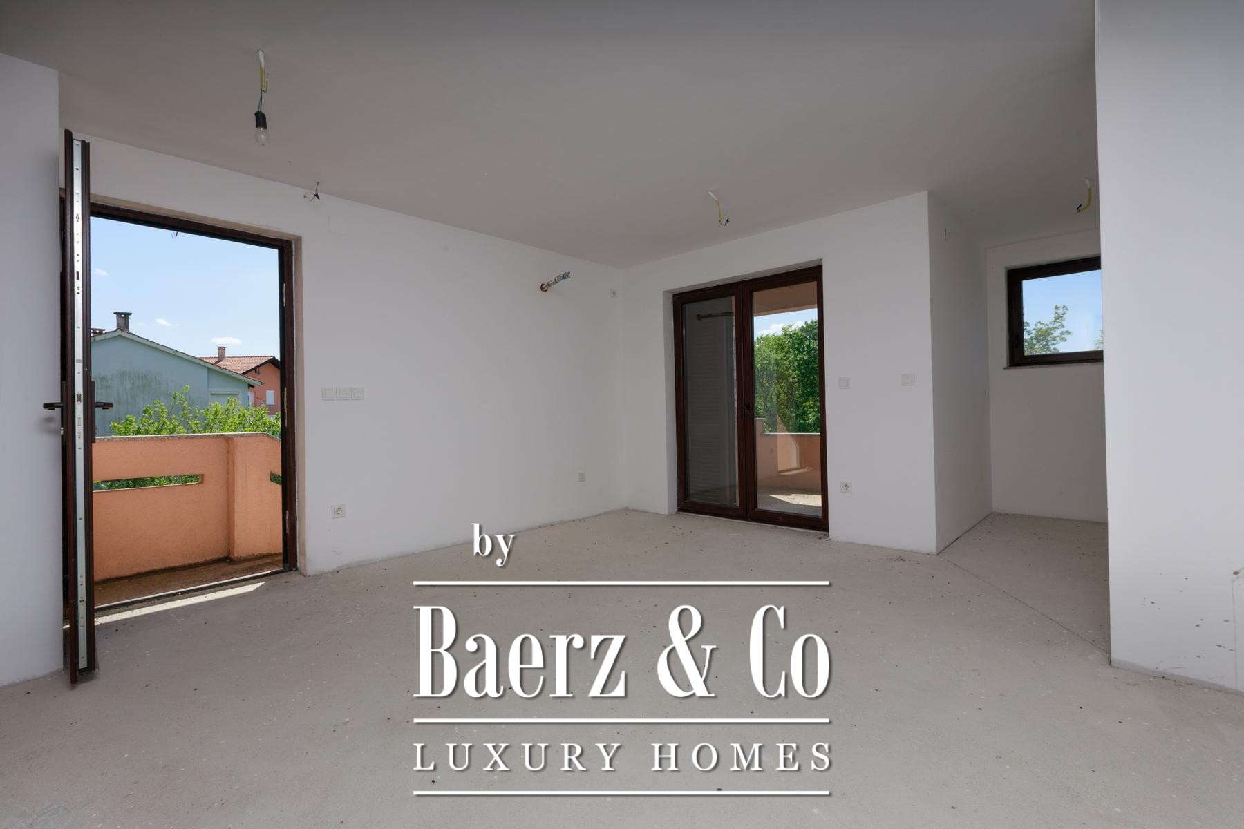 Cada mitad de la propiedad disfruta de su propio jardín, proporcionando espacio suficiente para piscinas individuales. Los apartamentos de la planta baja se abren a terrazas privadas, mientras que los de la primera planta disponen de balcones con vistas a la vegetación. Una zona de comedor se encuentra bajo sombra natural, perfecta para reuniones al aire libre. La tranquilidad de Kras, alejada del bullicio urbano pero a poca distancia en carretera del mar y los servicios, moldea un estilo de vida refinado y sereno.