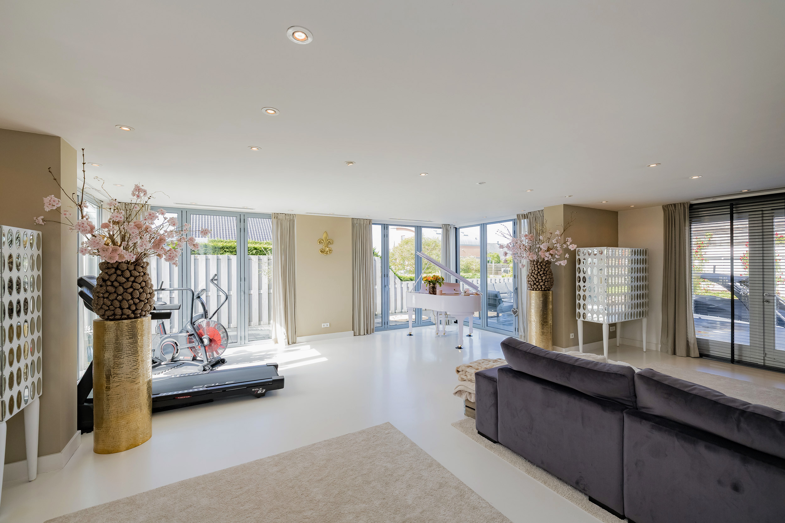 En la planta baja, la residencia dispone de una piscina interior climatizada, instalaciones de wellness y salas para el relax o los pasatiempos. En el exterior, la terraza con tarima resguarda varios espacios de descanso y un embarcadero con acceso inmediato a Kagerplassen. El jardín paisajístico ofrece un entorno privado, jacuzzi y estacionamiento en la propiedad.