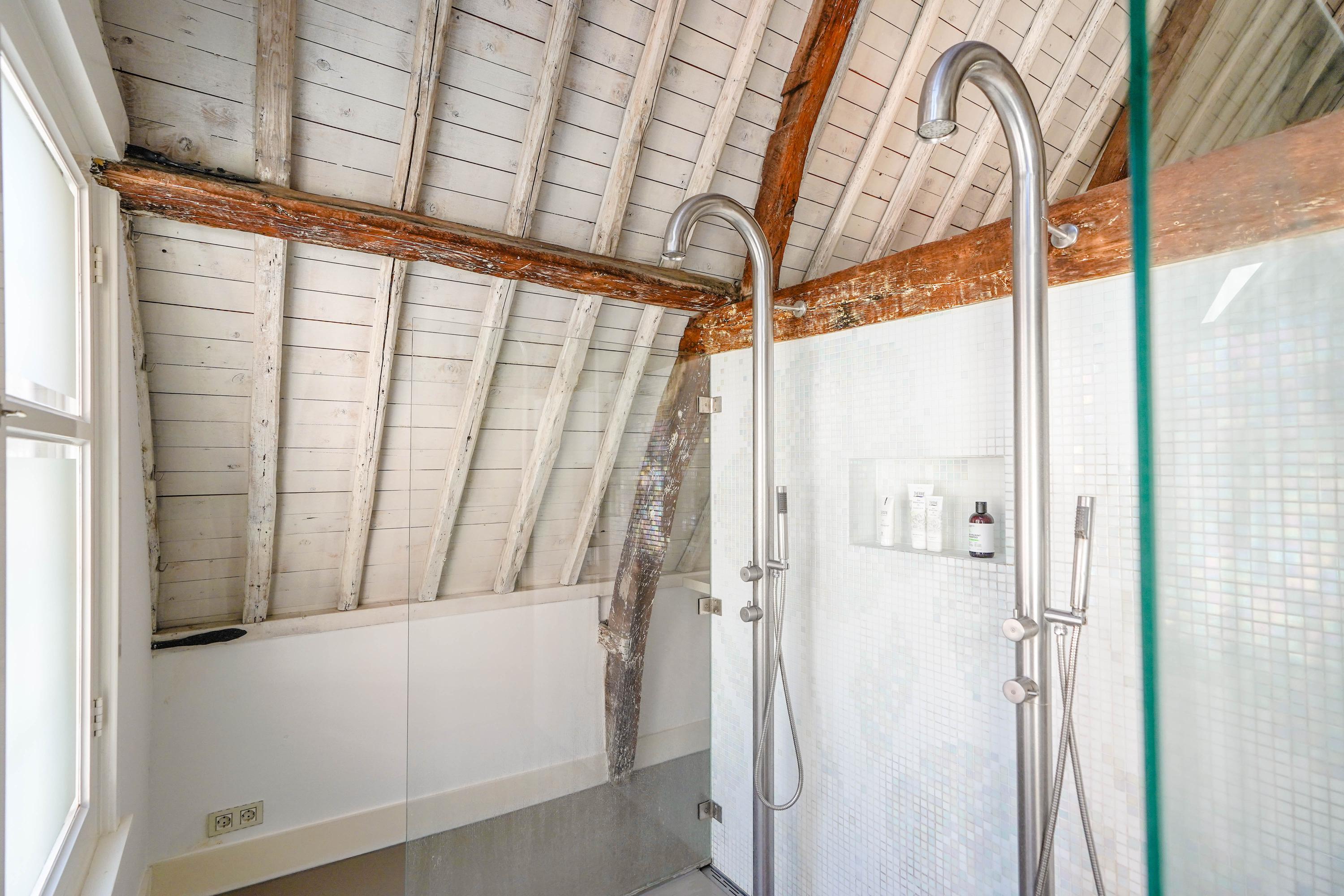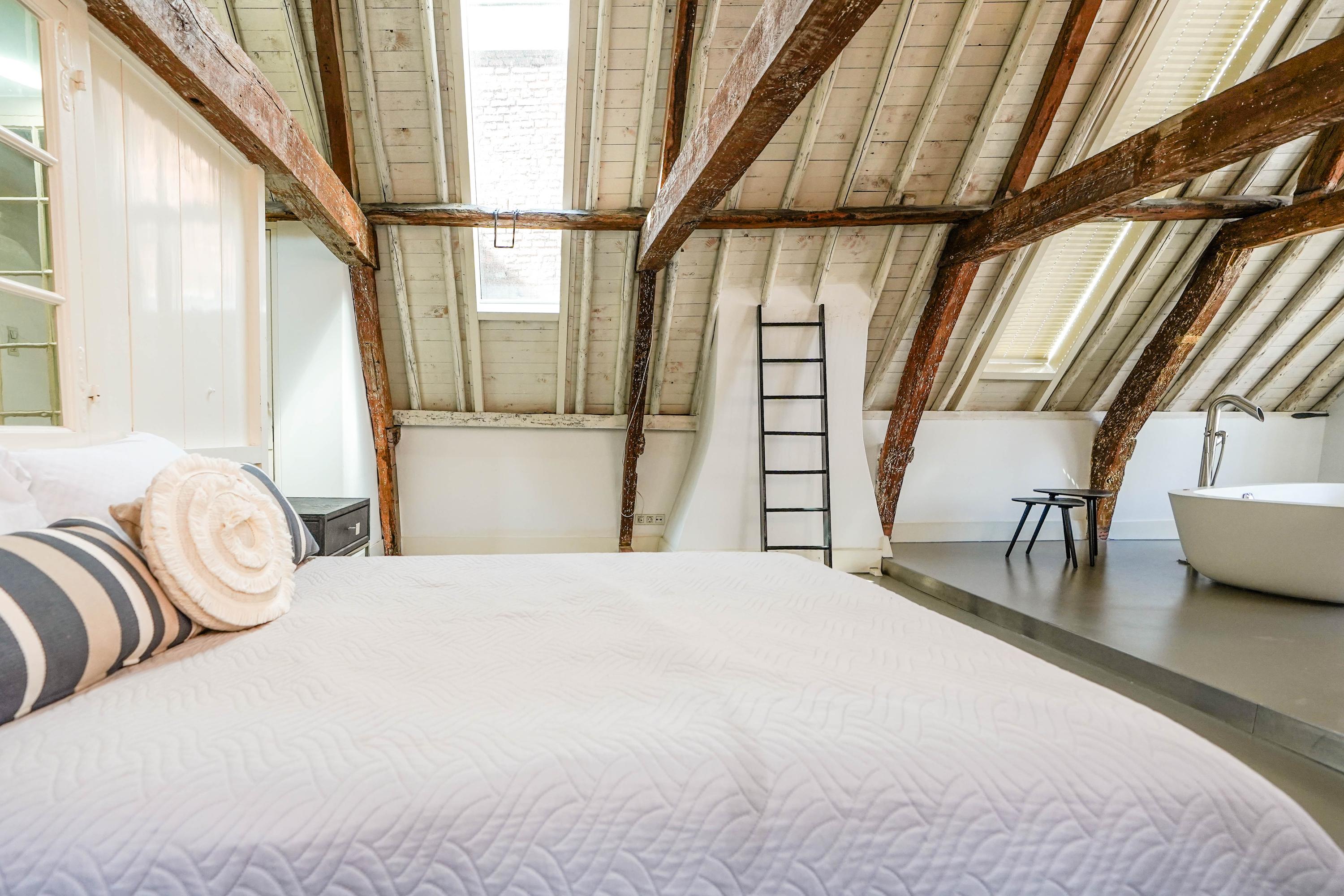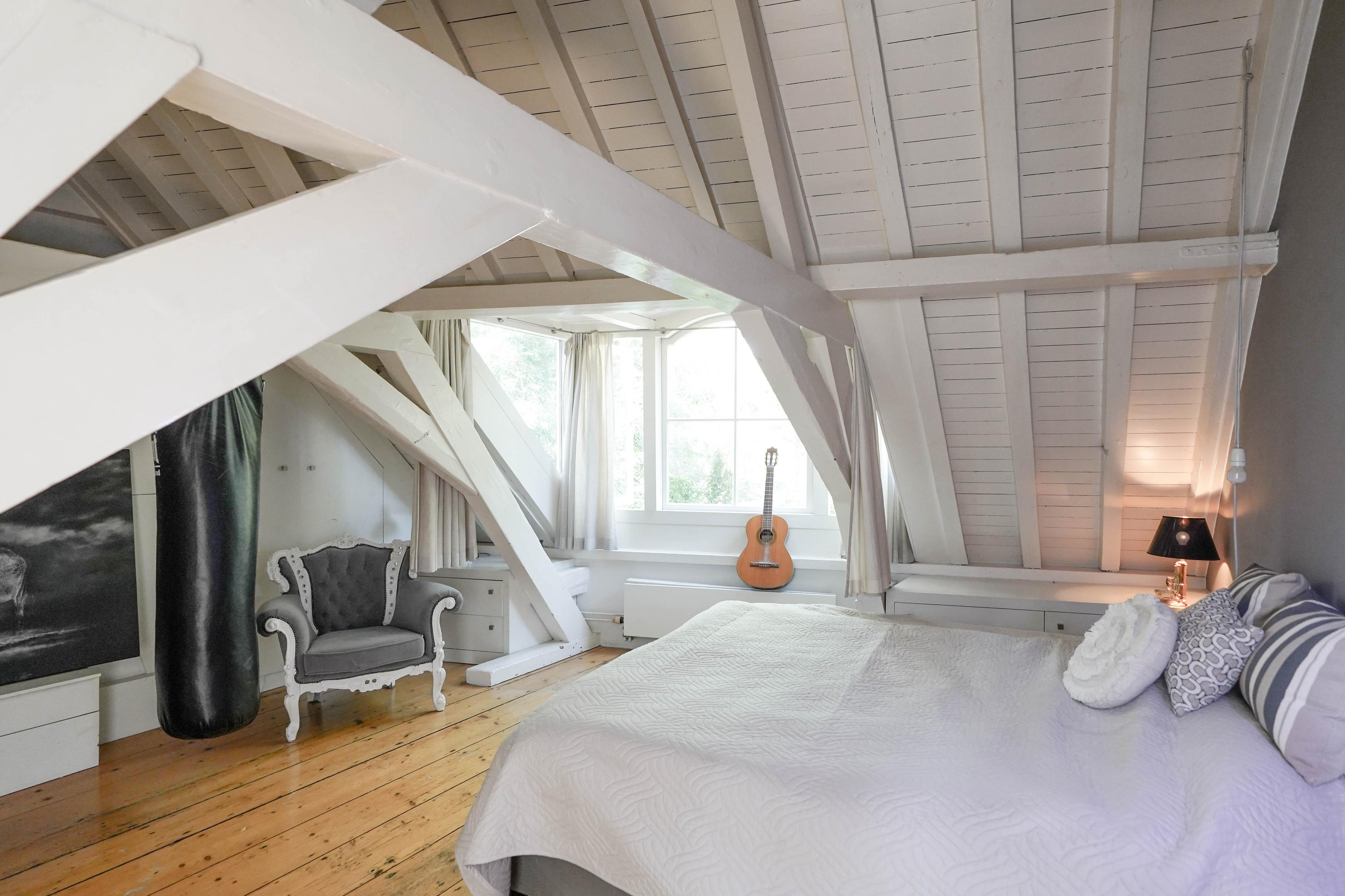 La primera planta acoge un salón de 70 m² con vistas al Rin y a la plaza Stadhuisplein, y una magnífica cocina-comedor de 50 m² con amplias encimeras y una mesa para doce personas, perfecta para reuniones y comodidad diaria. Los dormitorios se distribuyen en las plantas superiores, con siete habitaciones y tres baños; todos cuentan con grandes ventanales, armarios empotrados y espacio para ropa blanca, incluyendo una suite principal con baño privado bajo techos abuhardillados de gran presencia.
