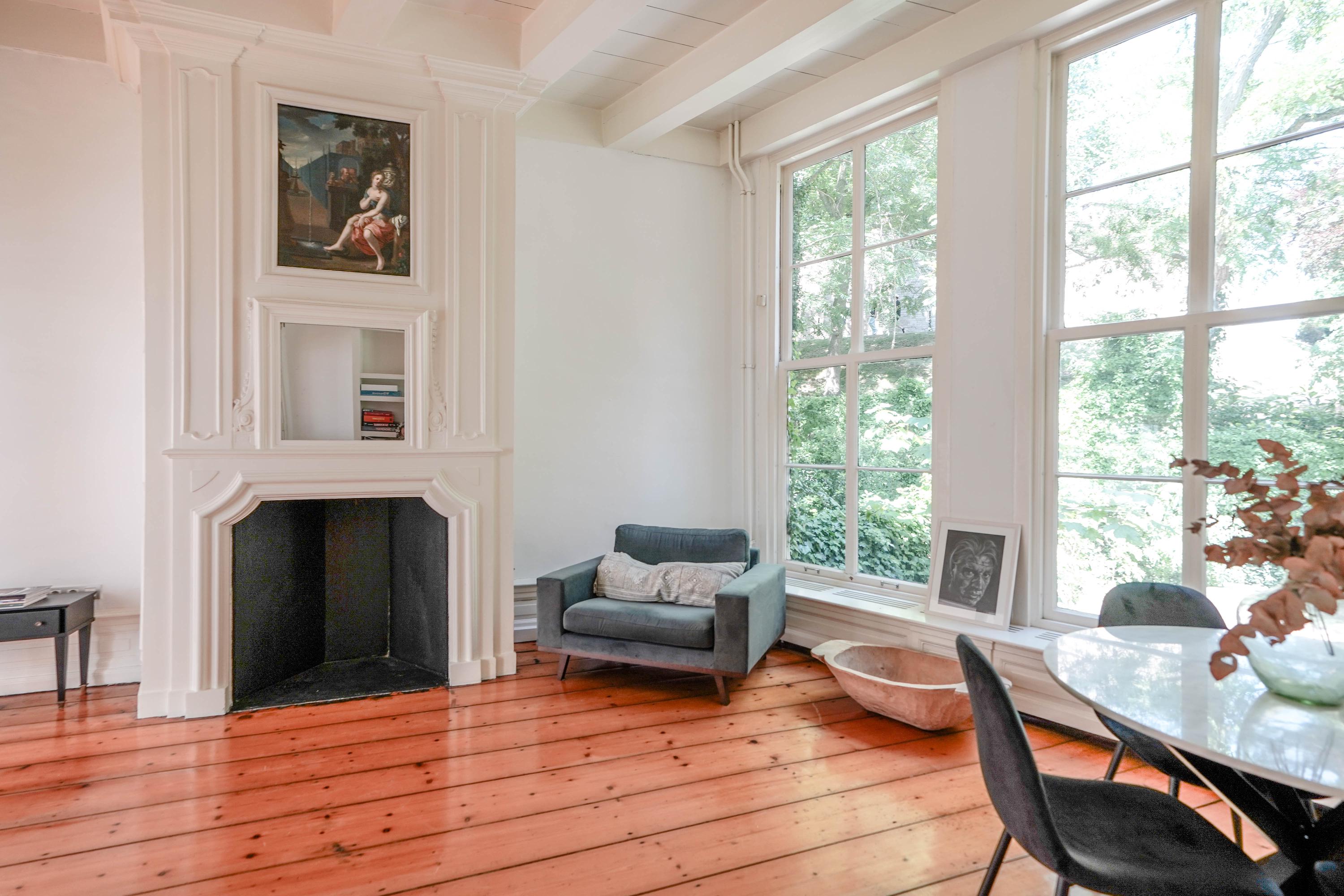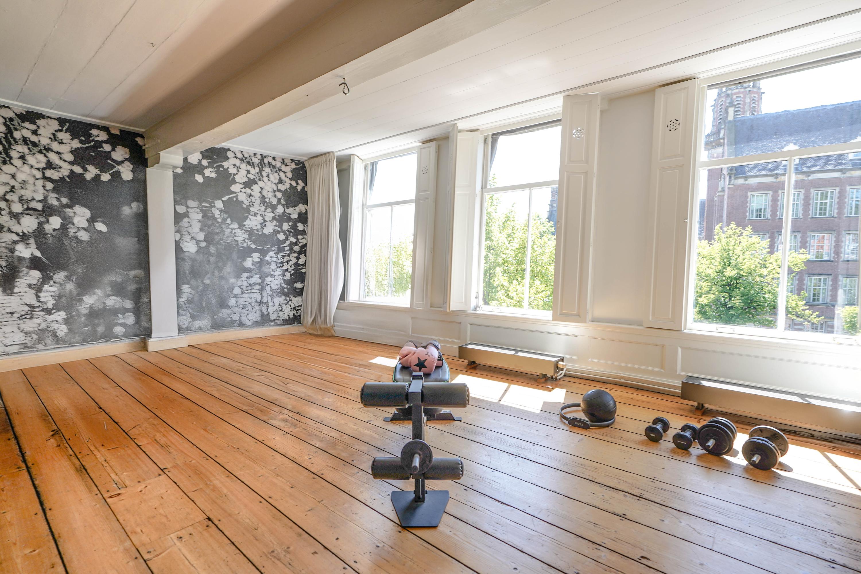 Esta casa histórica en Leiden ofrece una combinación excepcional de arquitectura del siglo XVII y confort contemporáneo, ubicada junto el agua del Rin al pie de la colina del castillo. Detrás de su discreta fachada, la propiedad revela 437 m² de superficie habitable repartidos entre la casa principal original y un edificio trasero restaurado. Amplias y altas estancias, algunas con una imponente cumbrera de ocho metros, se definen por vigas de roble expuestas, chimeneas de piedra natural y fastuosas molduras de estuco, reminiscencias de su próspero origen.